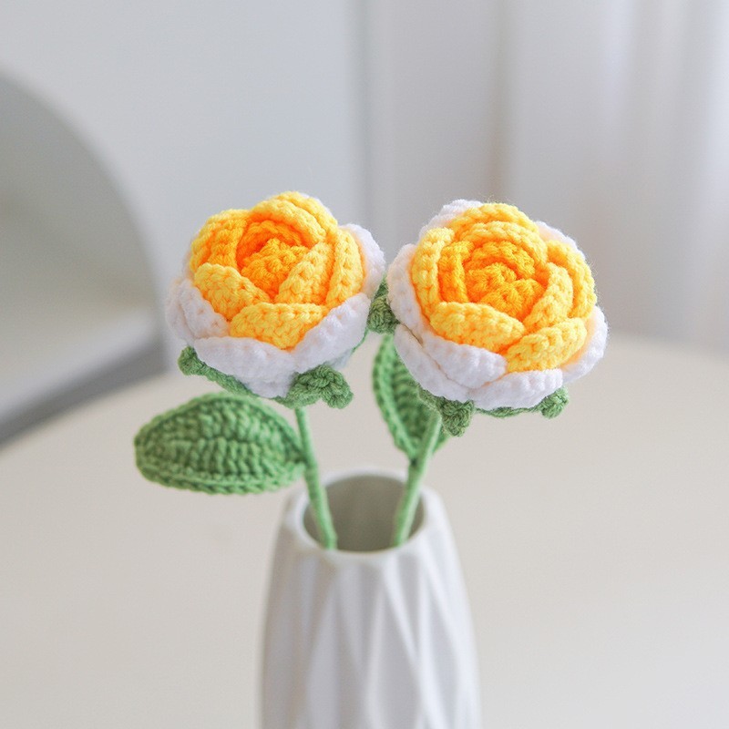 跨境手工编织成品小花束仿真花毛线针织花束假花编织节日仿真花