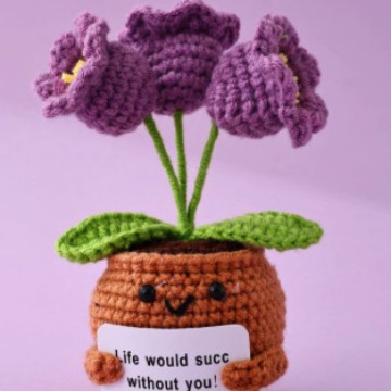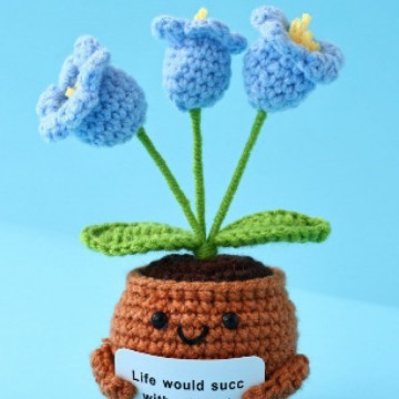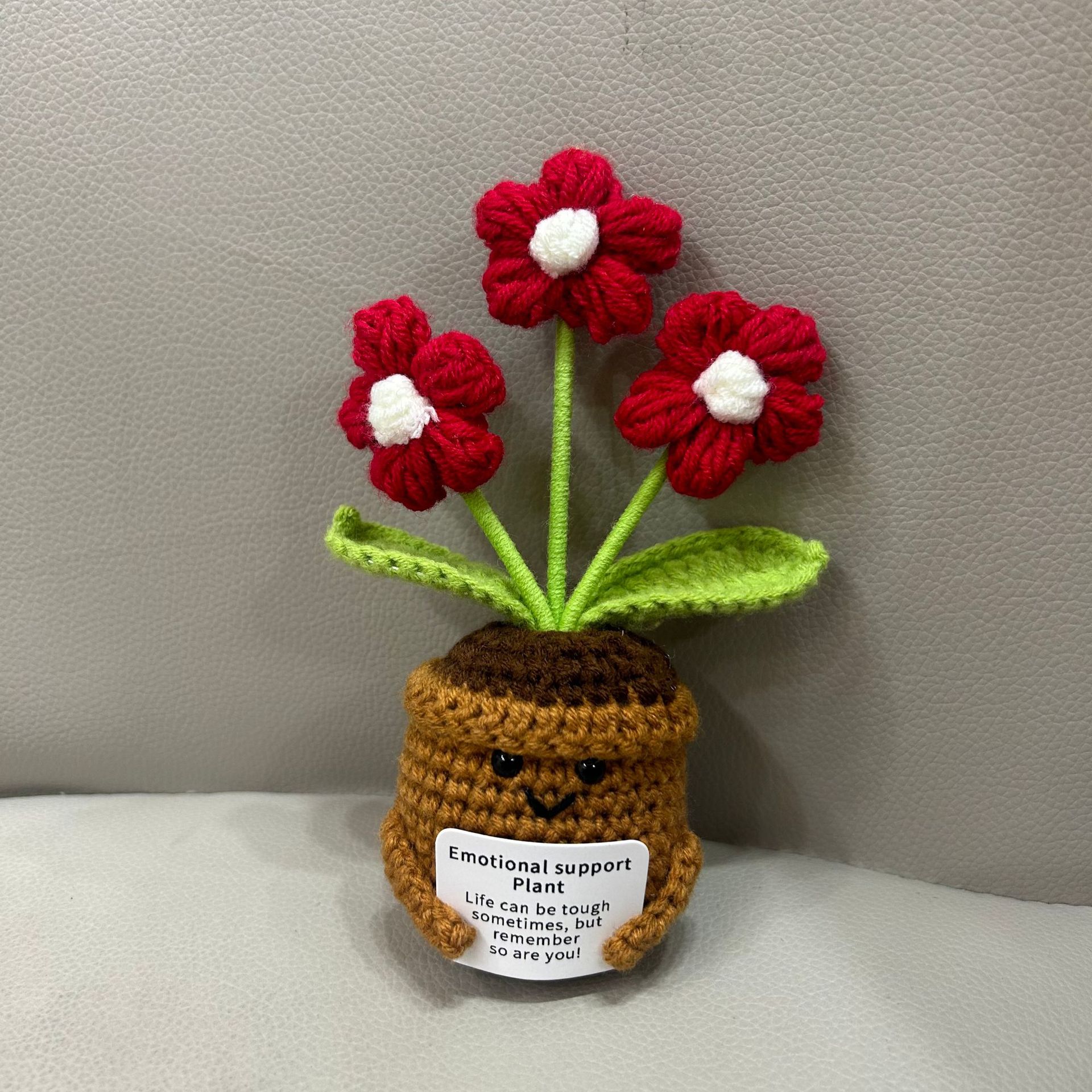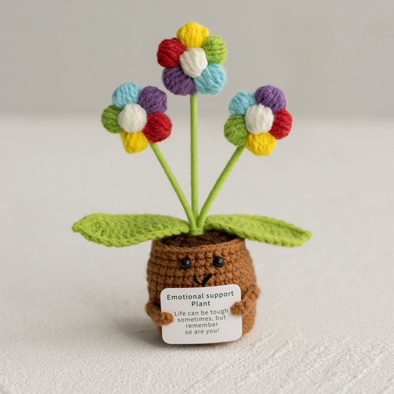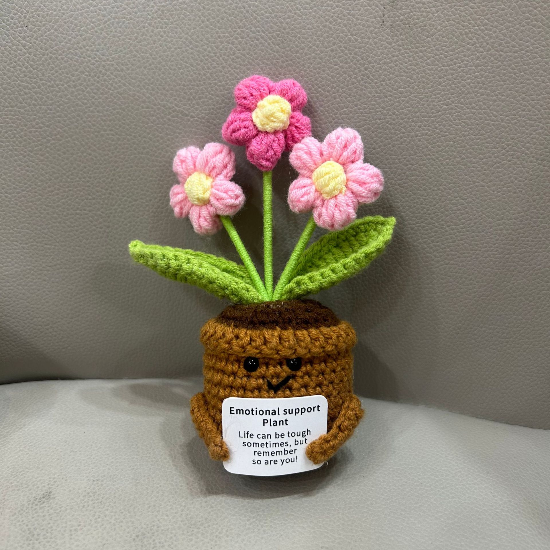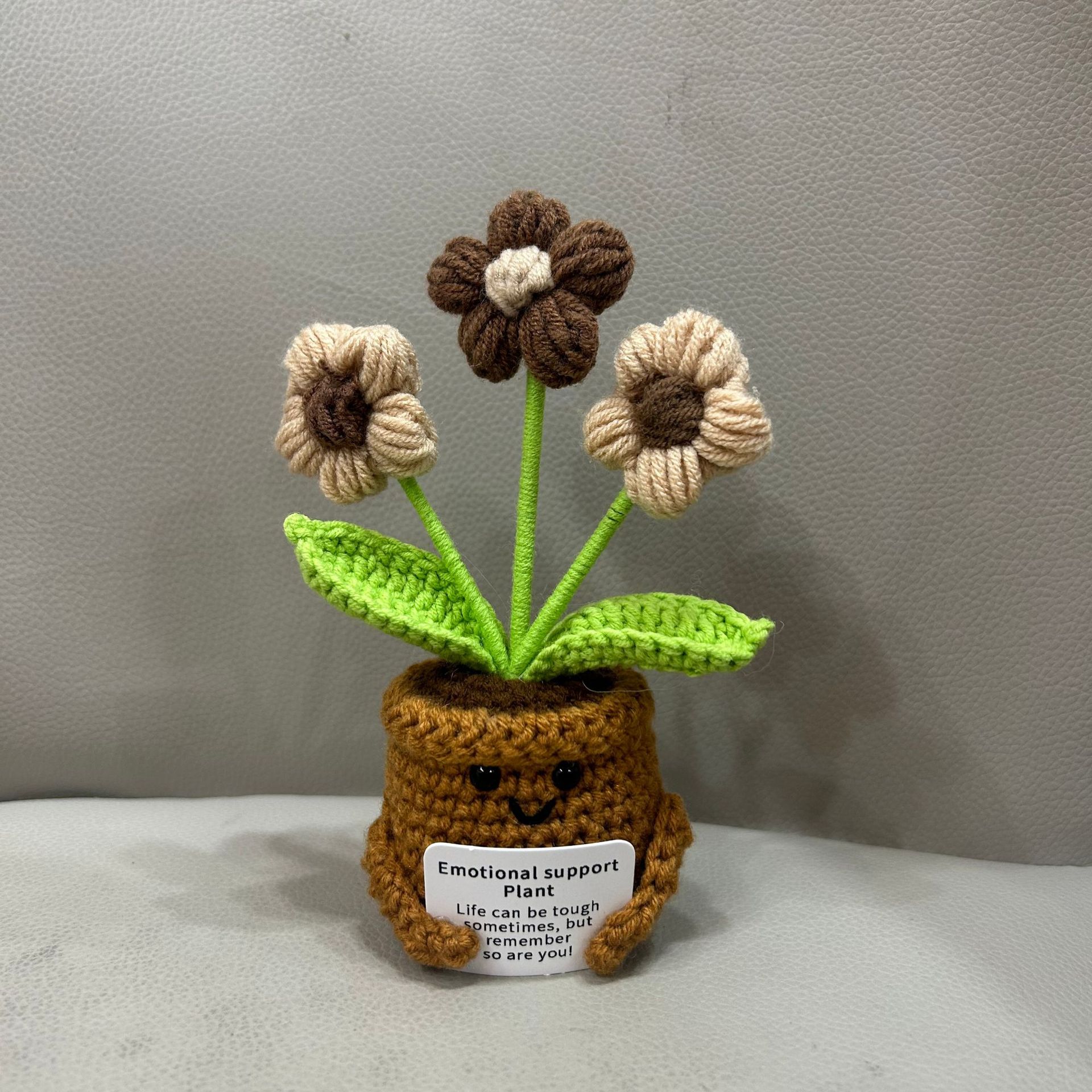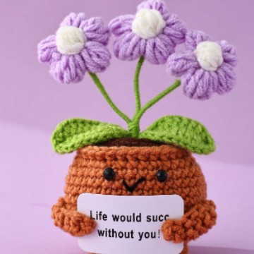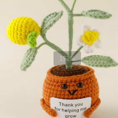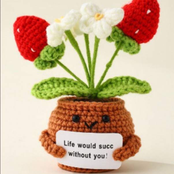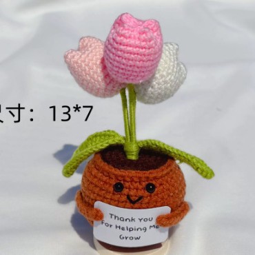 跨境新款毛线自制钩织植物盆栽创意针织盆栽迷你可爱积极鼓励盆栽