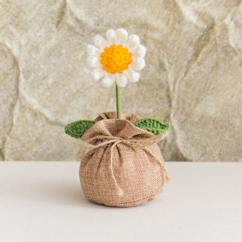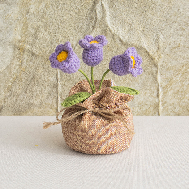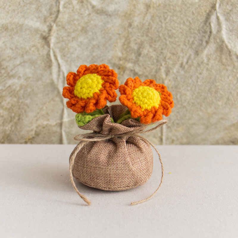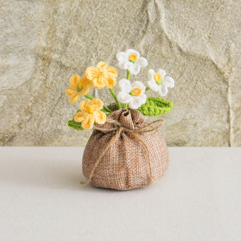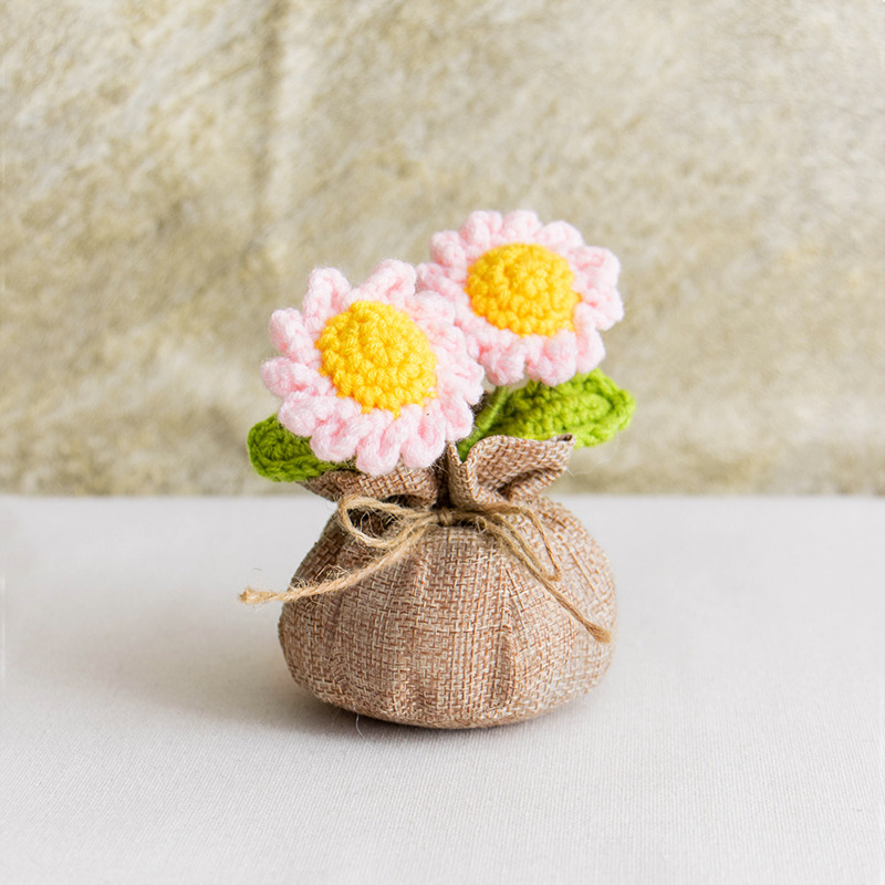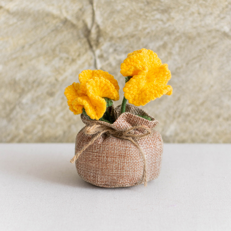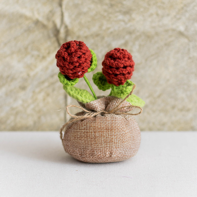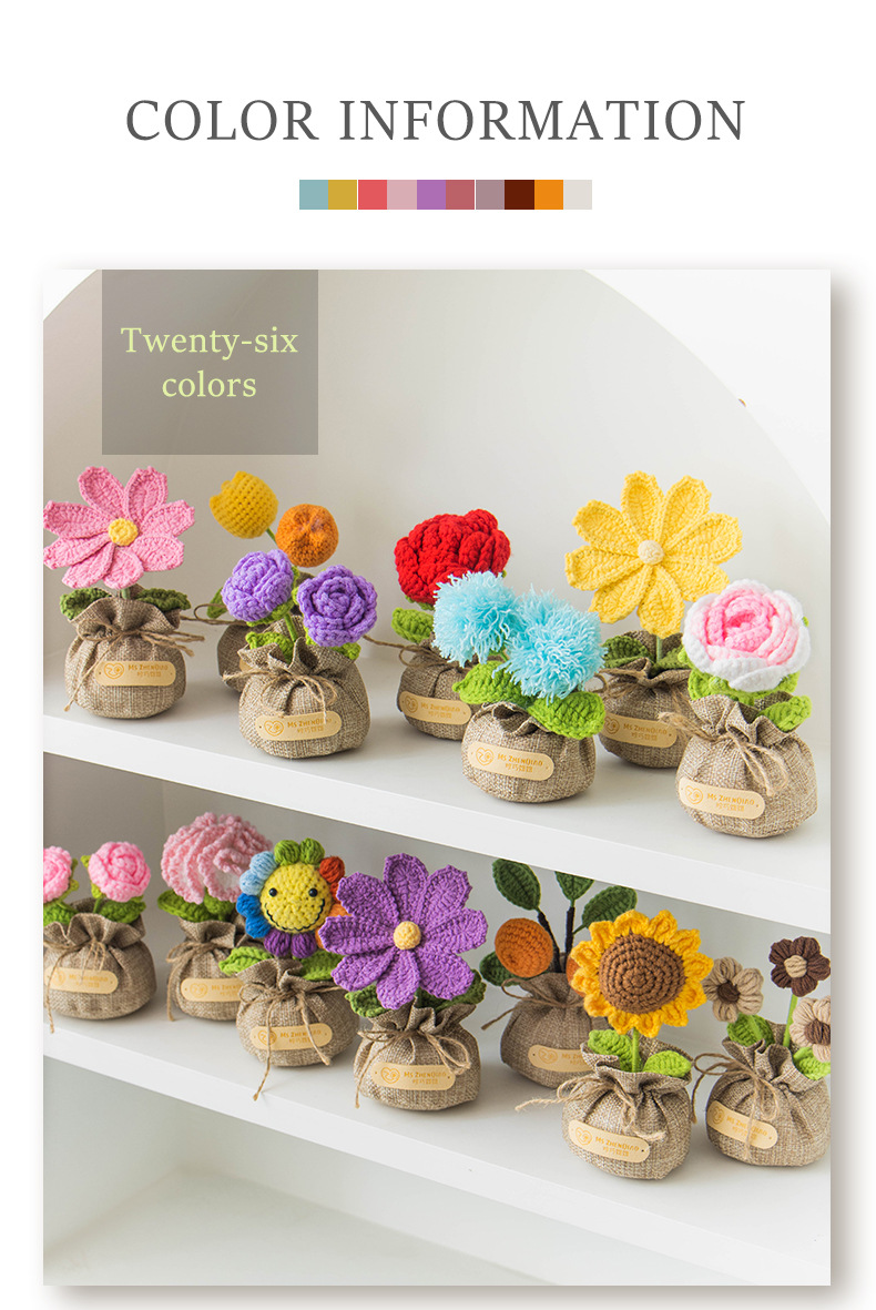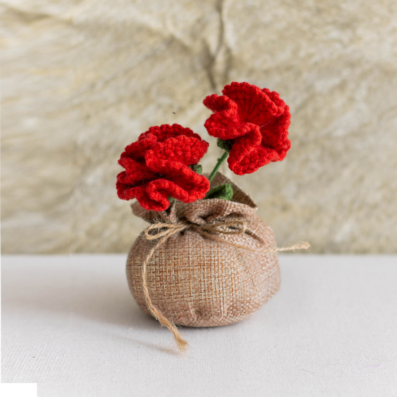 跨境手工钩织福袋小盆栽家居摆件毛线编织成品玫瑰装饰仿真花盆栽