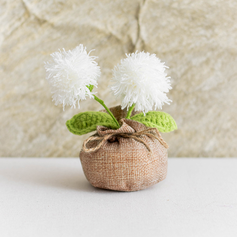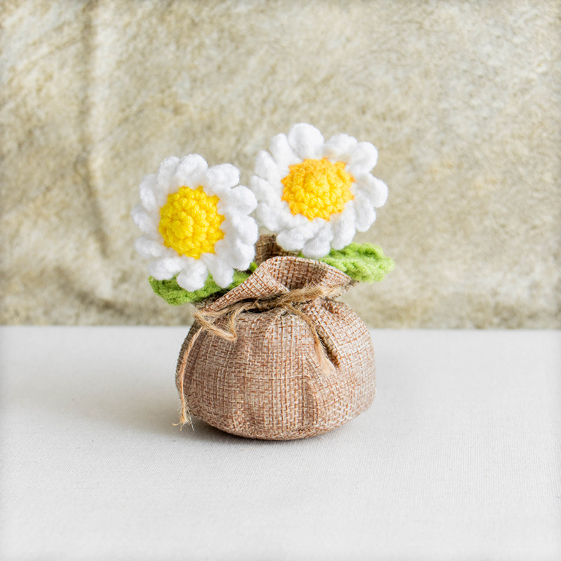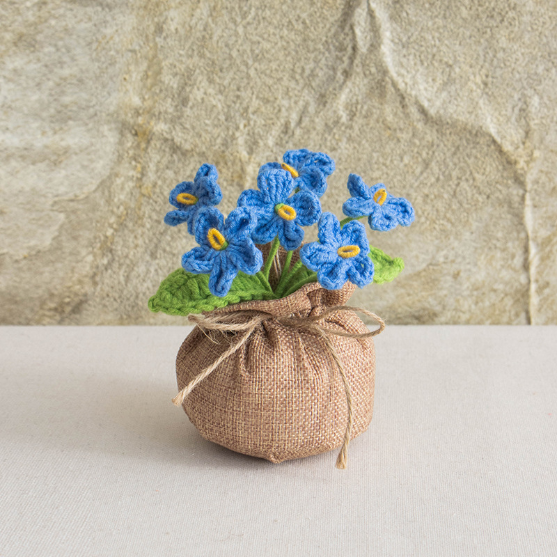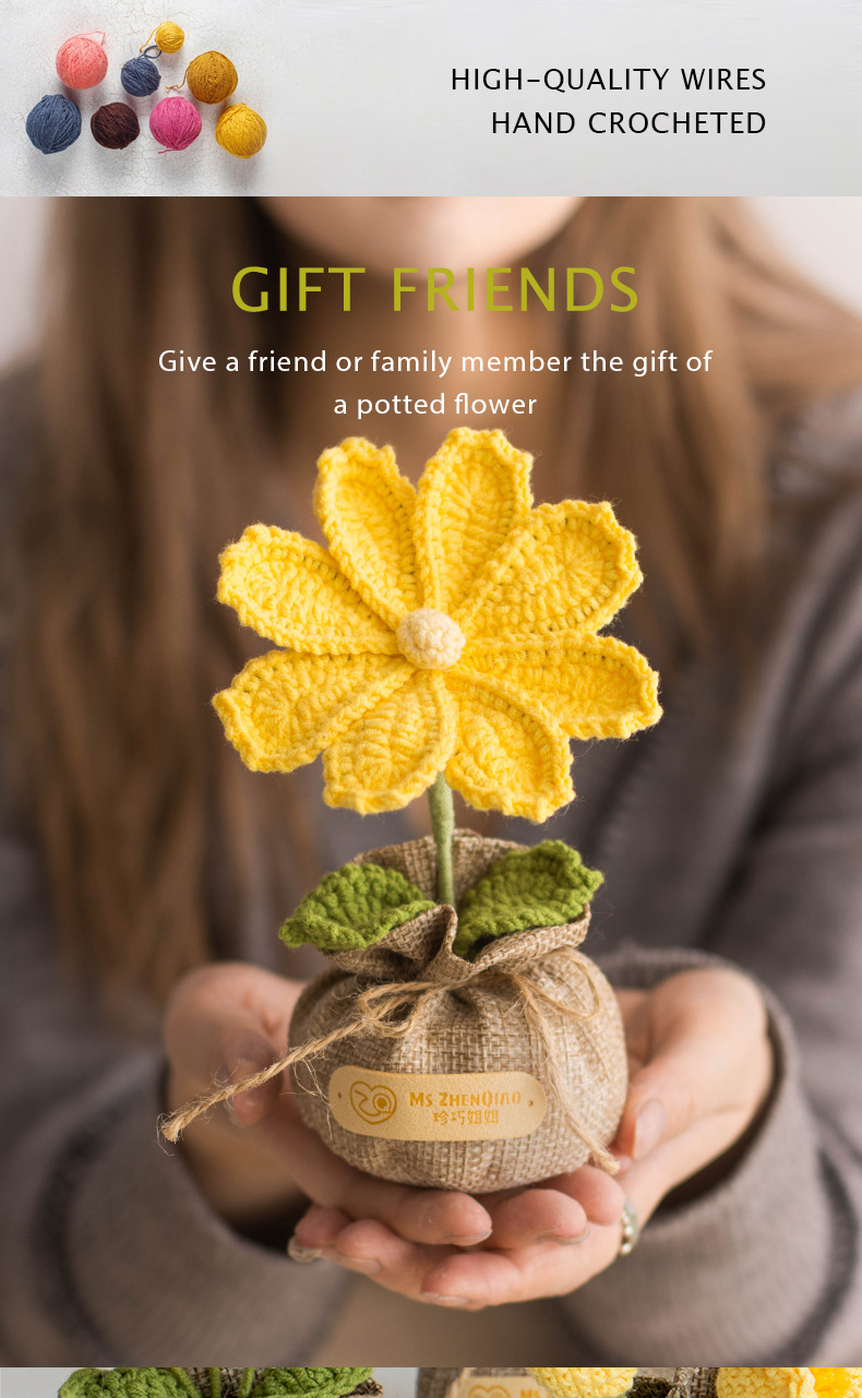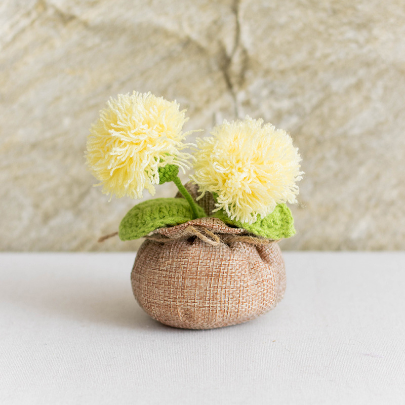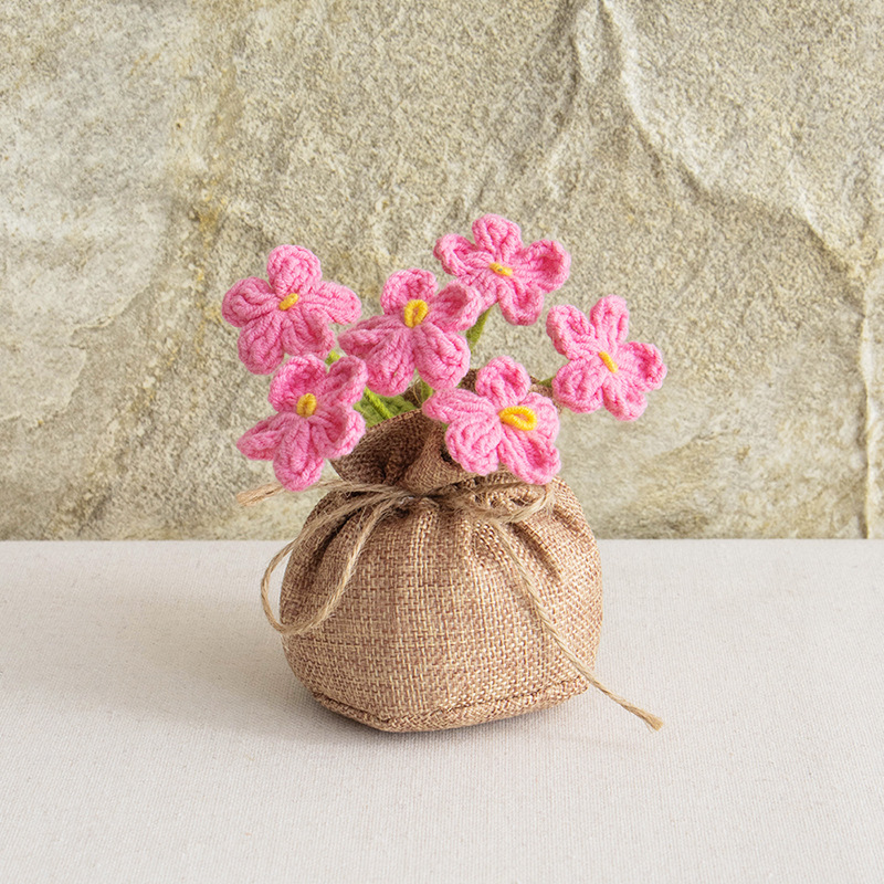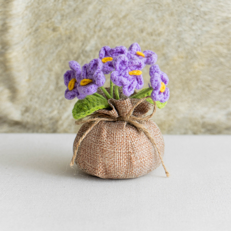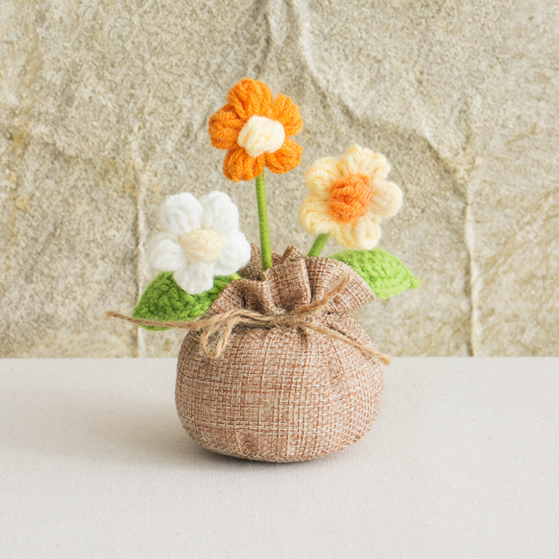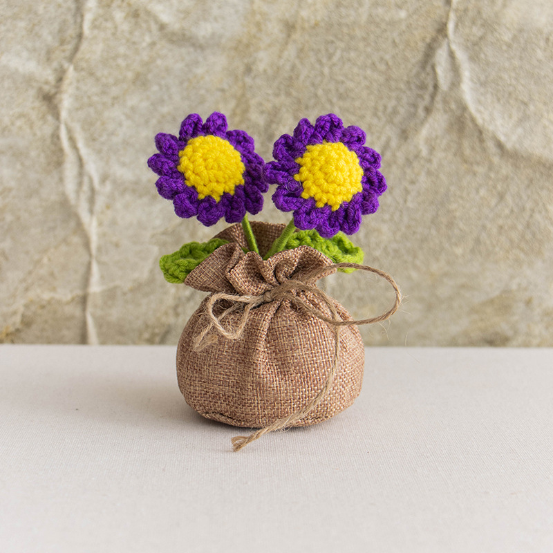 跨境手工钩织福袋小盆栽家居摆件毛线编织成品玫瑰装饰仿真花盆栽