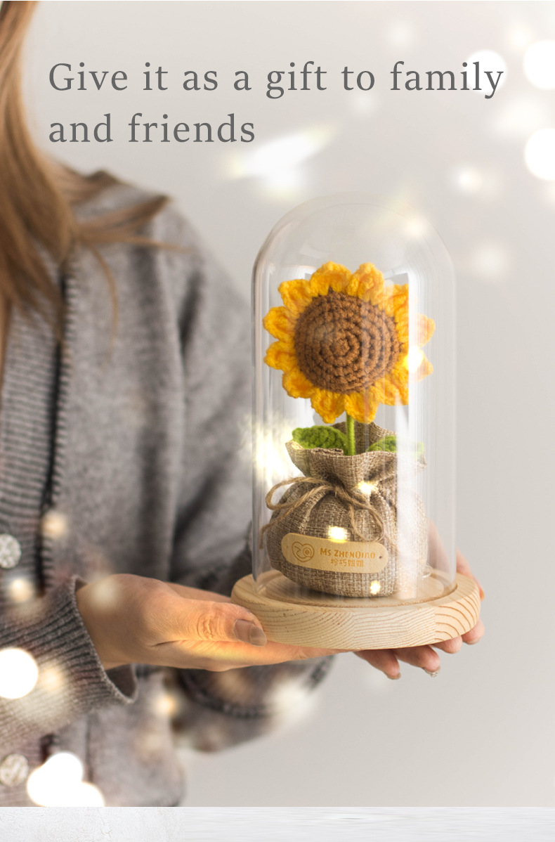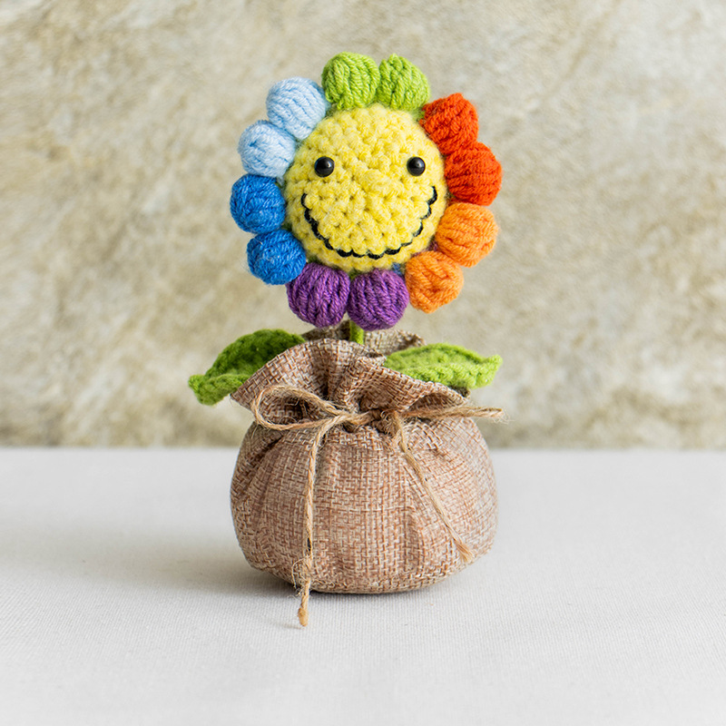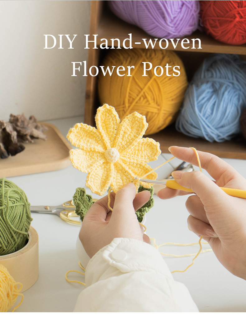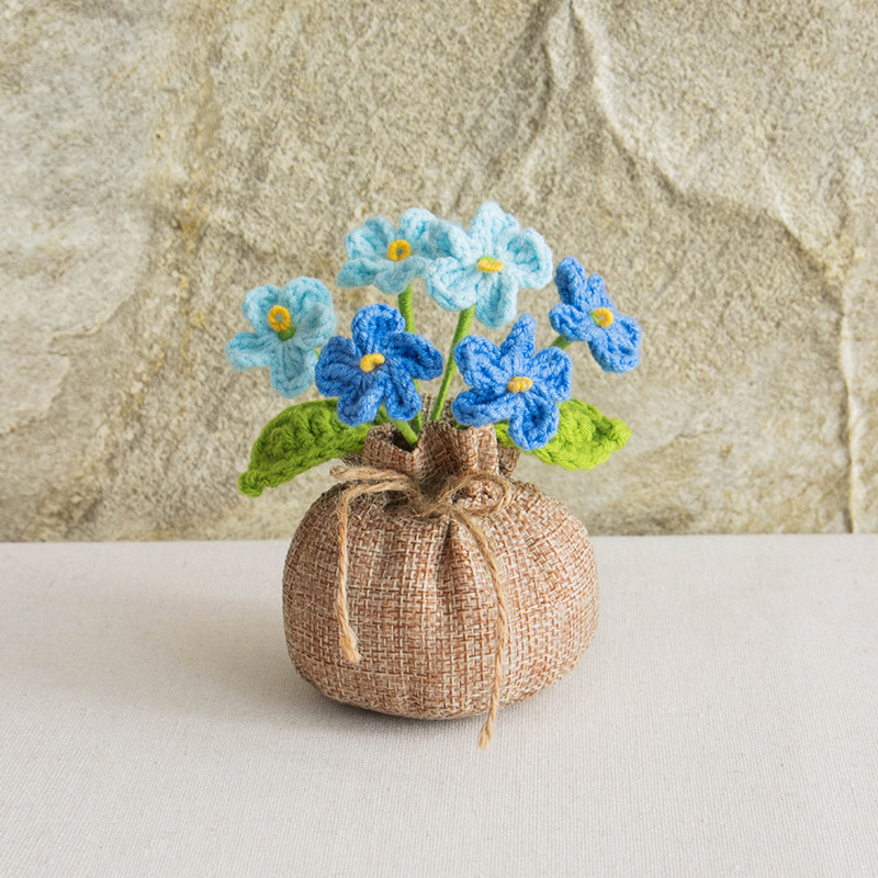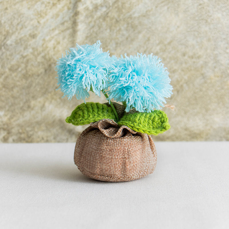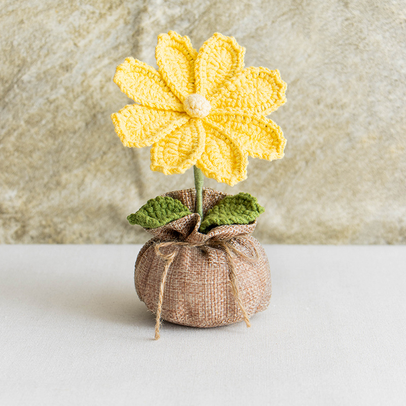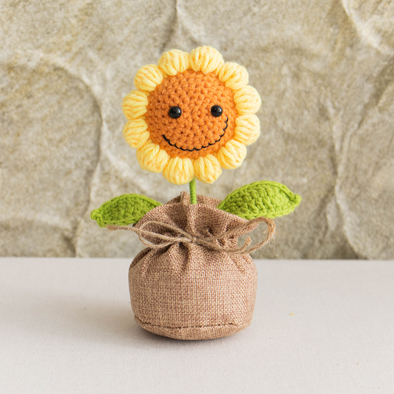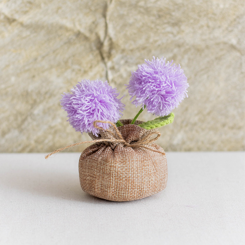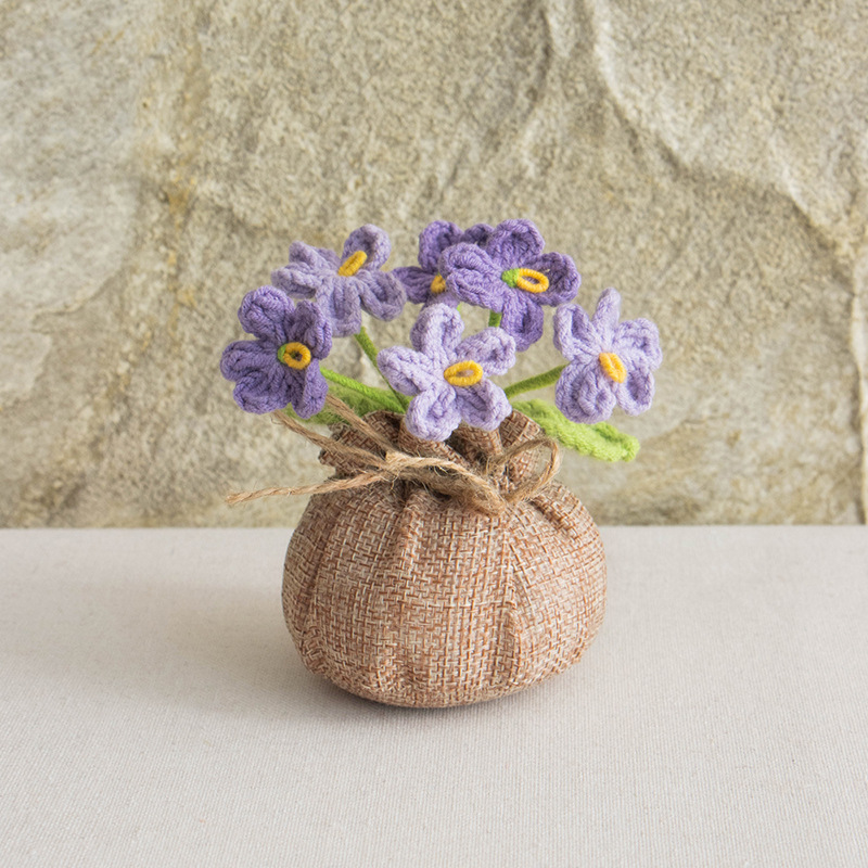 跨境手工钩织福袋小盆栽家居摆件毛线编织成品玫瑰装饰仿真花盆栽
