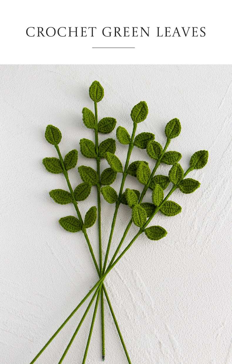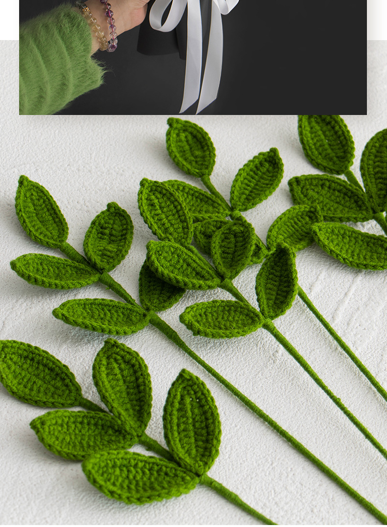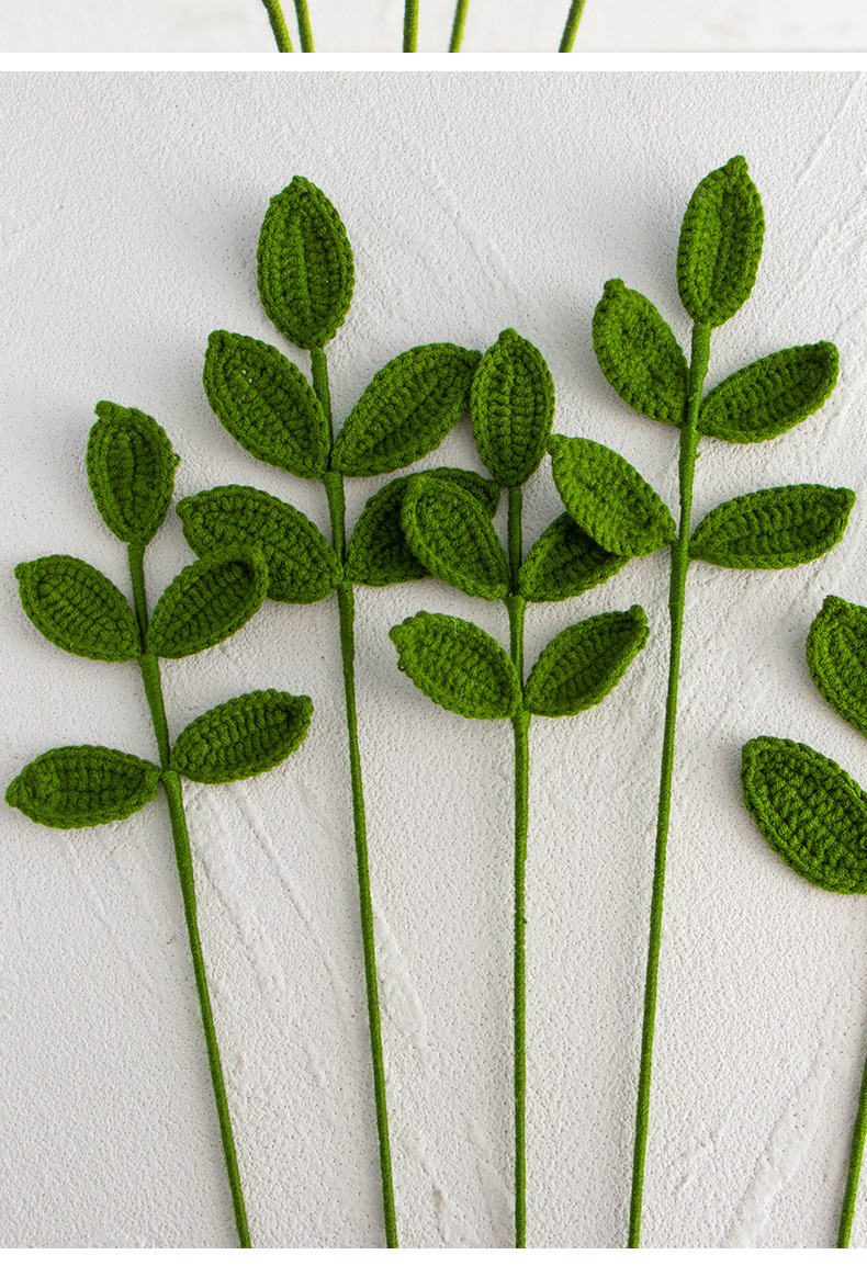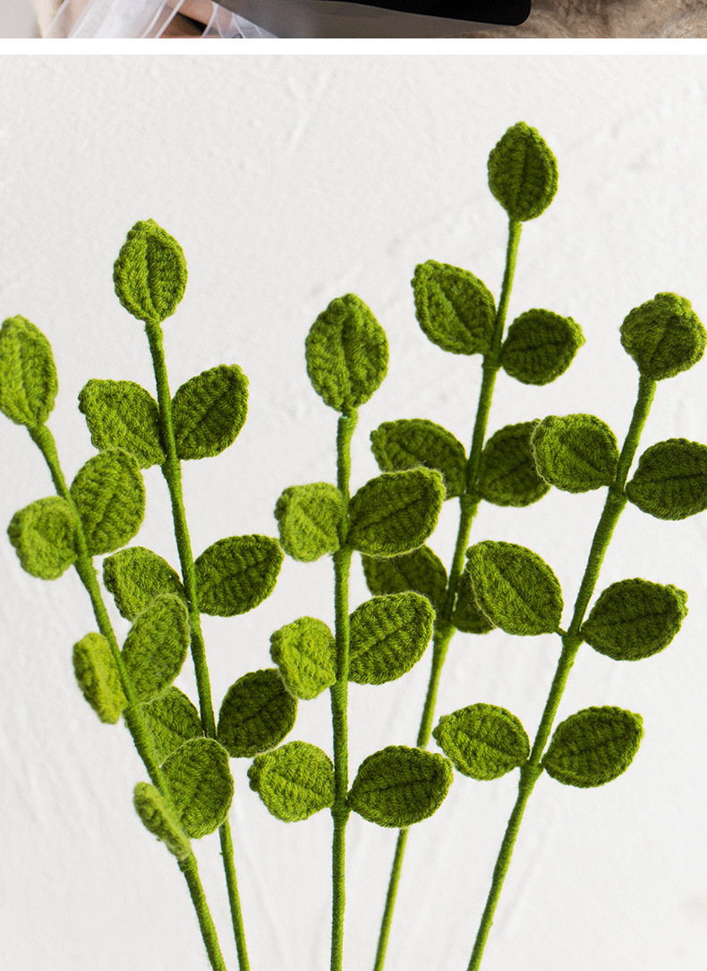 手工编织毛线宽叶尤加利仿真花束成品橄榄叶针织插花装饰家居植物