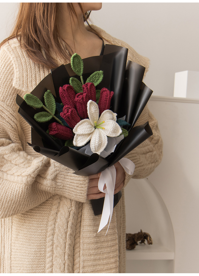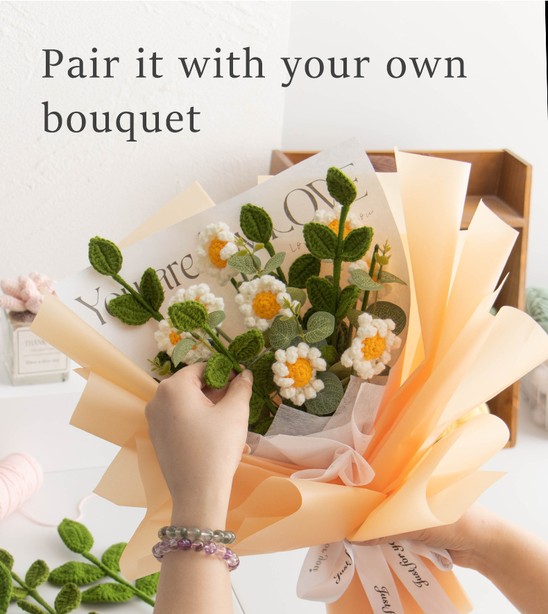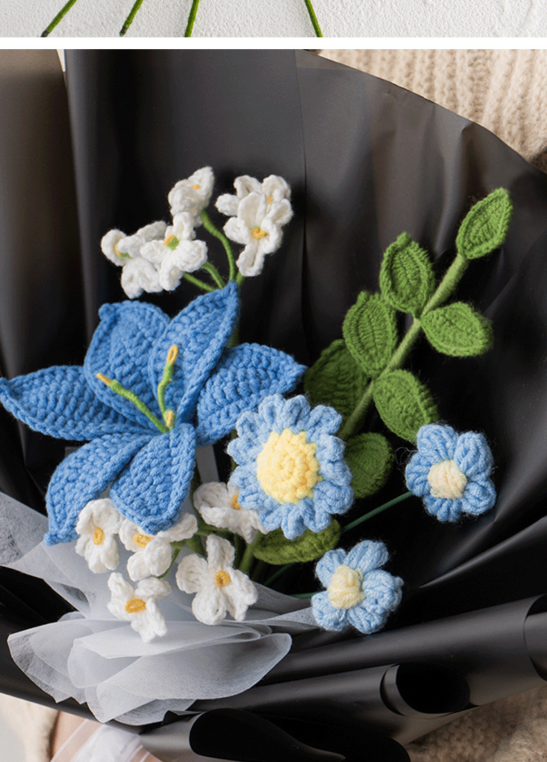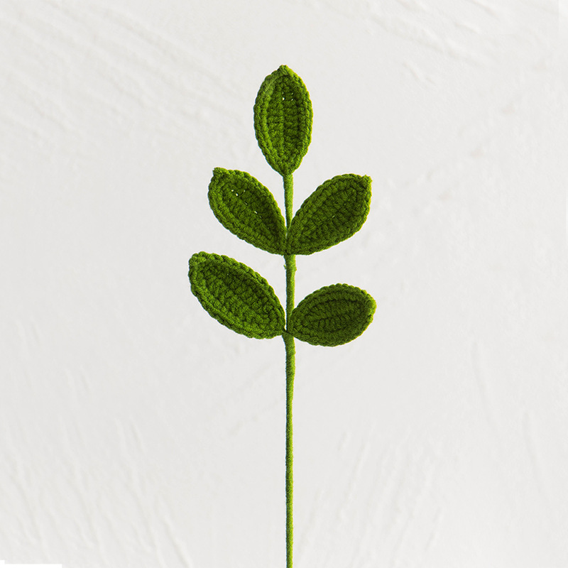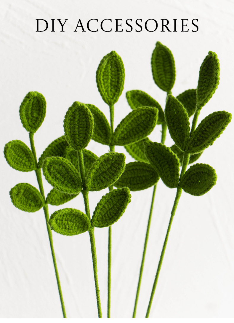 手工编织毛线宽叶尤加利仿真花束成品橄榄叶针织插花装饰家居植物