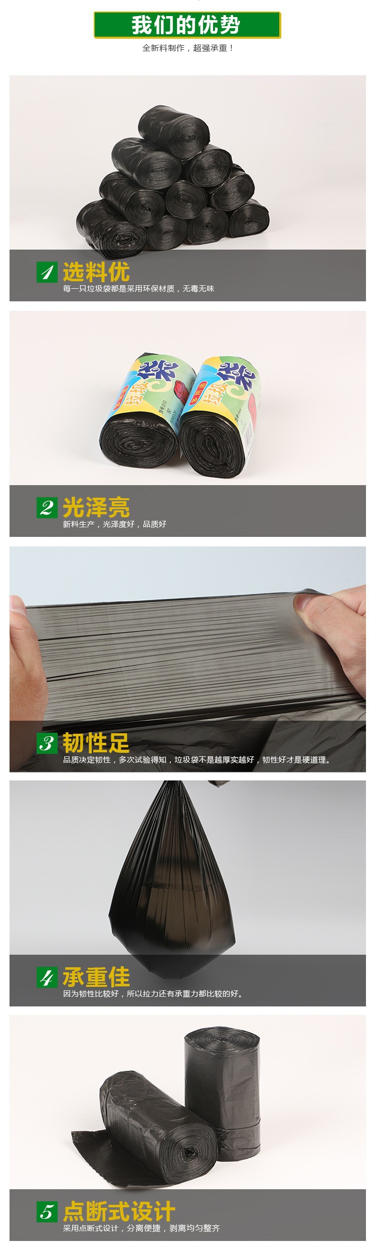 一次性加厚平口点断式垃圾袋厂家批发塑料袋厨房卫生间彩色垃圾袋