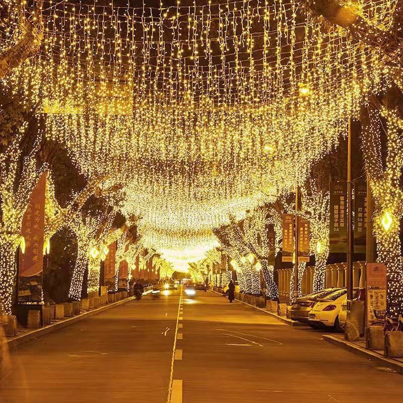 LED窗帘冰条灯瀑布灯背景满天星防水彩灯 节日装饰氛围彩灯串批发