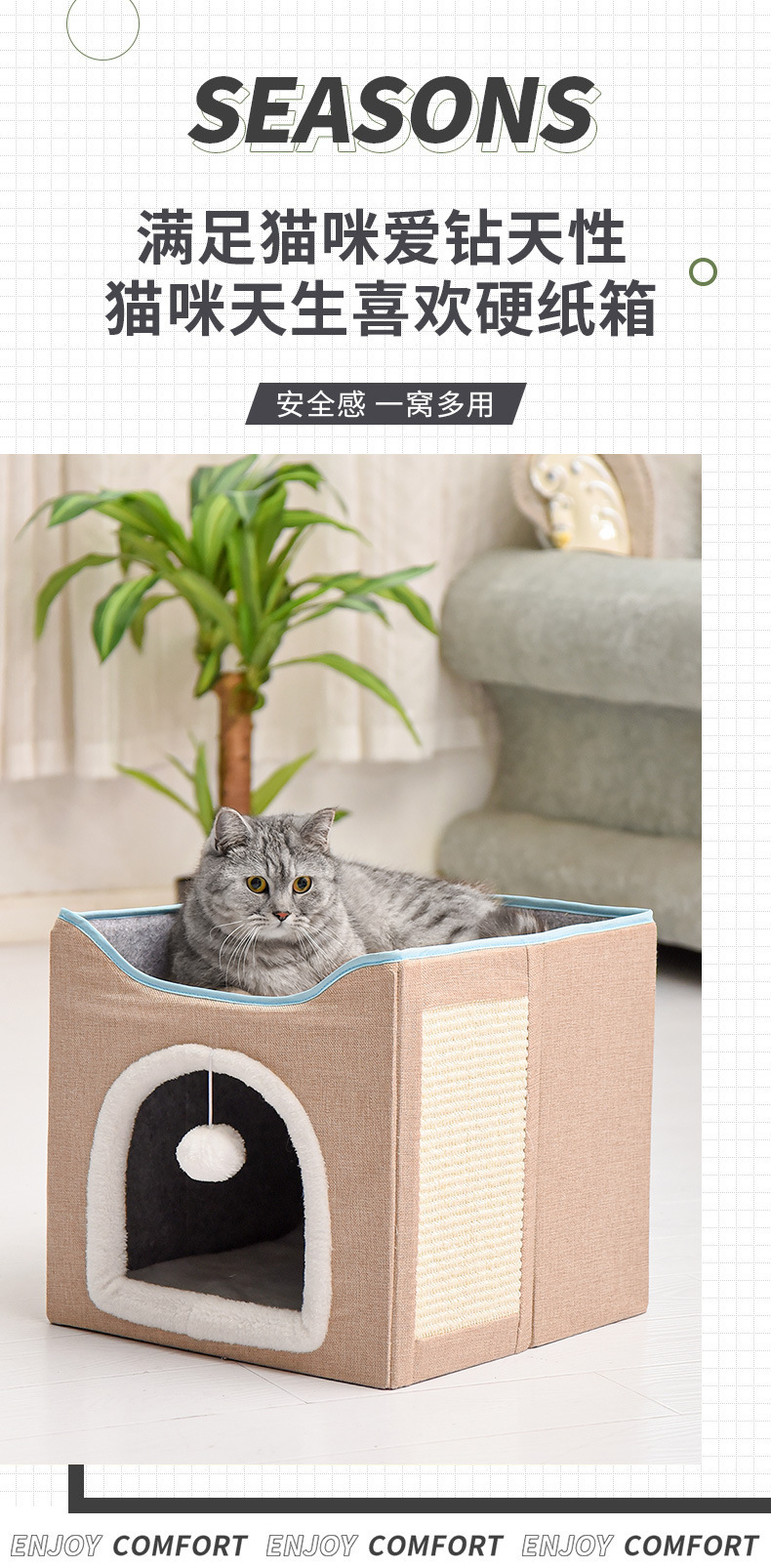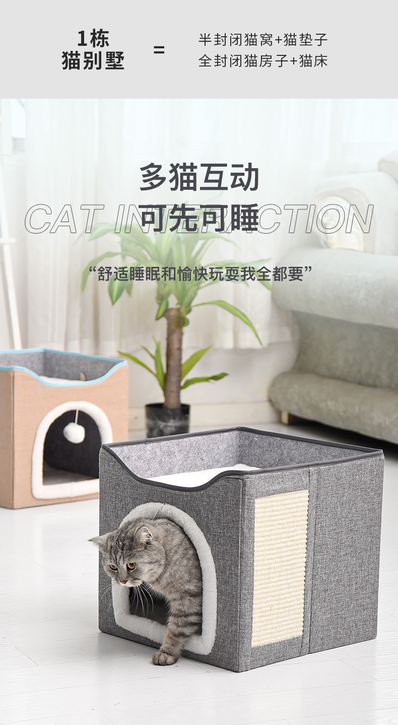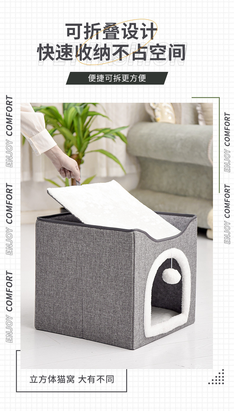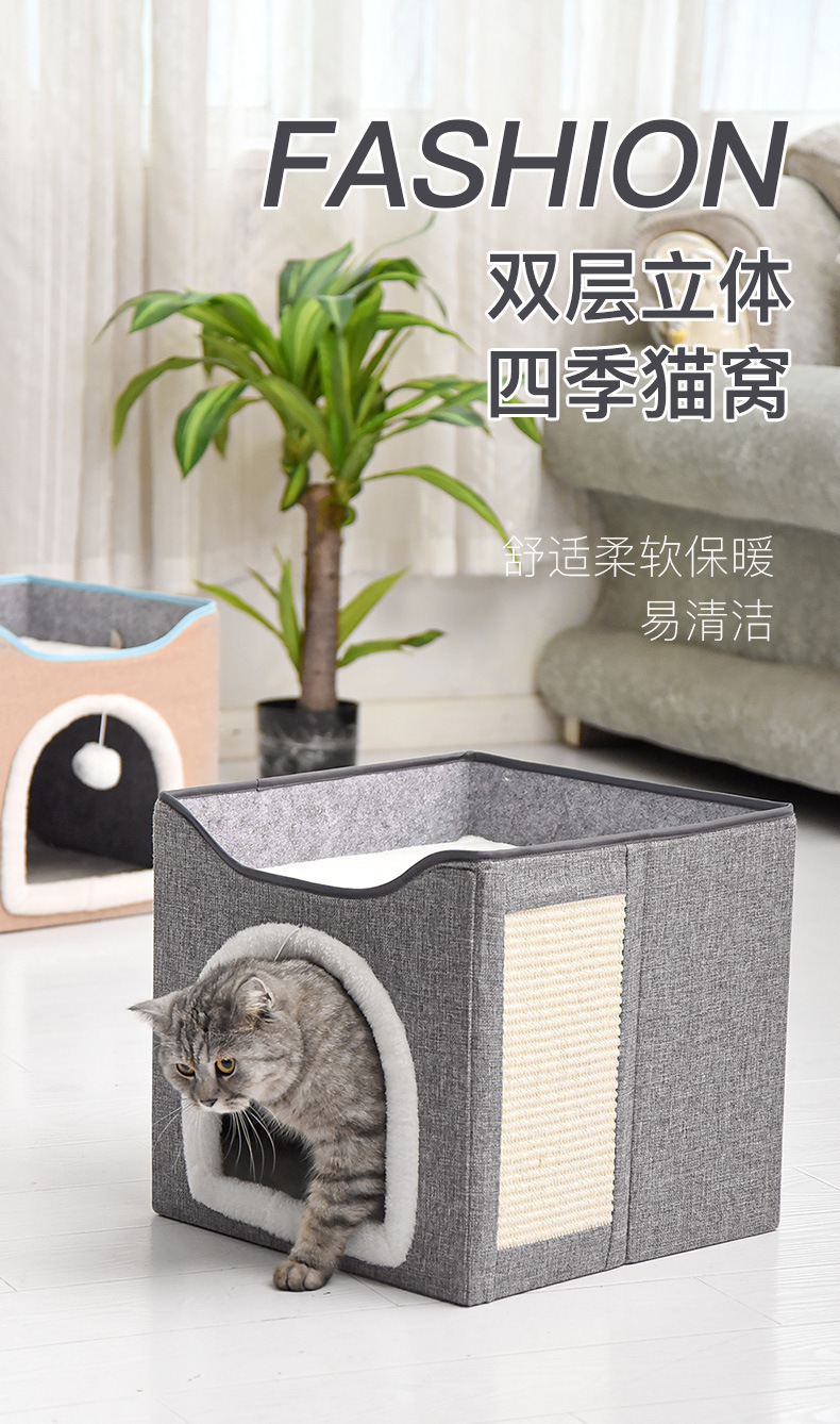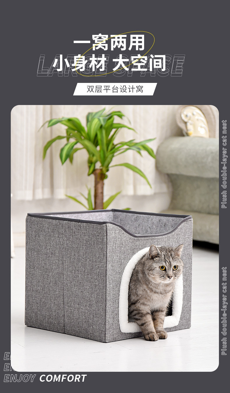 双层猫窝冬季保暖可拆洗易清理四季通用大号可折叠猫狗垫宠物猫窝