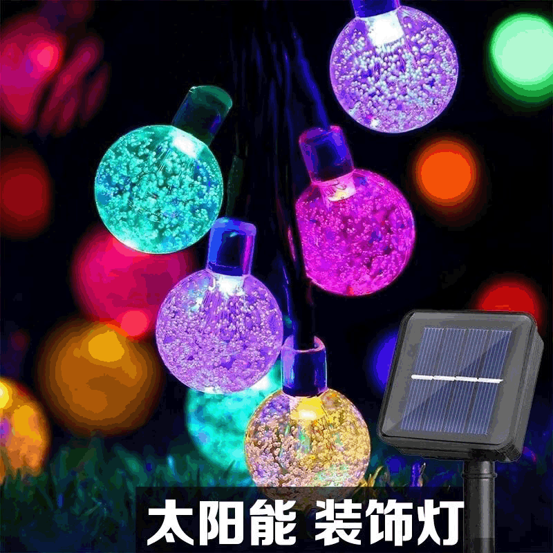 LED太阳能灯串气泡球水滴灯串户外景观庭院节日装饰圣诞灯串彩灯