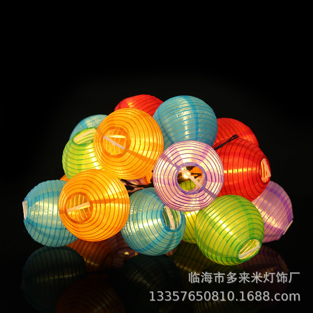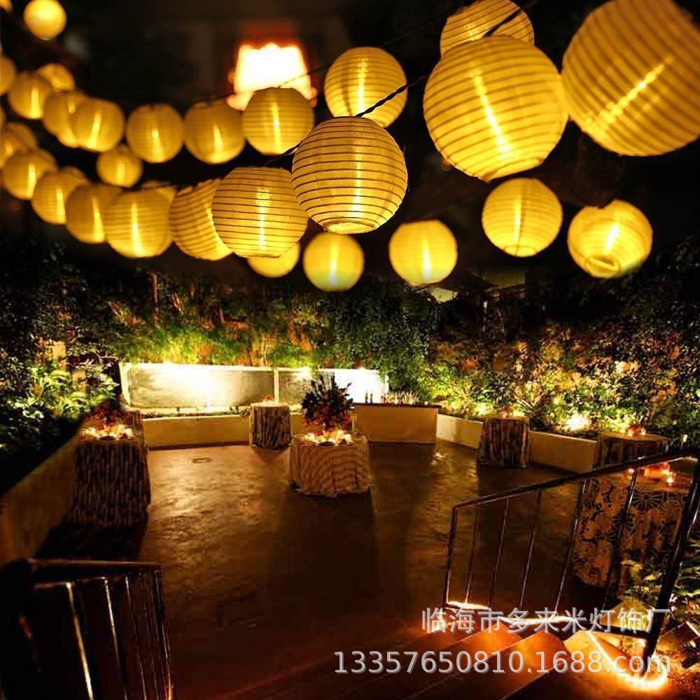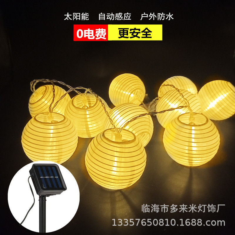 LED太阳能灯笼灯串布艺灯笼串灯装饰灯庭院户外防水圣诞节日彩灯