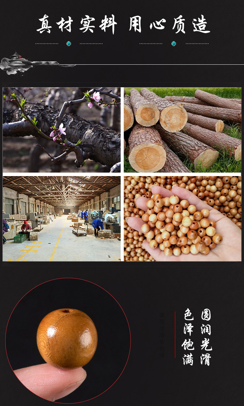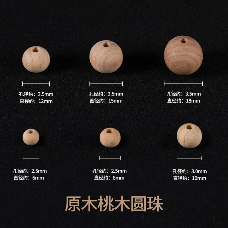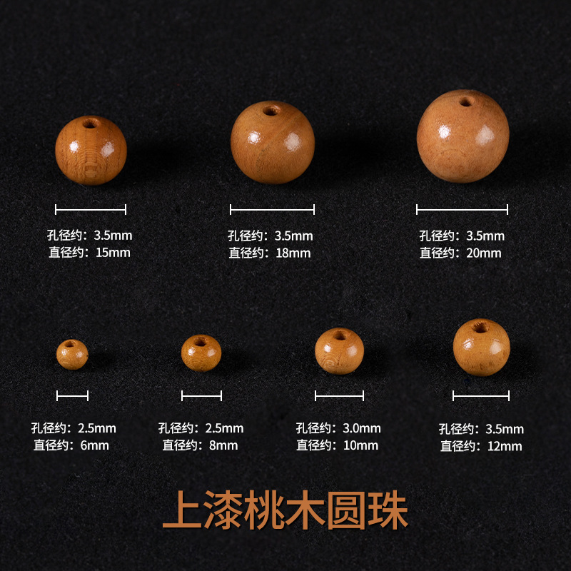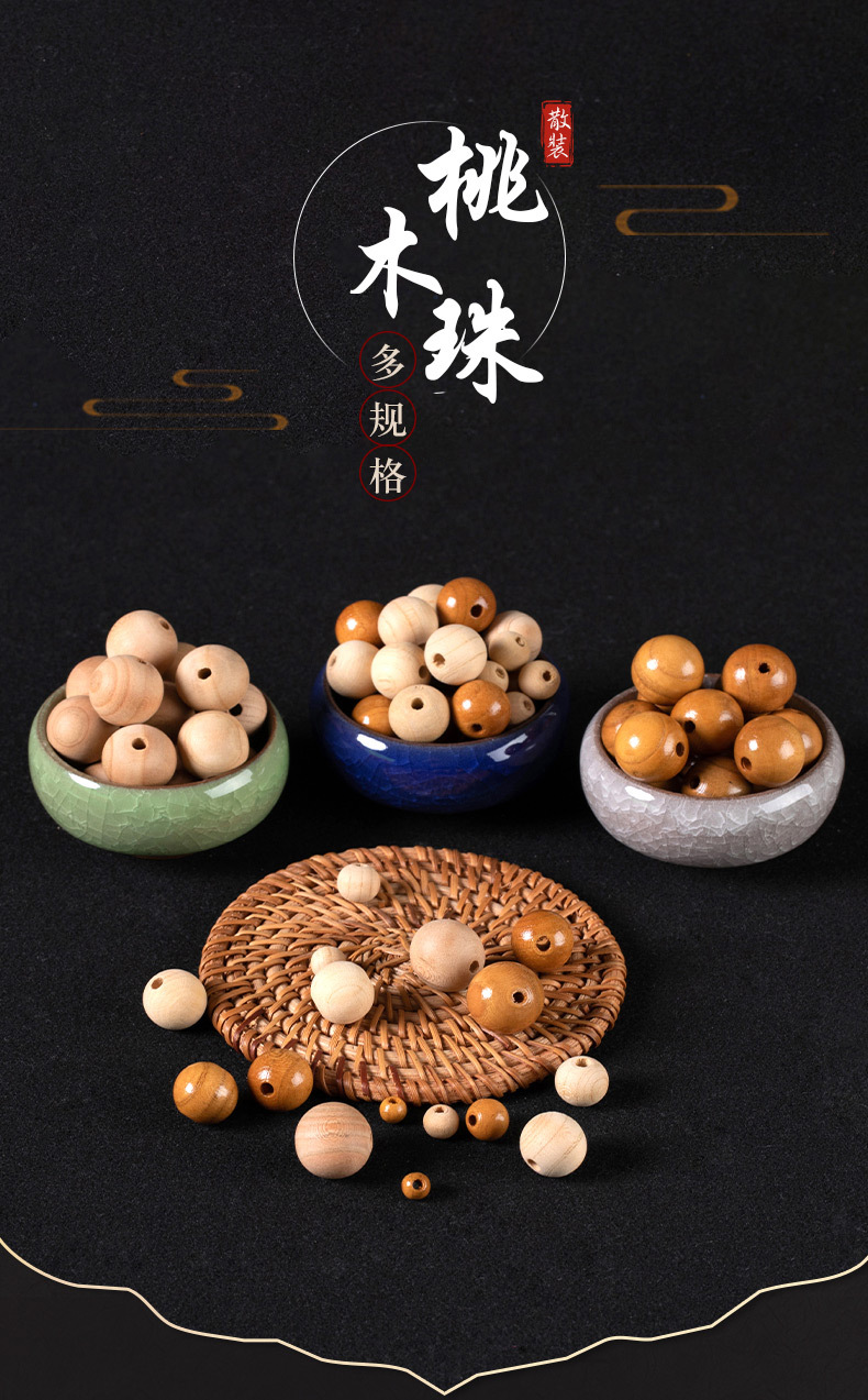 原木桃木珠散珠diy手链串珠配饰材料上清漆桃木珠子散珠圆珠批发