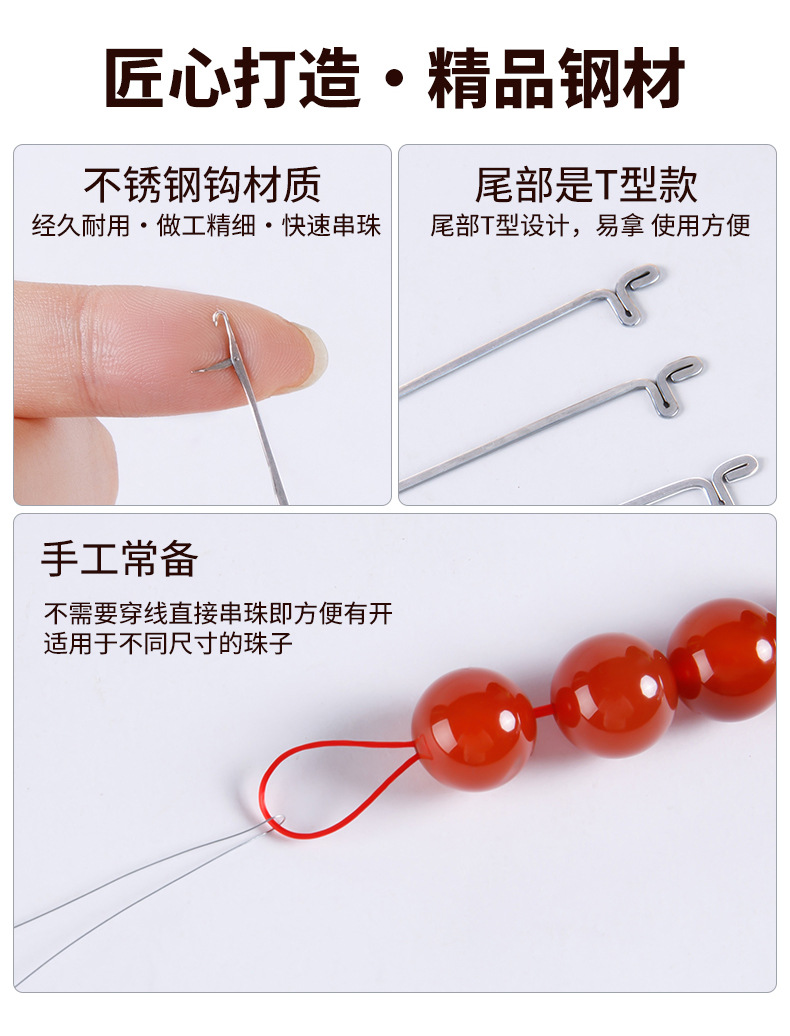 文玩穿线钩针钢丝引线丝穿珠子的针串线穿针配件diy串珠工具批发