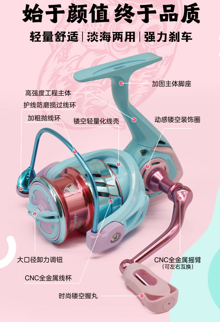 黑鲨全金属浅线杯远投鱼线轮海竿锚鱼微物轮渔具钓具批发