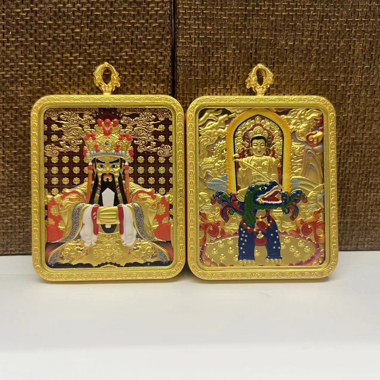 五台山新款全半身款五爷唐卡本命佛生肖双面立体龙五爷文殊佛吊坠
