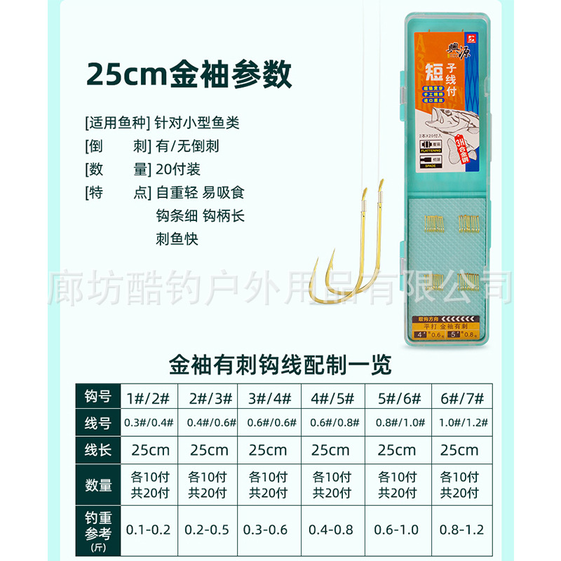 鲫鱼钩绑好子线双钩成品短子线仕挂秋田狐金袖金海夕小鱼钩批发