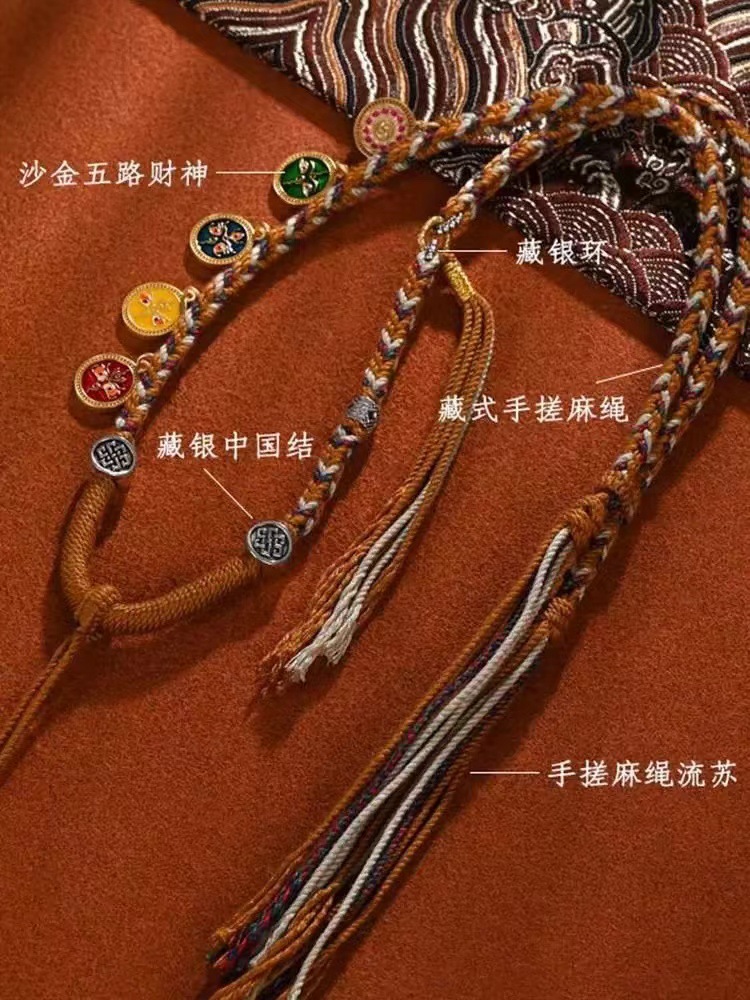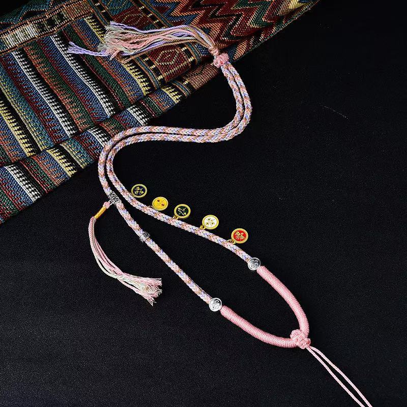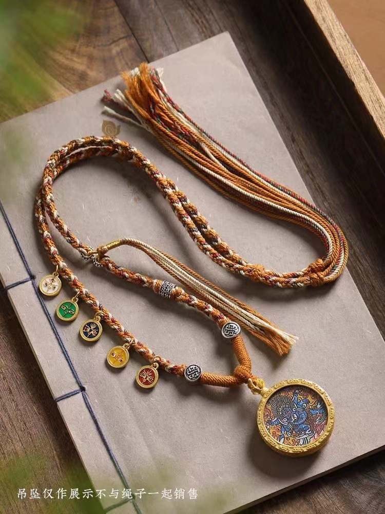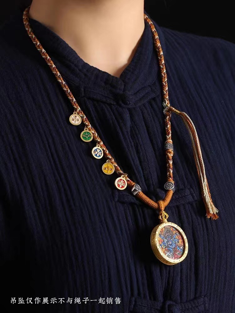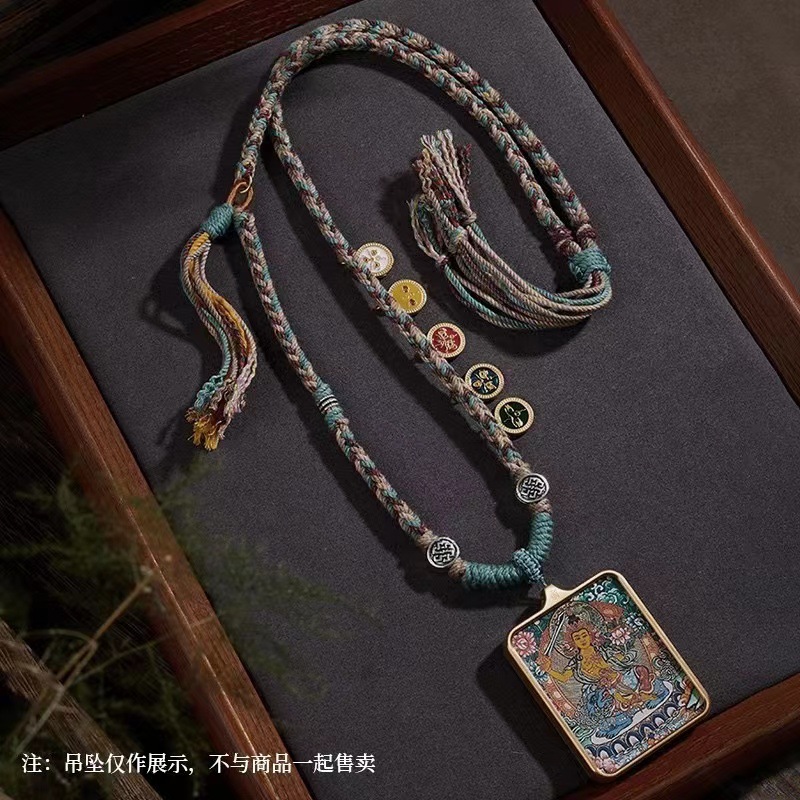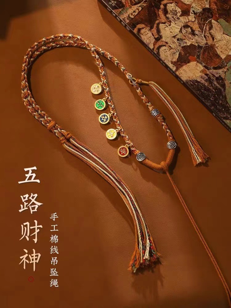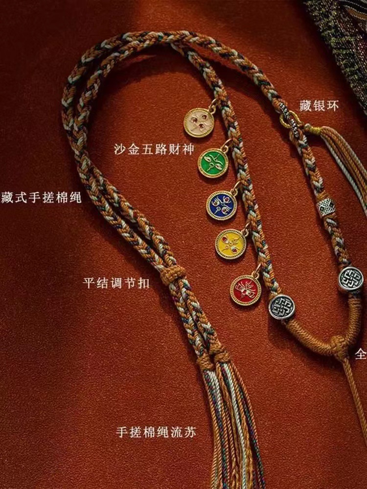 五路财神吊坠绳民族风手搓棉线编项链搭配唐卡佛牌吊坠五爷绳手工