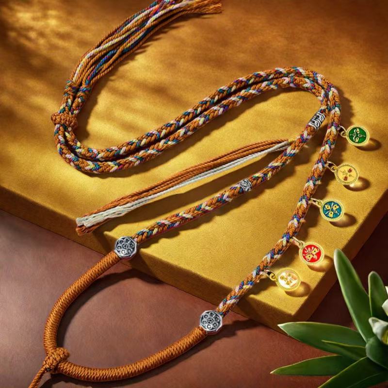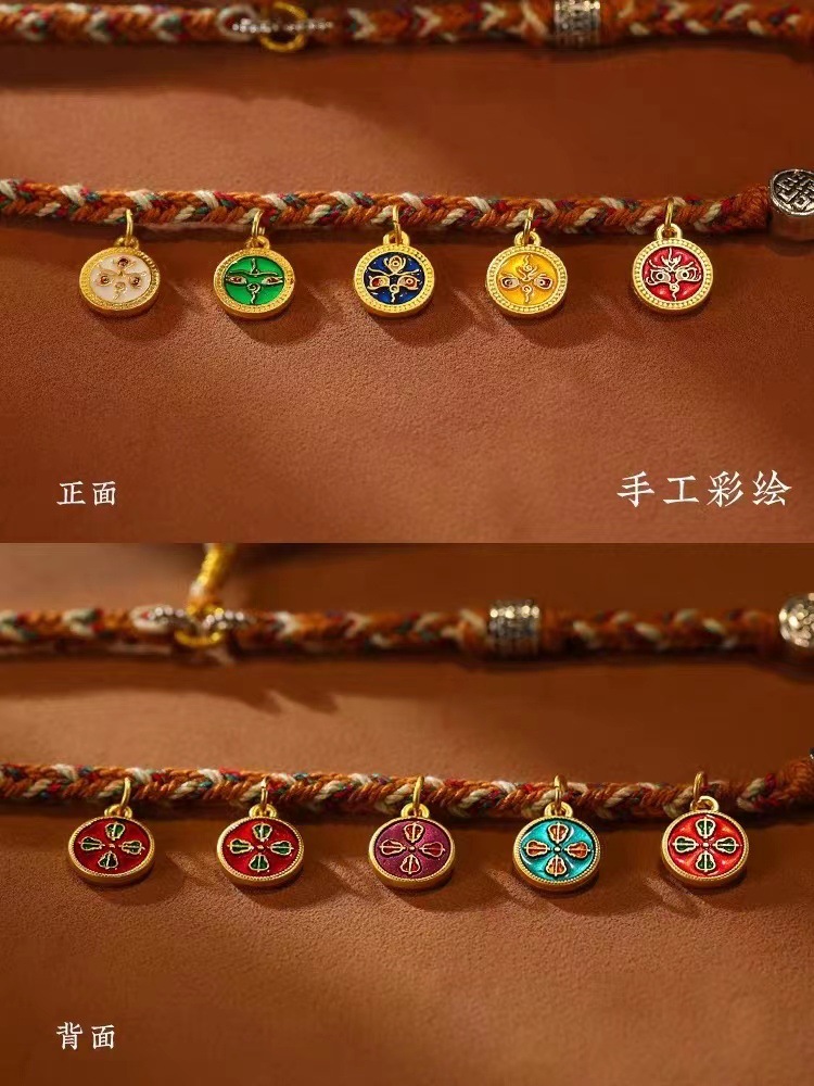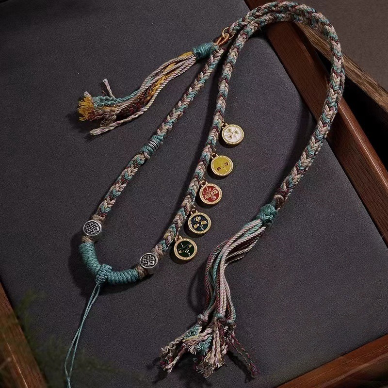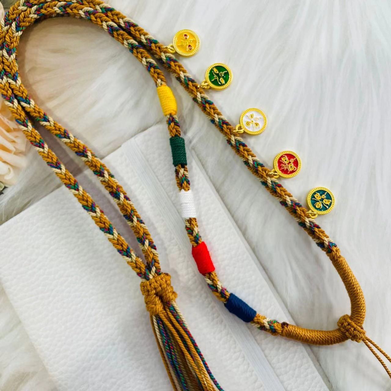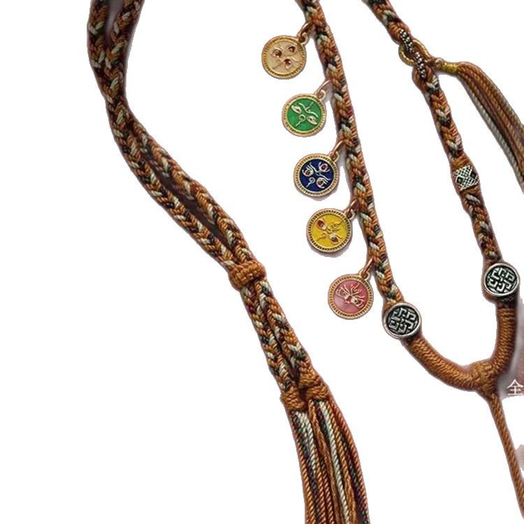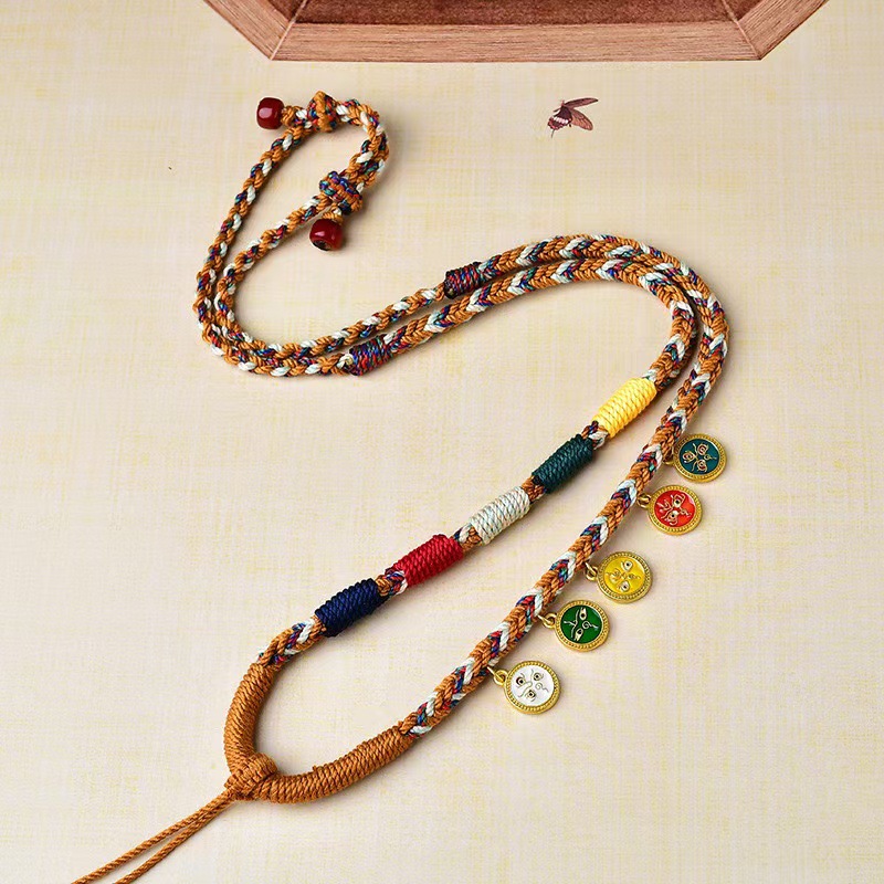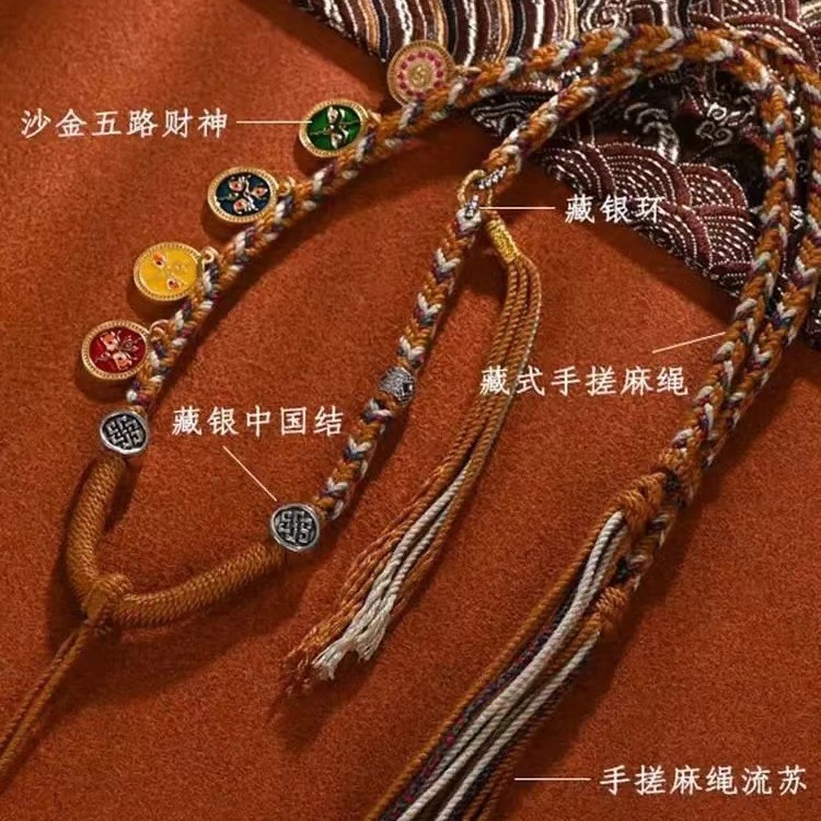 五路财神吊坠绳民族风手搓棉线编项链搭配唐卡佛牌吊坠五爷绳手工