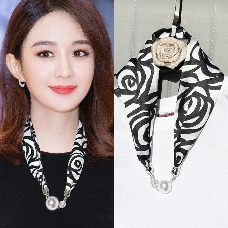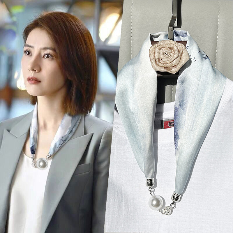 磁吸扣丝巾女磁吸珍珠项链长条2023新款送妈妈礼物高级感搭配衬衫