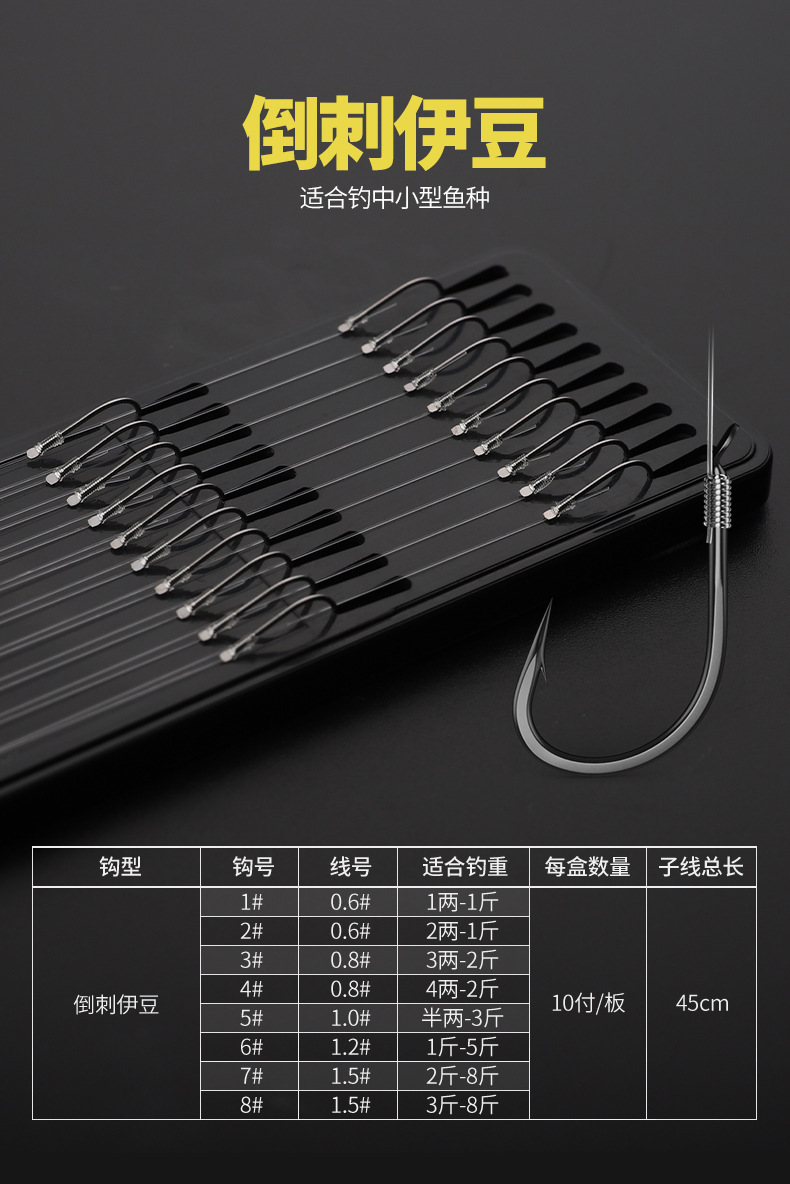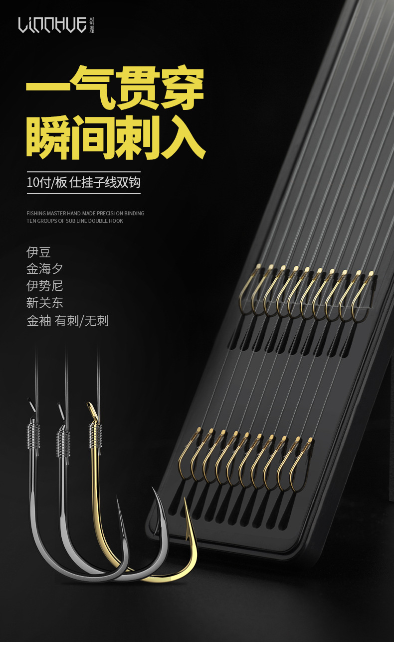 粼湖纯手工子线双钩绑好伊豆鱼钩成品子线伊势尼有刺无刺金袖袖钩