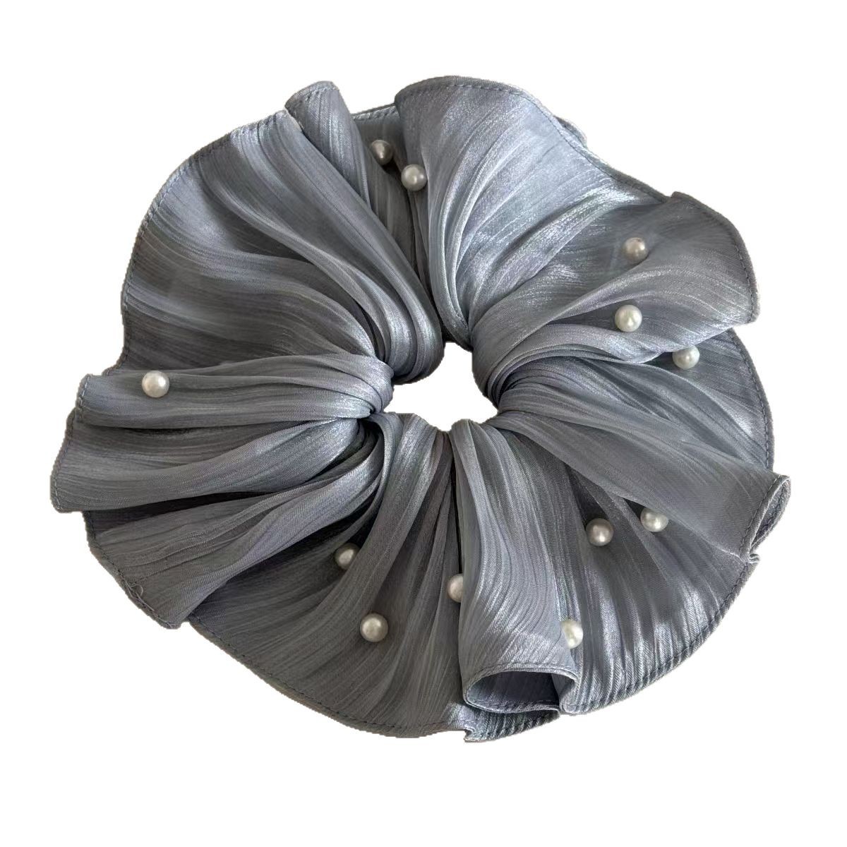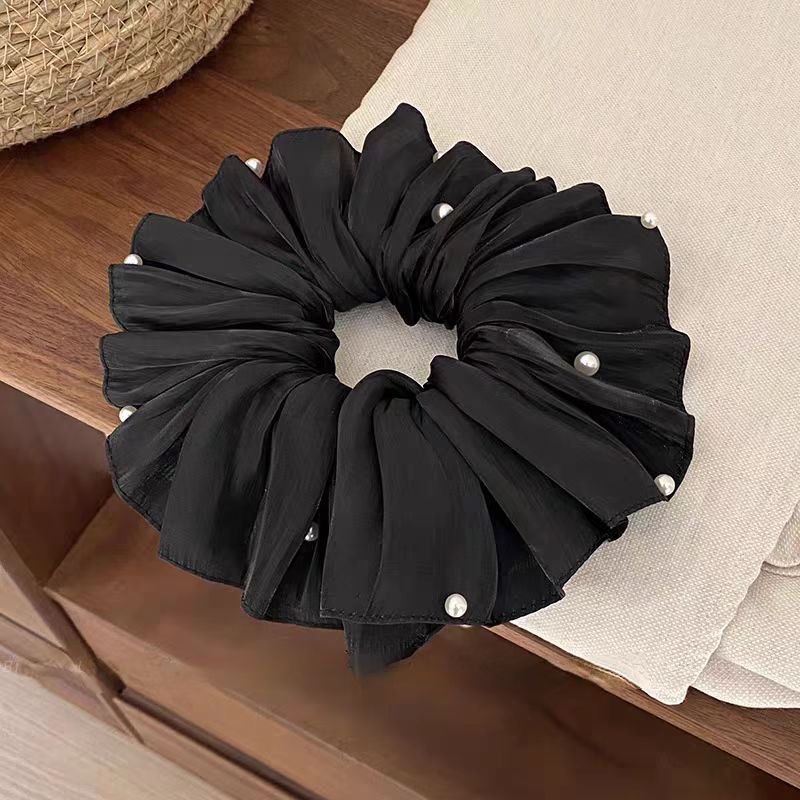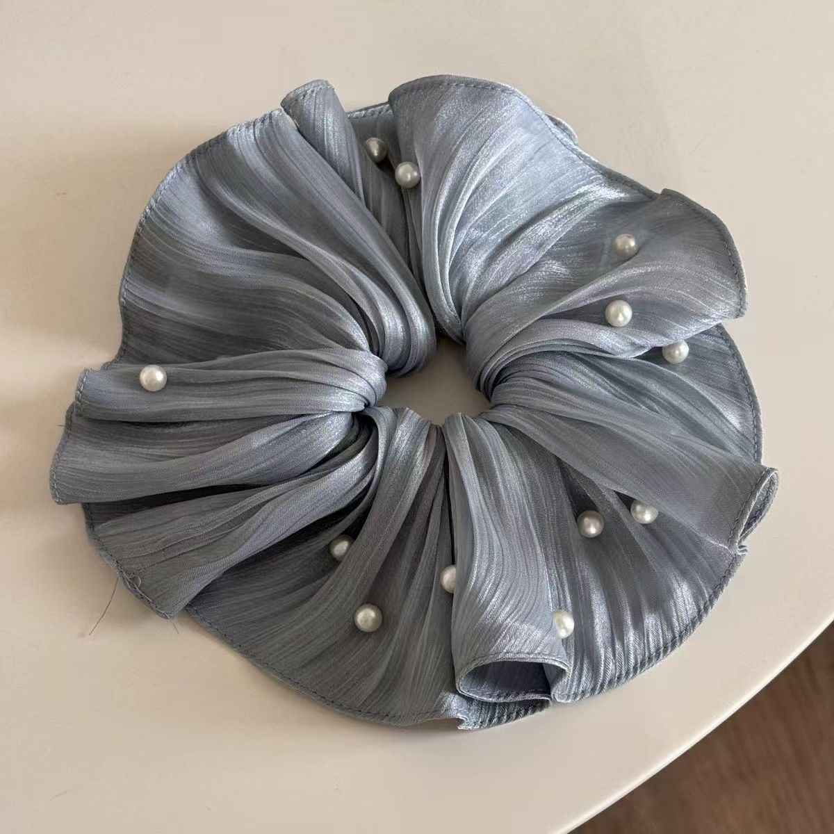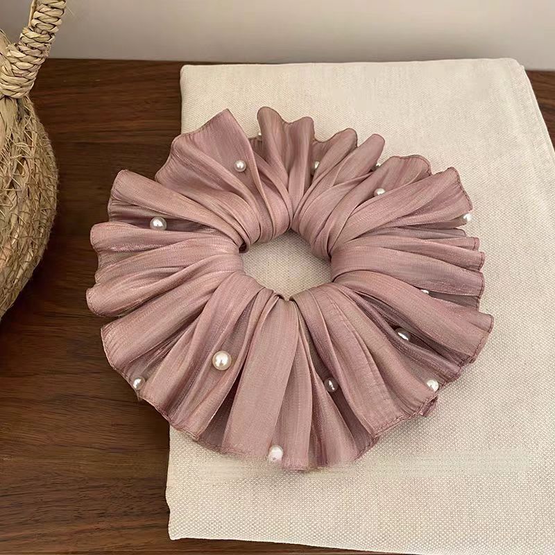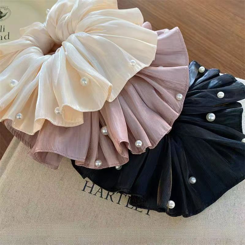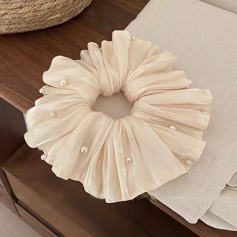韩国甜美珠光丝滑肥肠圈褶皱珍珠发圈氛围感百搭头圈网红发饰发绳