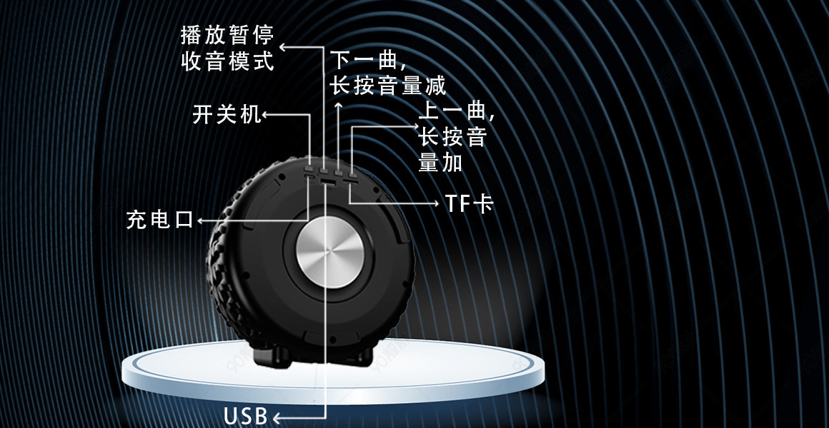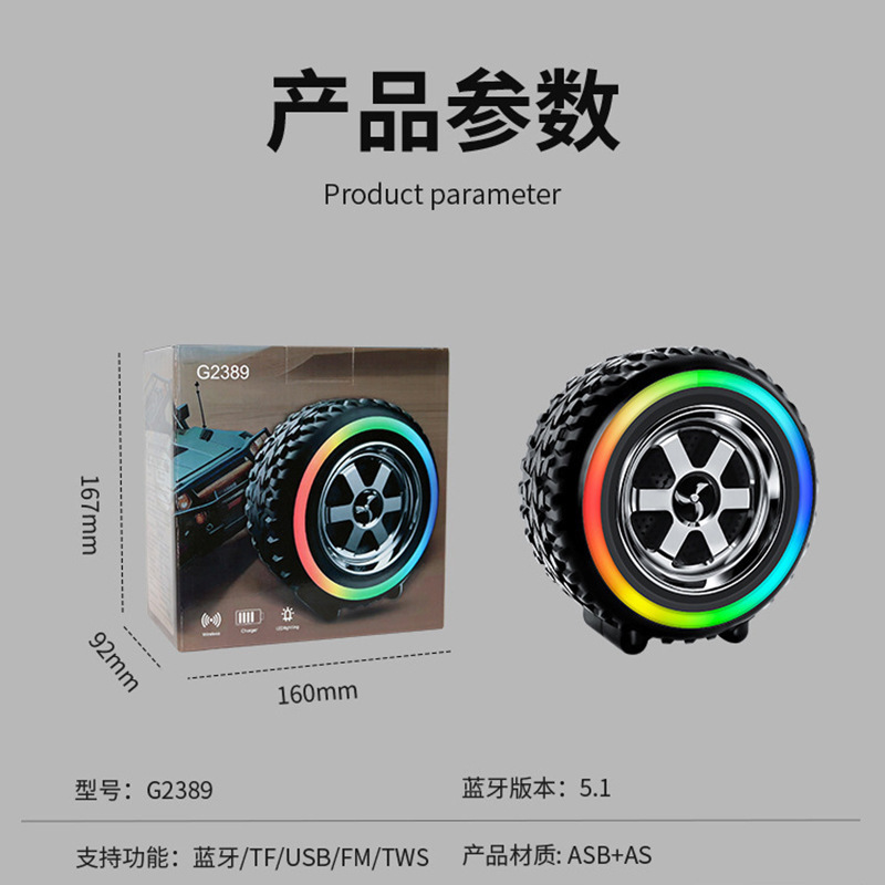 新款无线蓝牙轮胎音响便携式多功能重低音炮u盘插卡炫彩蓝牙音响