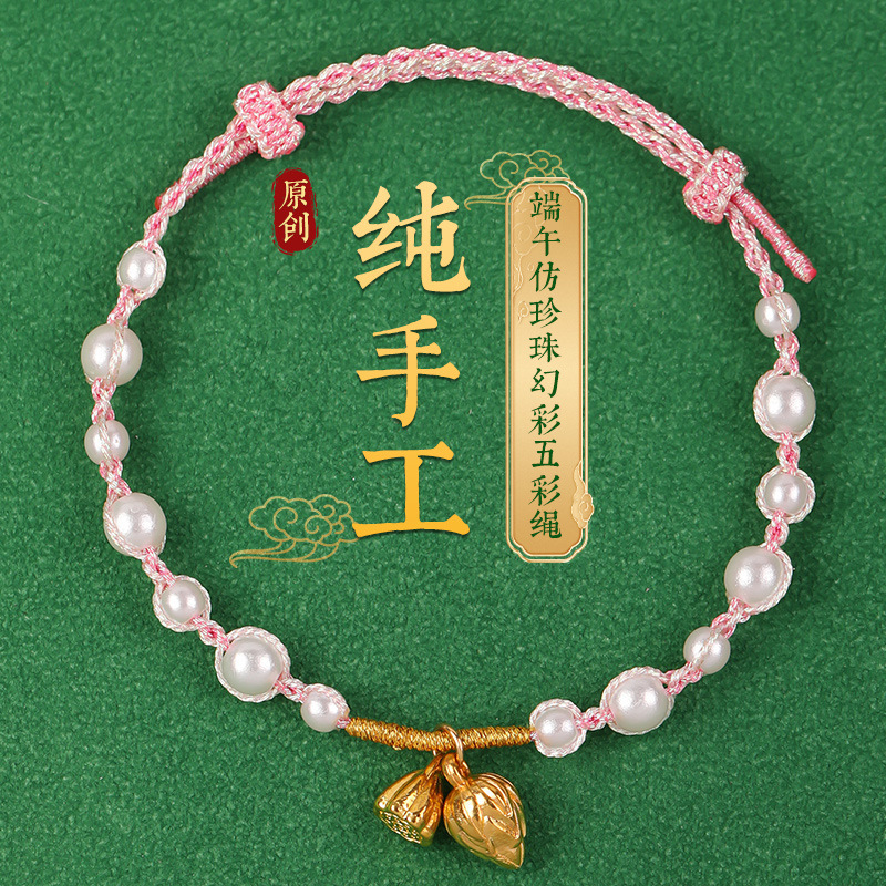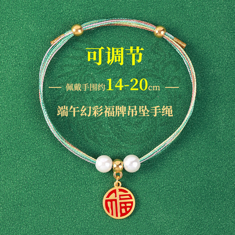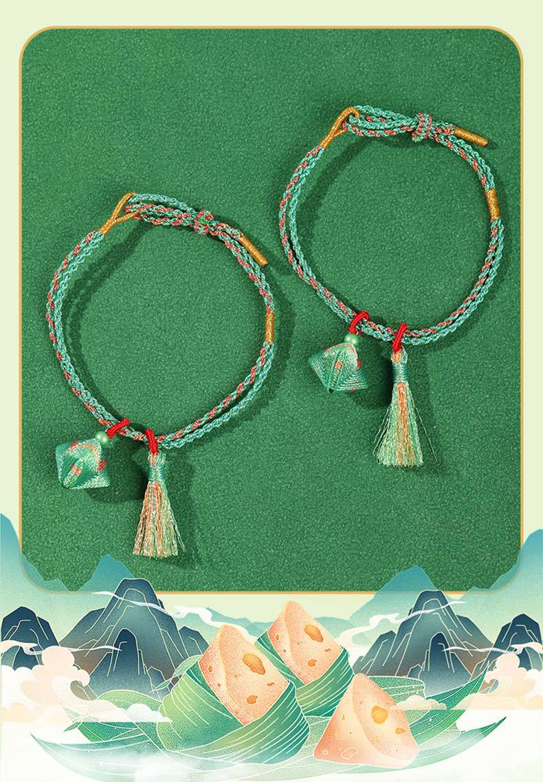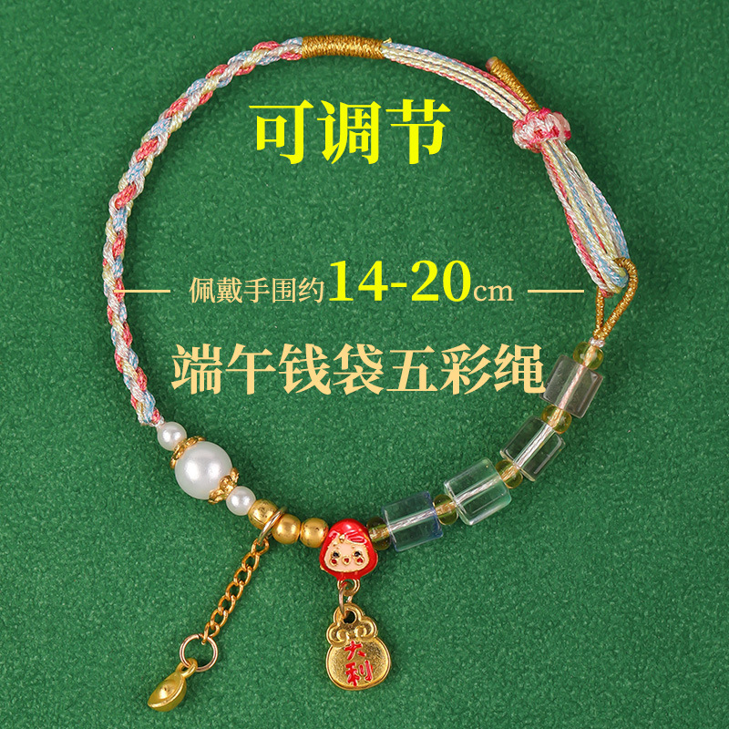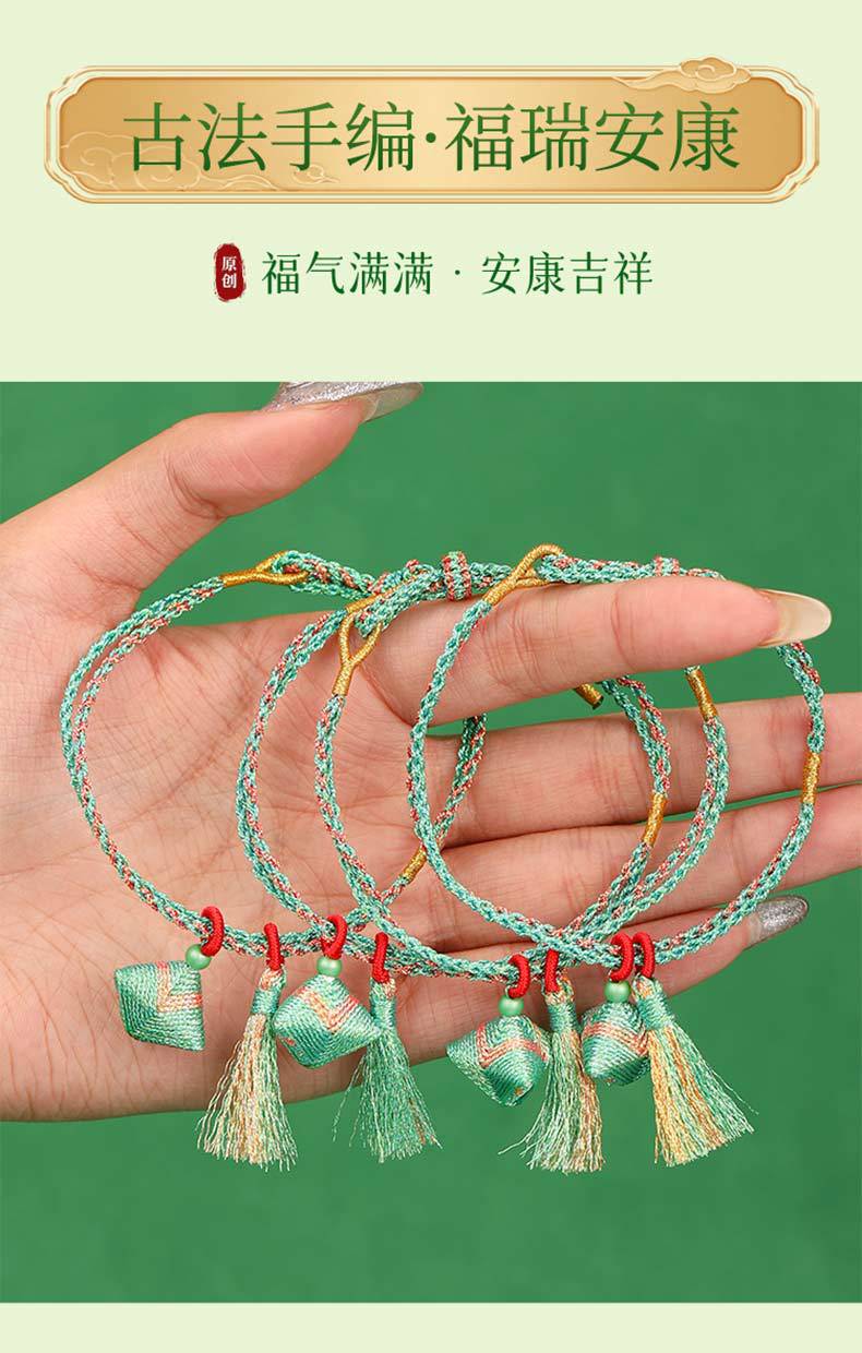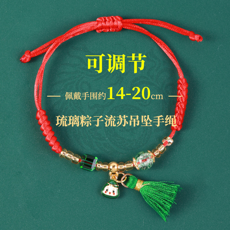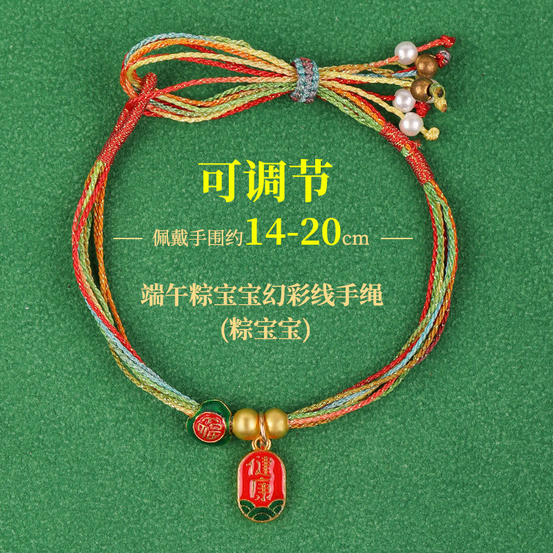 张端午节彩绳手绳手工编手链流苏小粽子可调节五彩绳端午批货