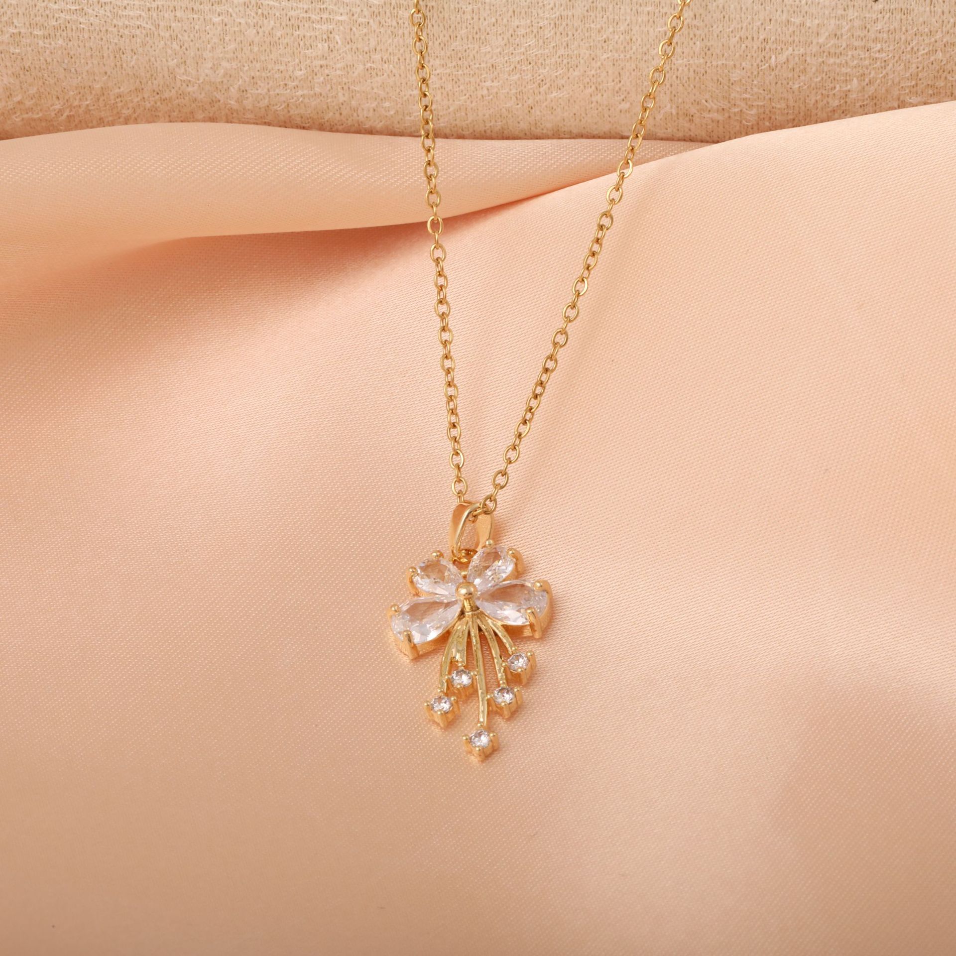 新款欧美轻奢满钻锆石向日葵花朵吊坠项链女简约小众锁骨链饰品