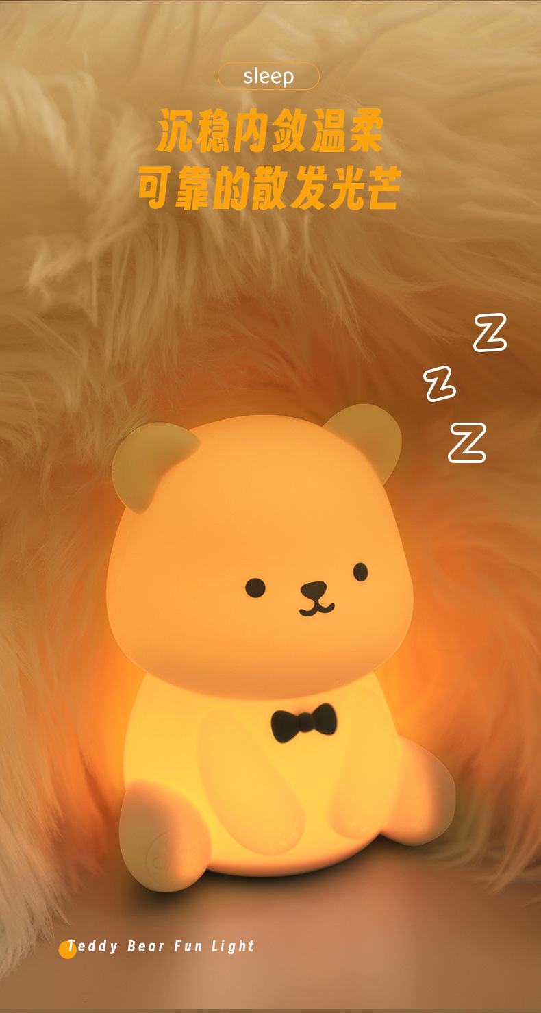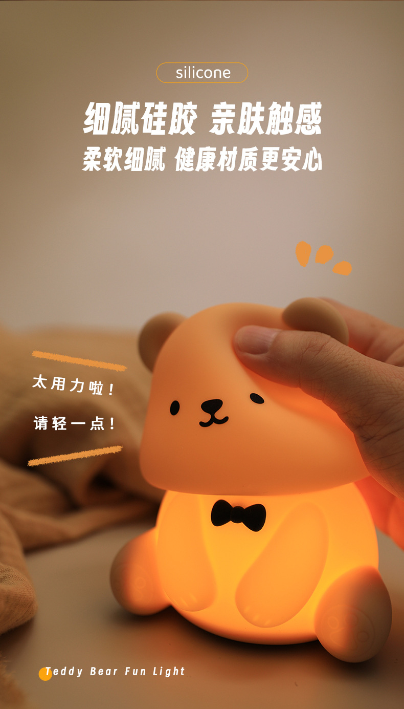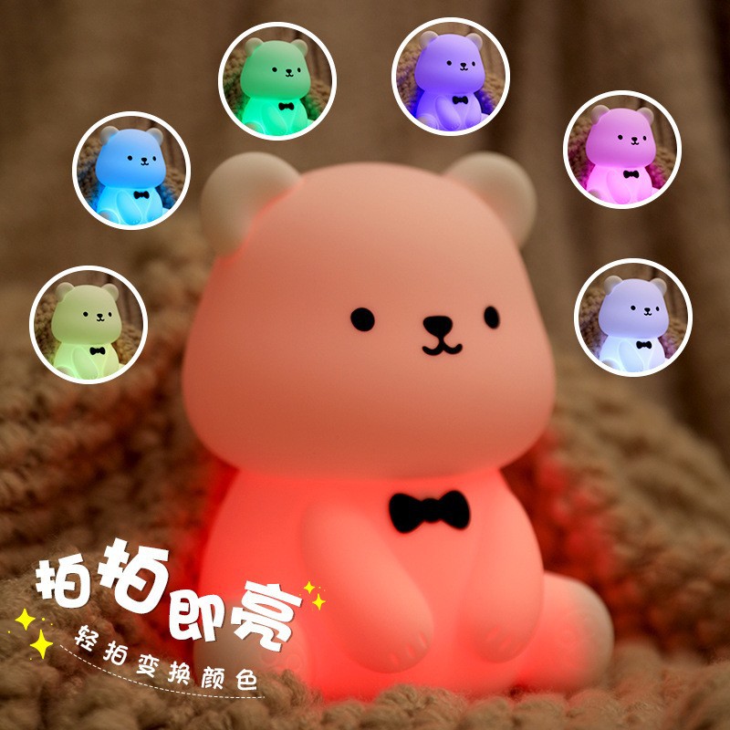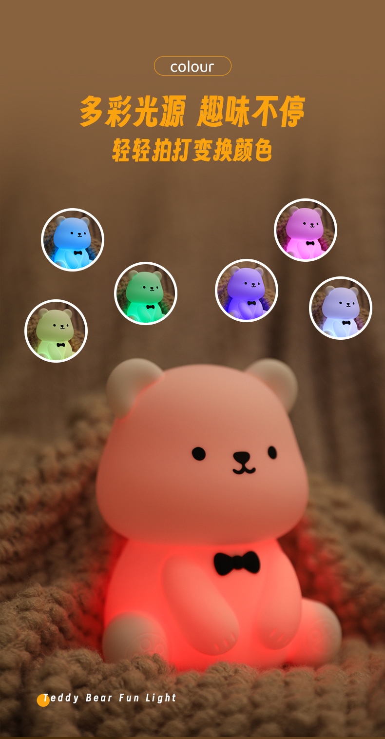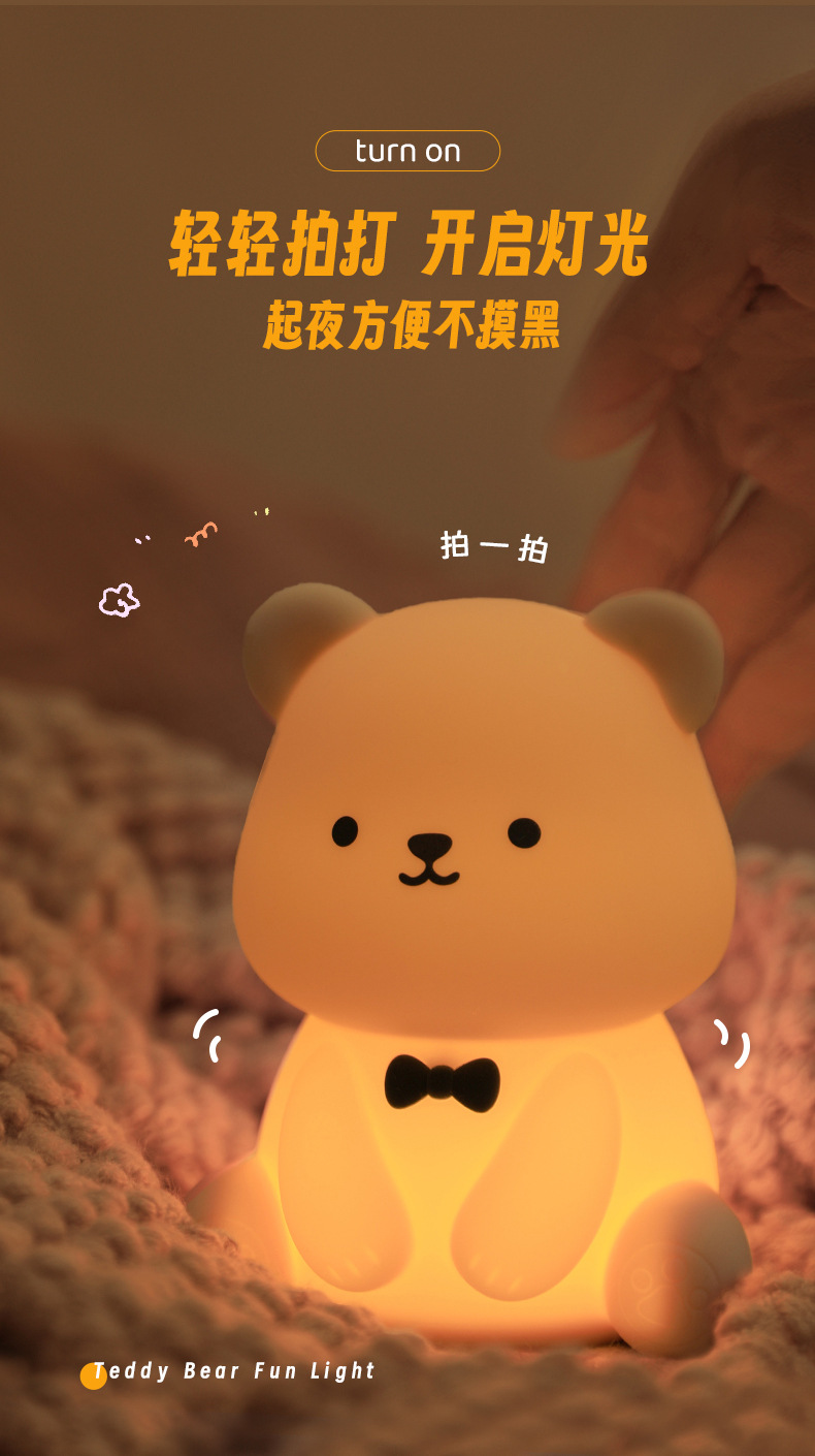 新款泰迪熊趣味灯炫彩拍拍灯床头喂奶灯儿童USB充电夜灯充插两用