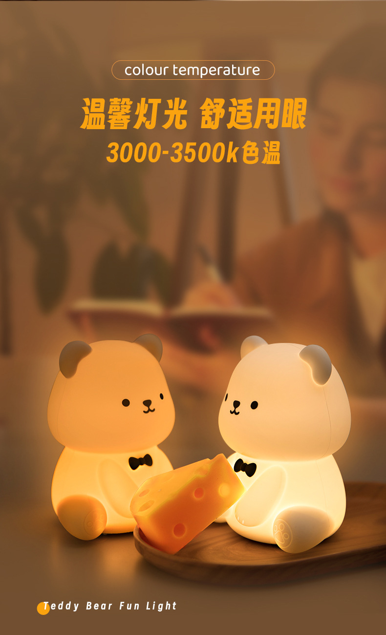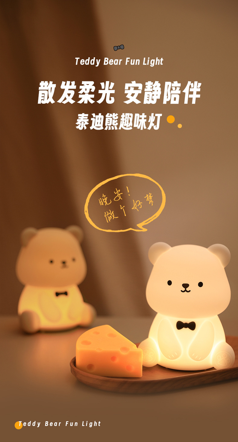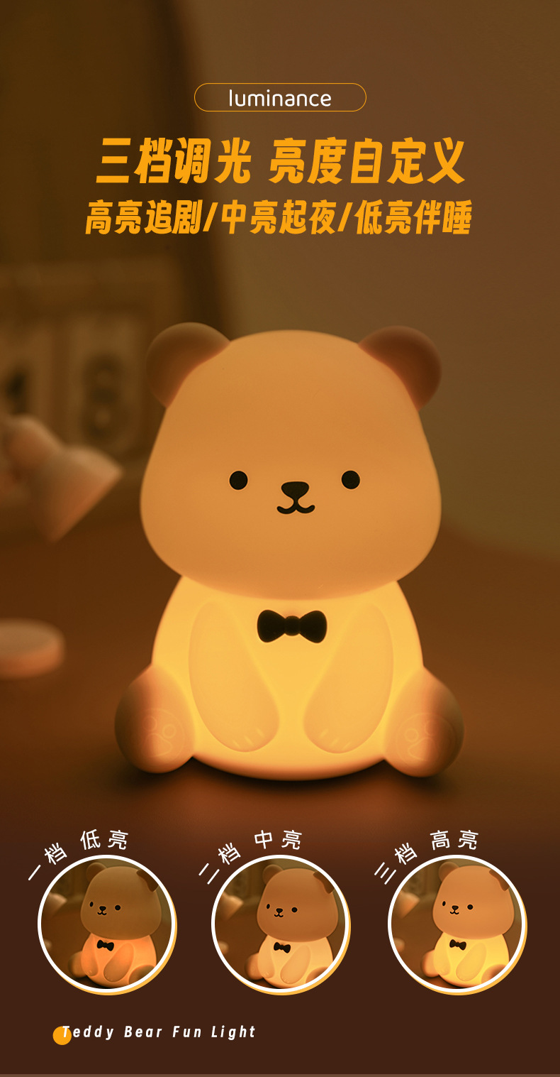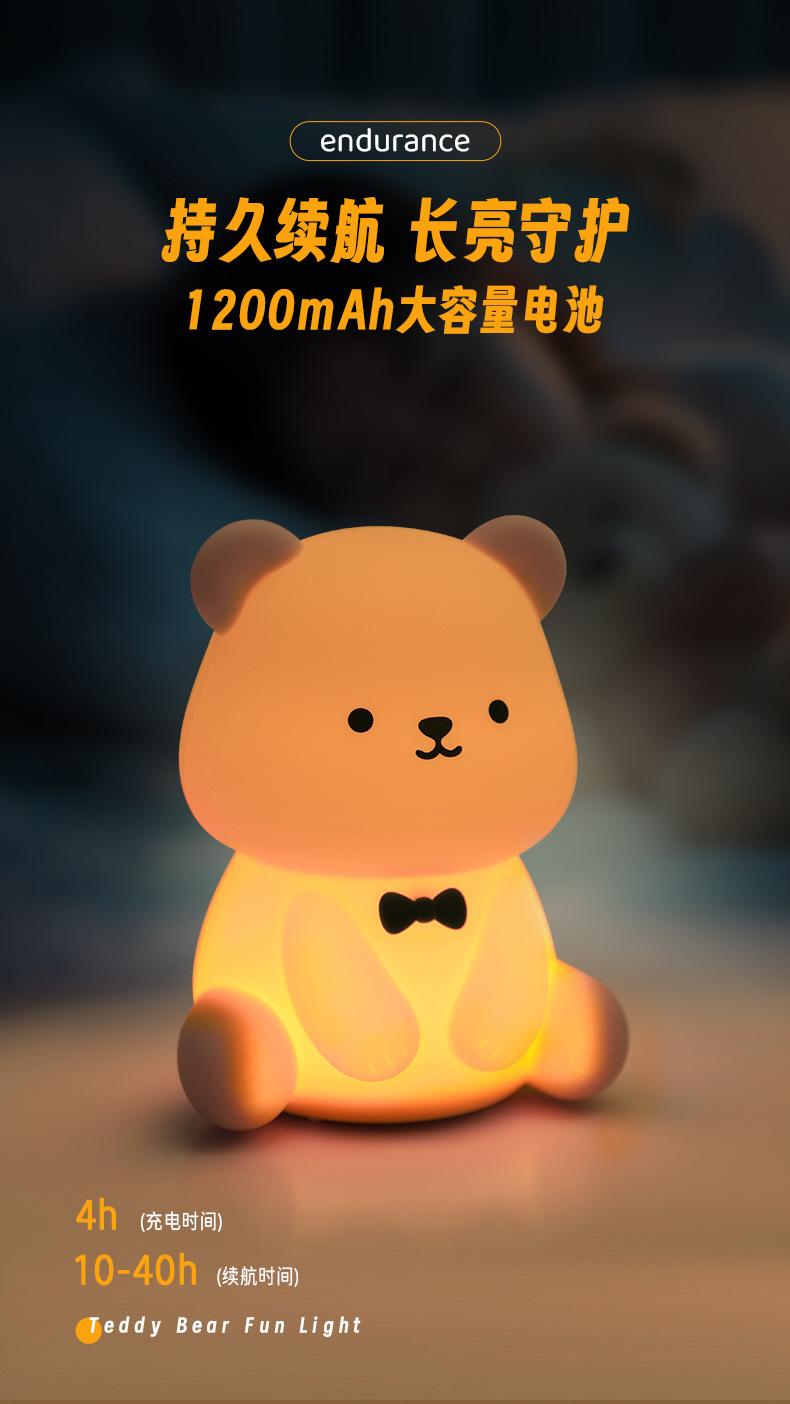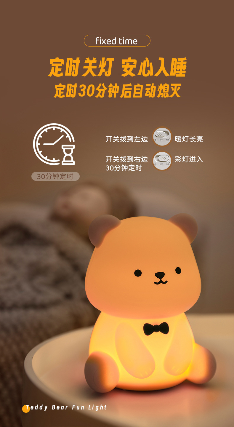 新款泰迪熊趣味灯炫彩拍拍灯床头喂奶灯儿童USB充电夜灯充插两用