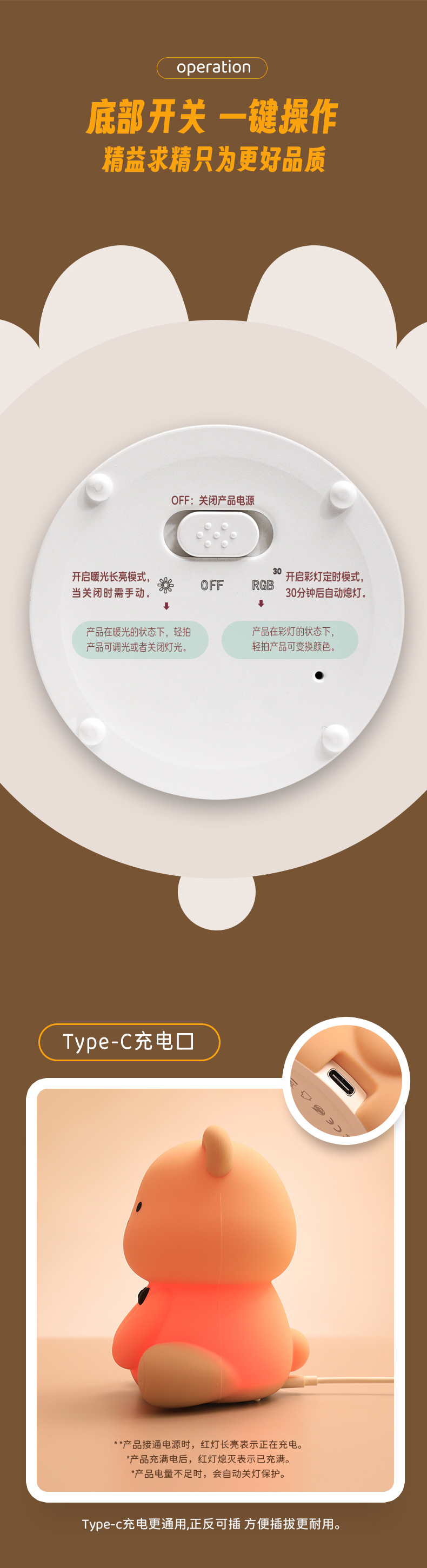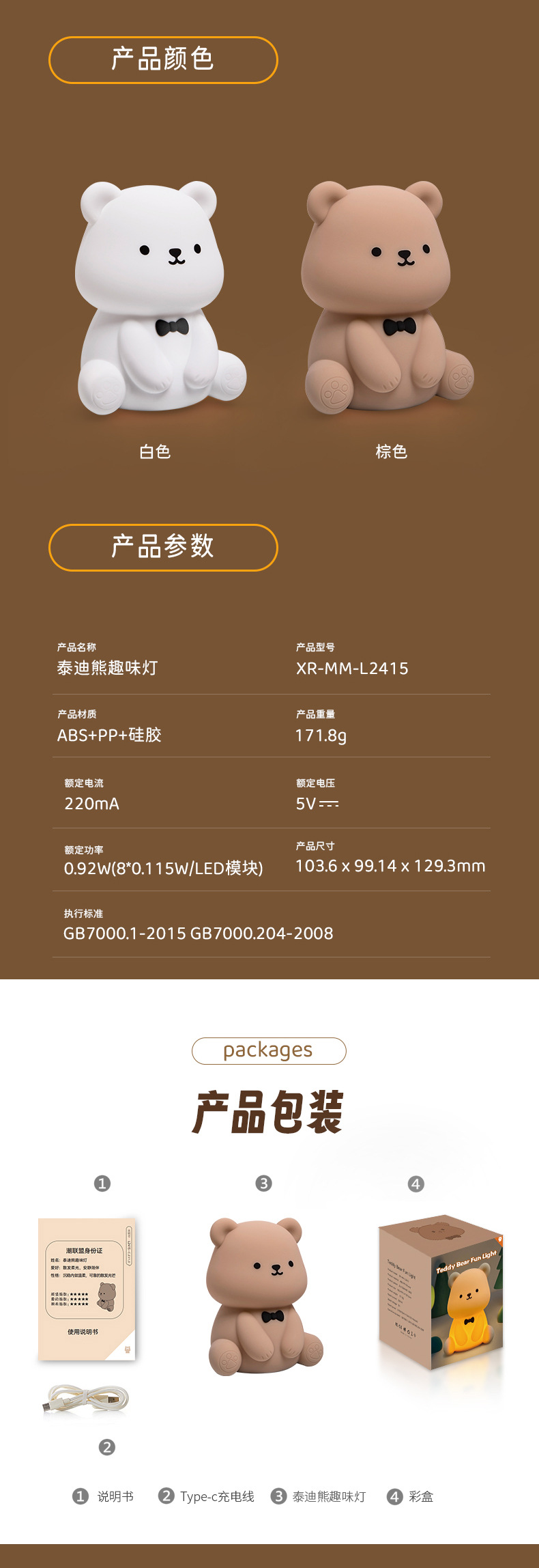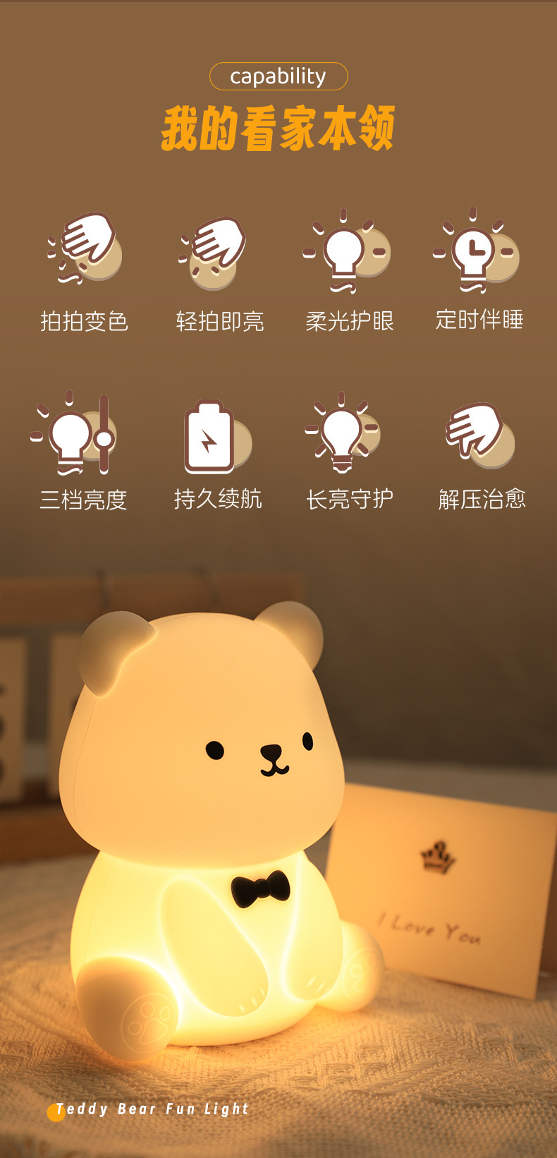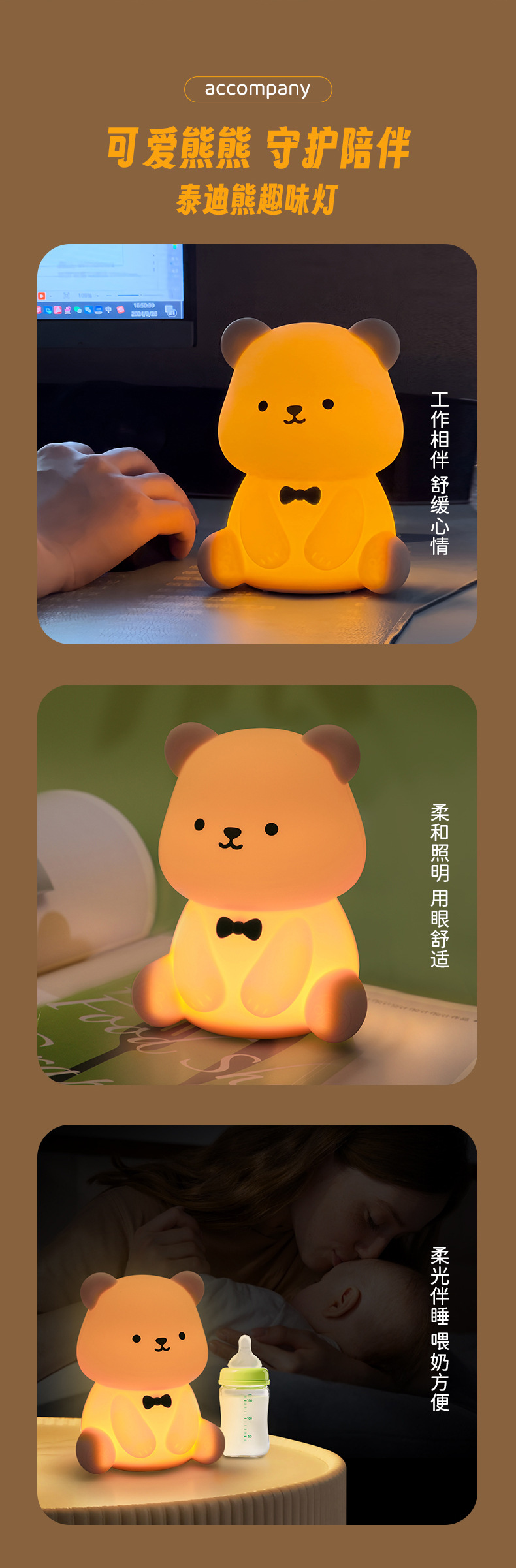 新款泰迪熊趣味灯炫彩拍拍灯床头喂奶灯儿童USB充电夜灯充插两用