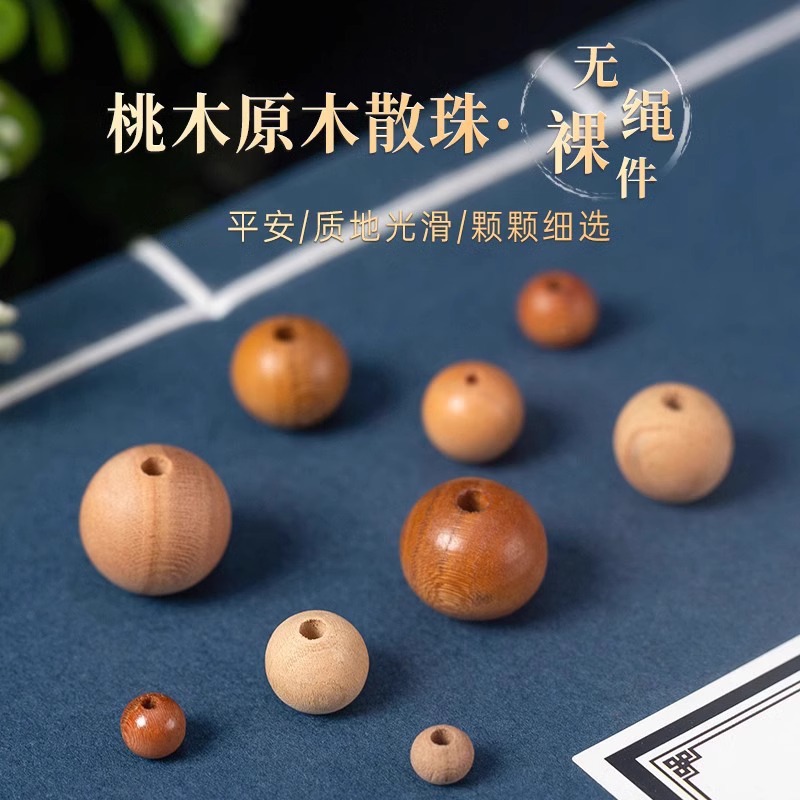天然木珠子批发上漆桃木散珠子手工diy手链串珠配件桃木珠子散批