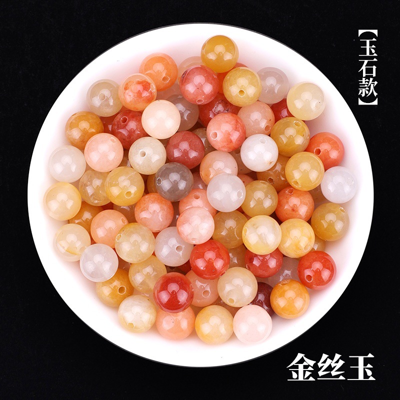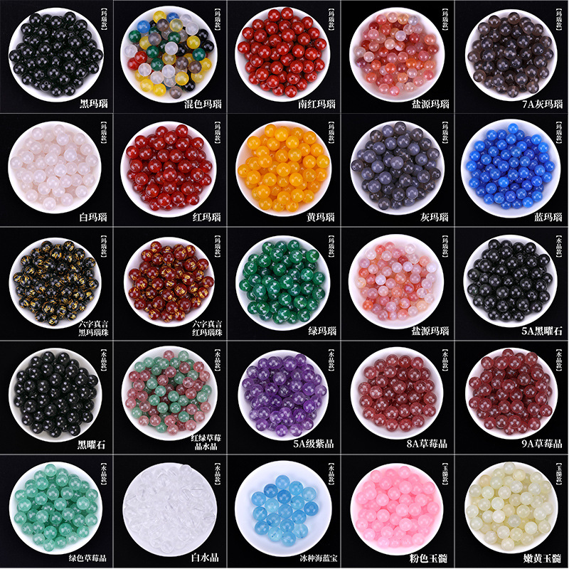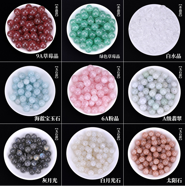 天然玉石翡翠紫水晶海蓝宝di串珠配猫眼石金丝玉散珠玛瑙珠子散批