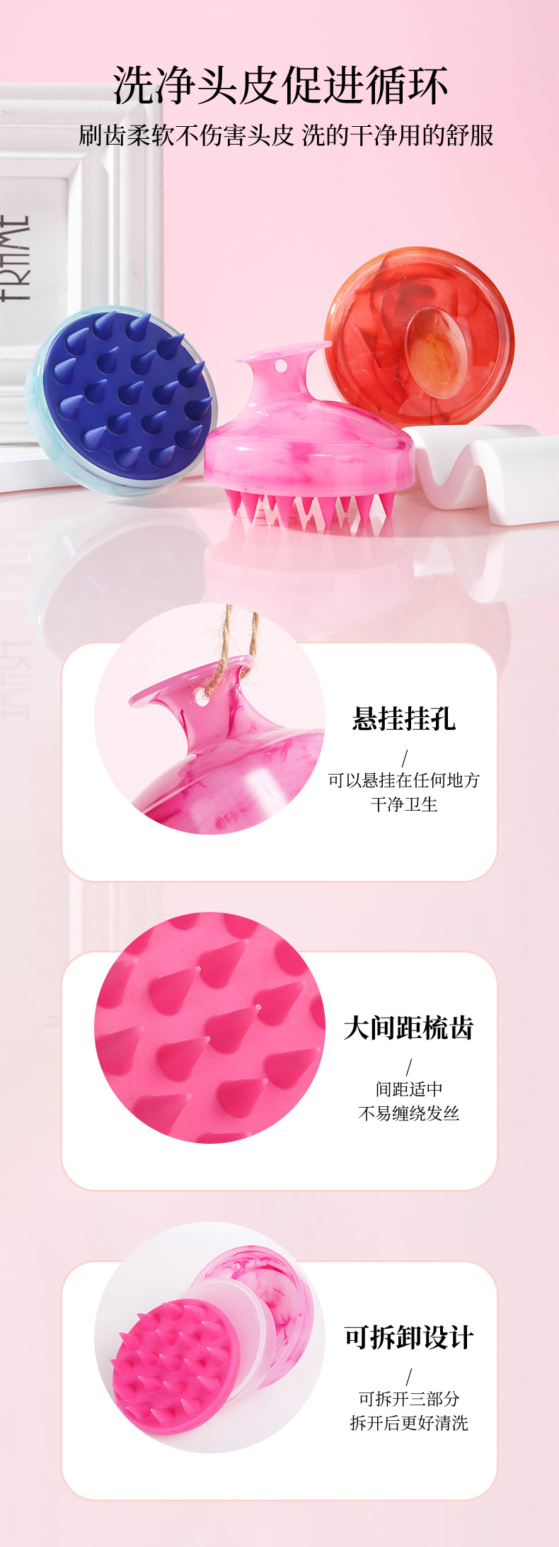 新款清洁头皮头部按摩刷家用洗发梳沐浴梳子美发柔软硅胶洗头刷