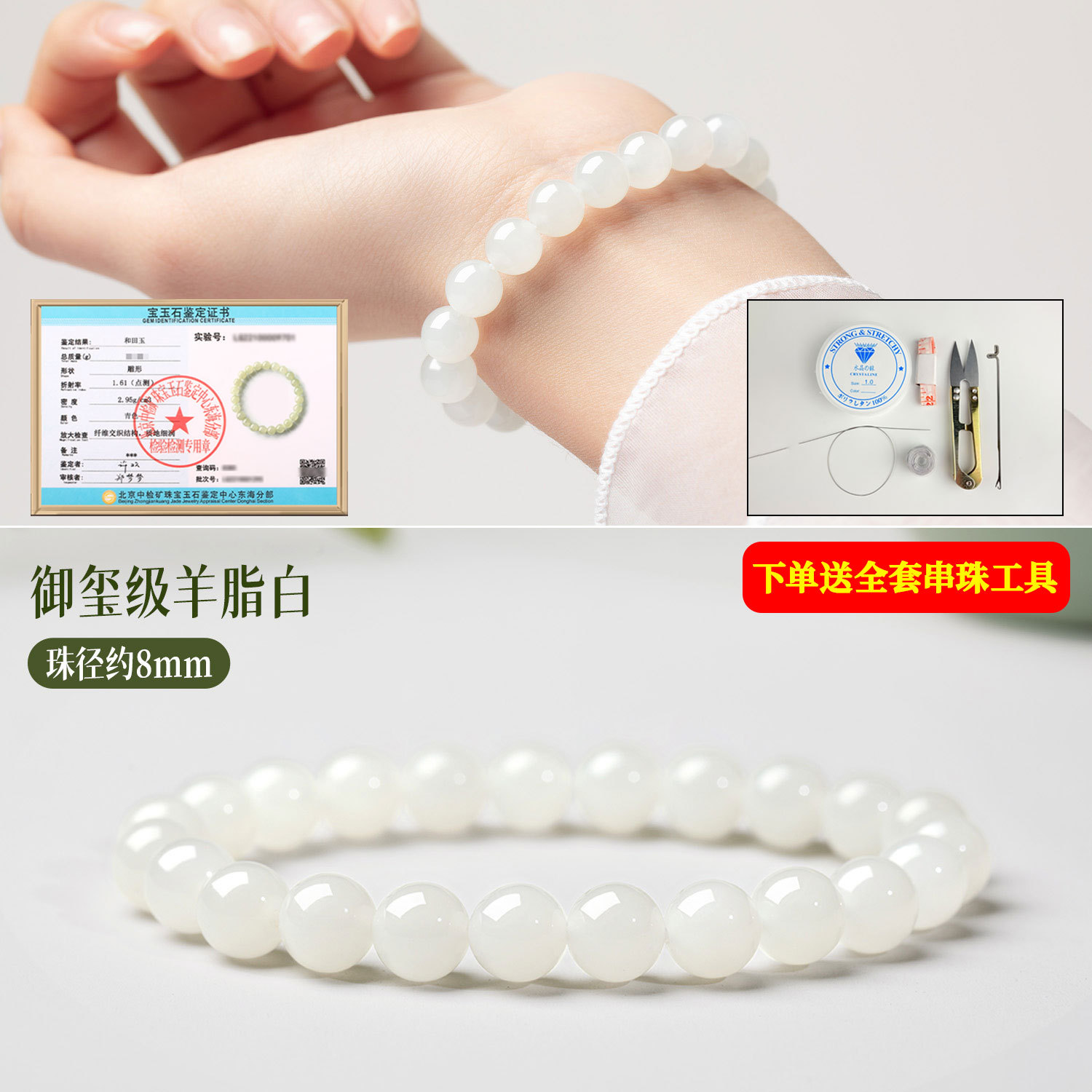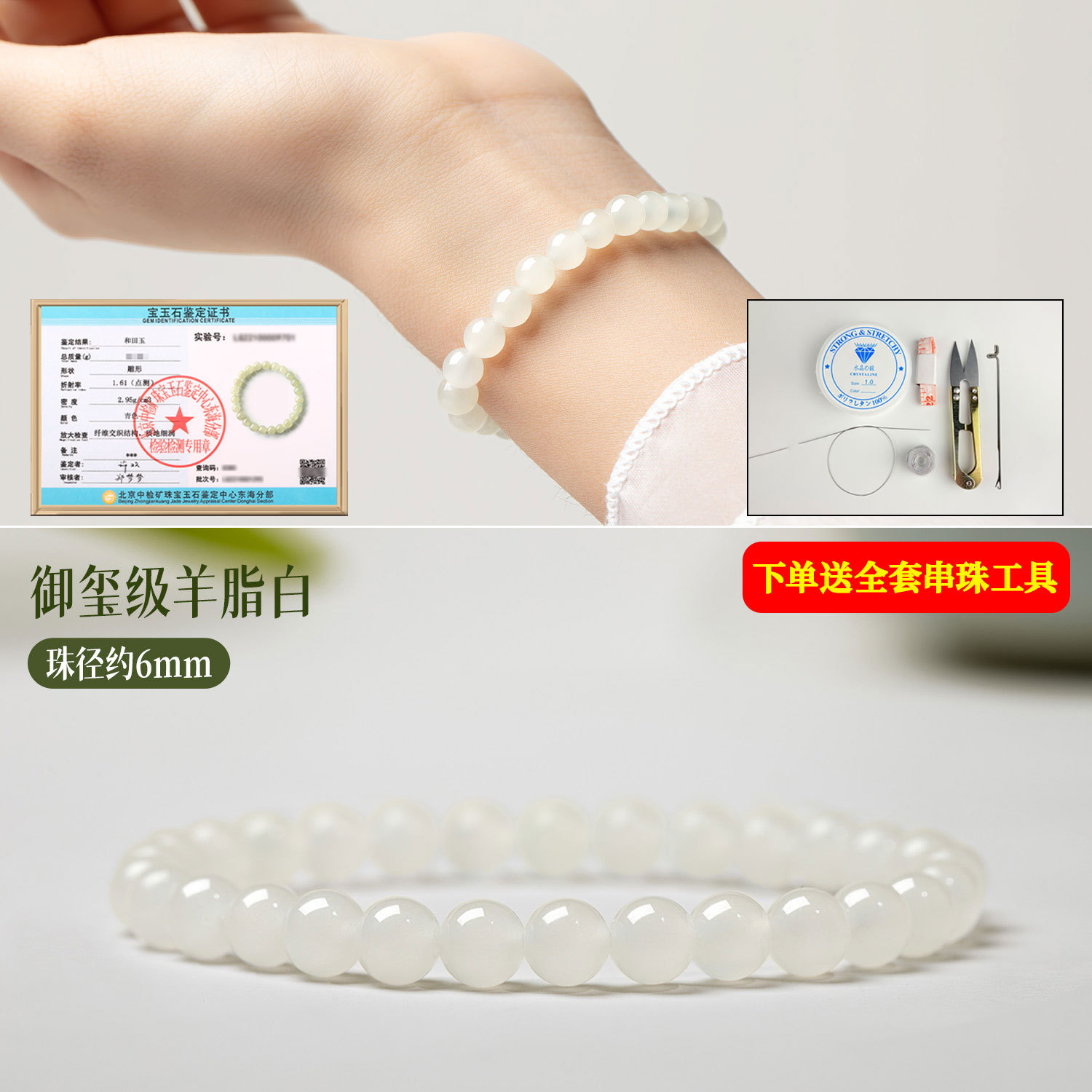 天然和田玉散珠高货晴水珠子真玉手链玉石珠子diy和田玉串珠配珠