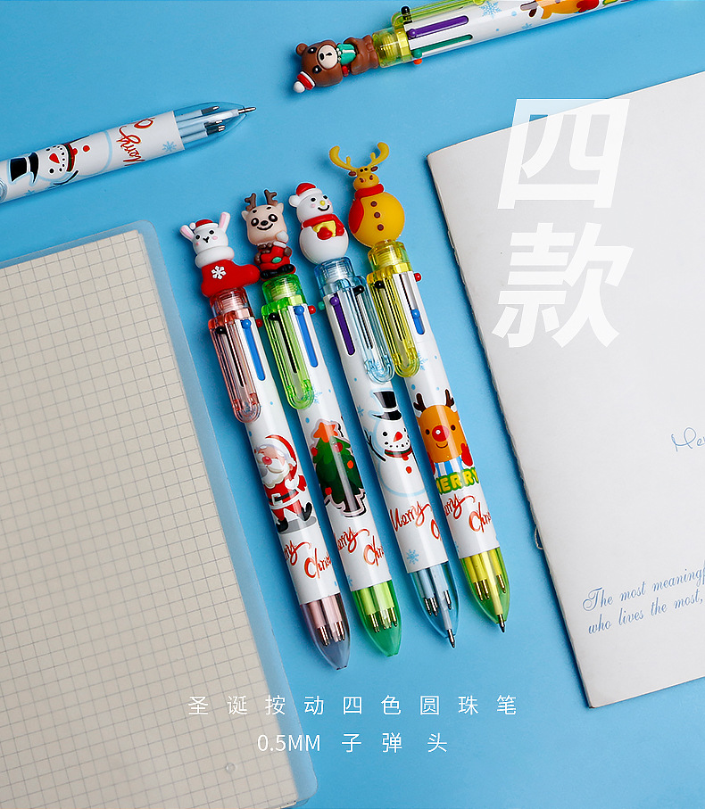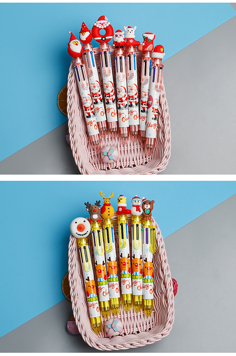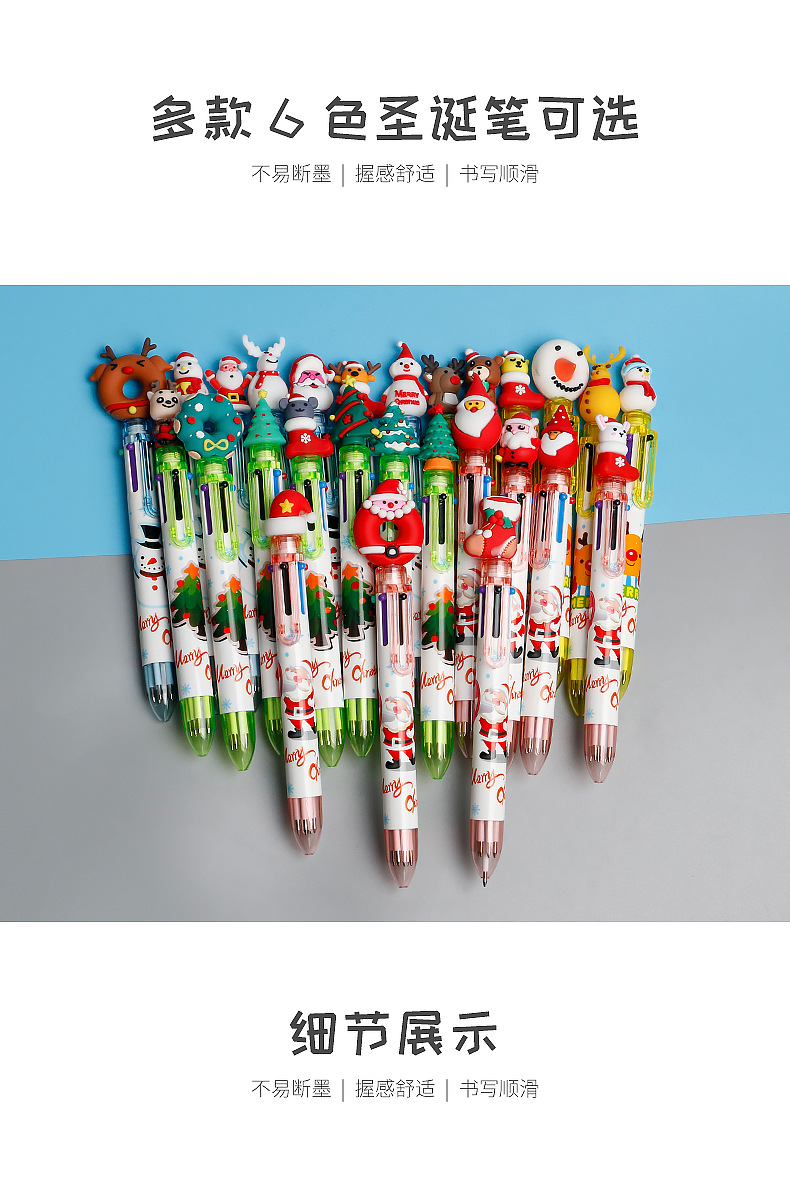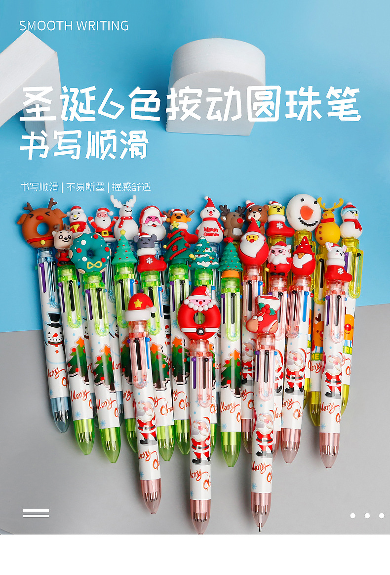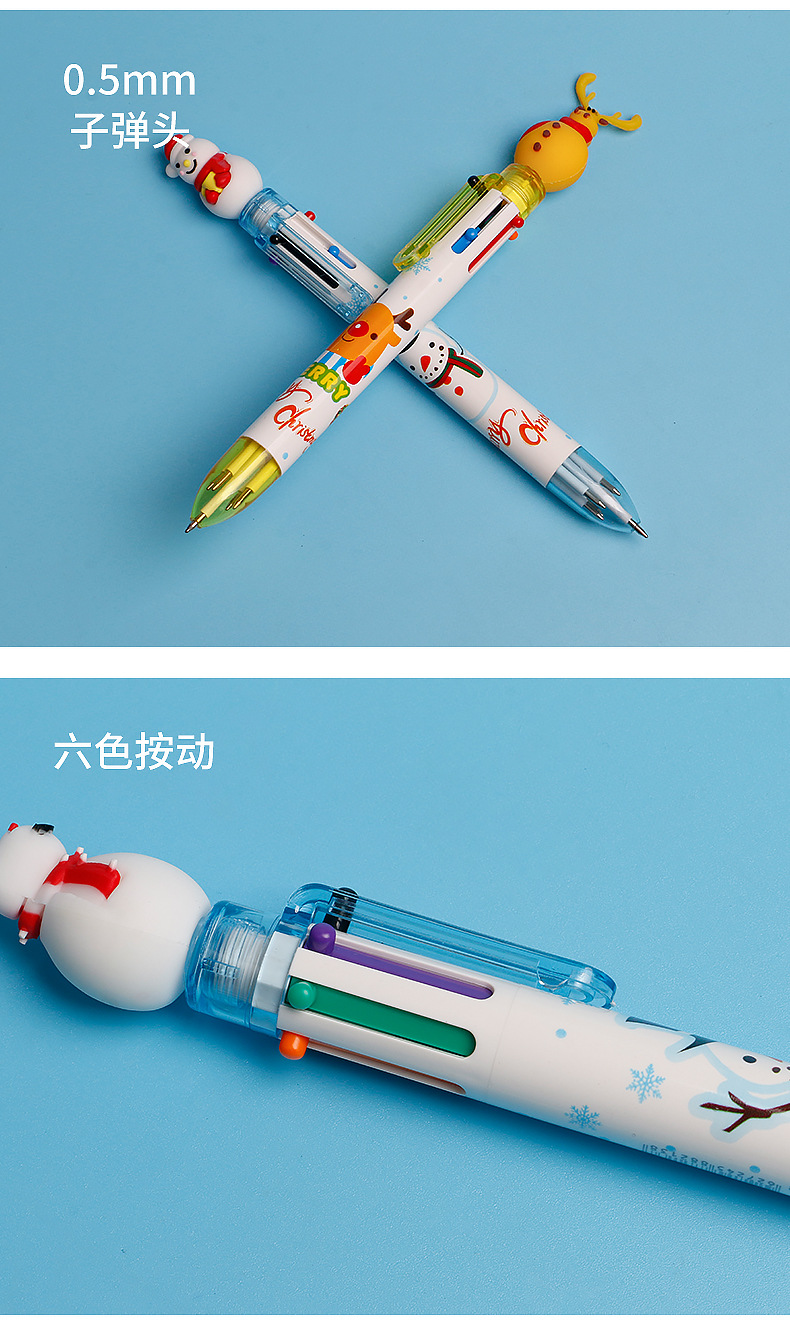 圣诞节日礼品六色笔圣诞笔 圣诞树驯鹿可爱卡通彩色按动圆珠笔