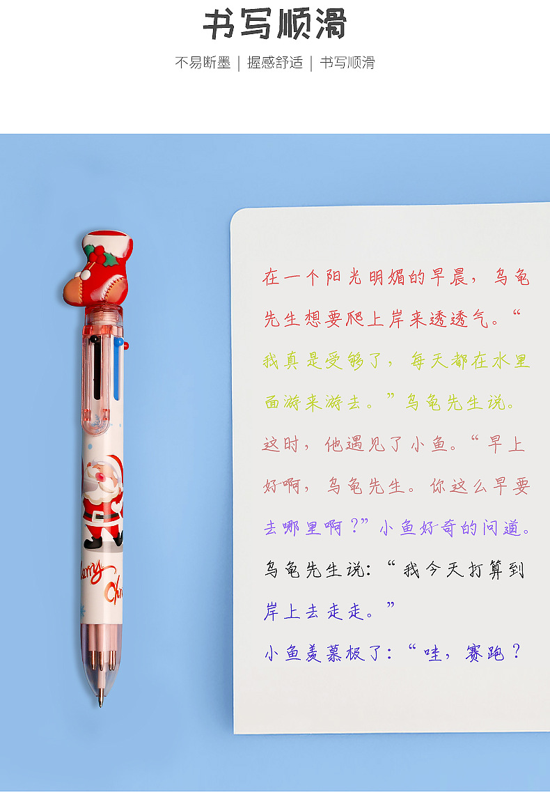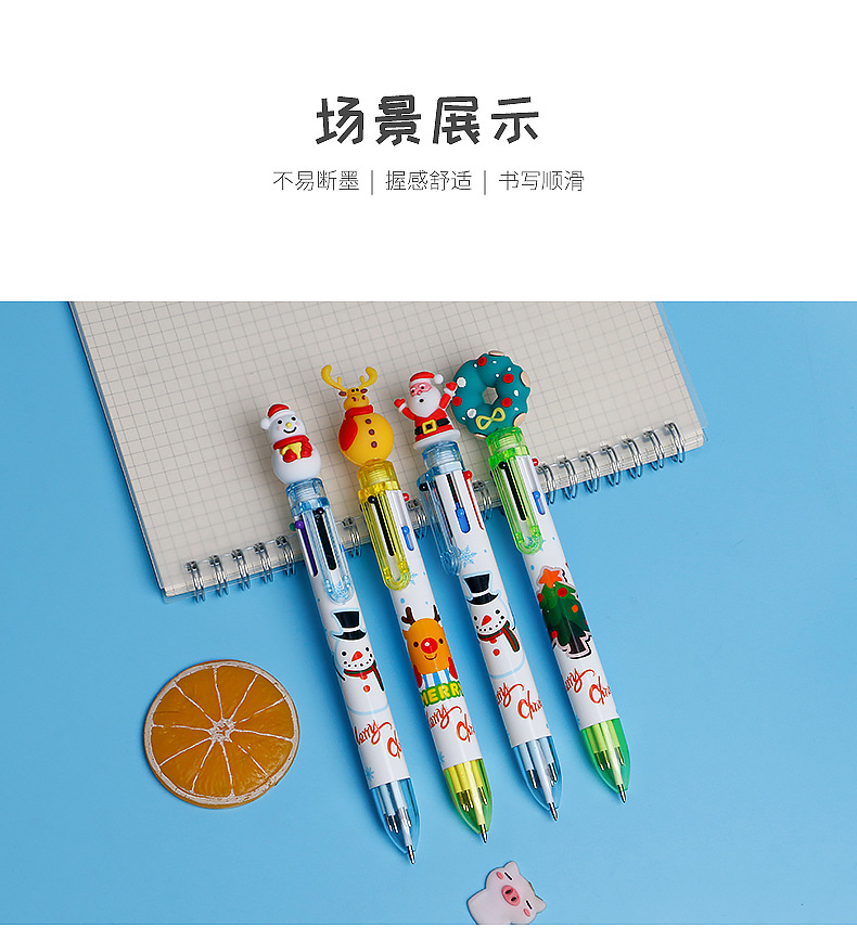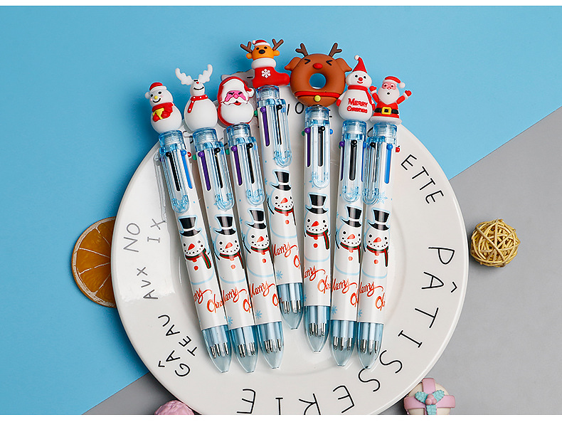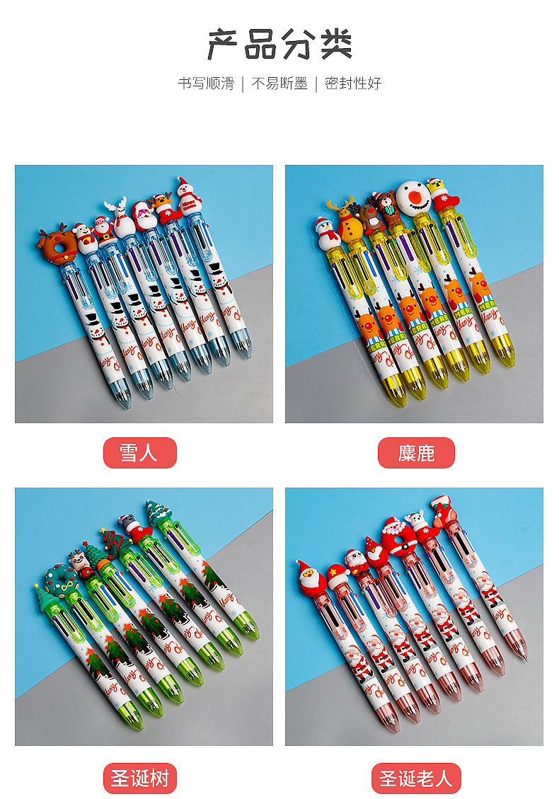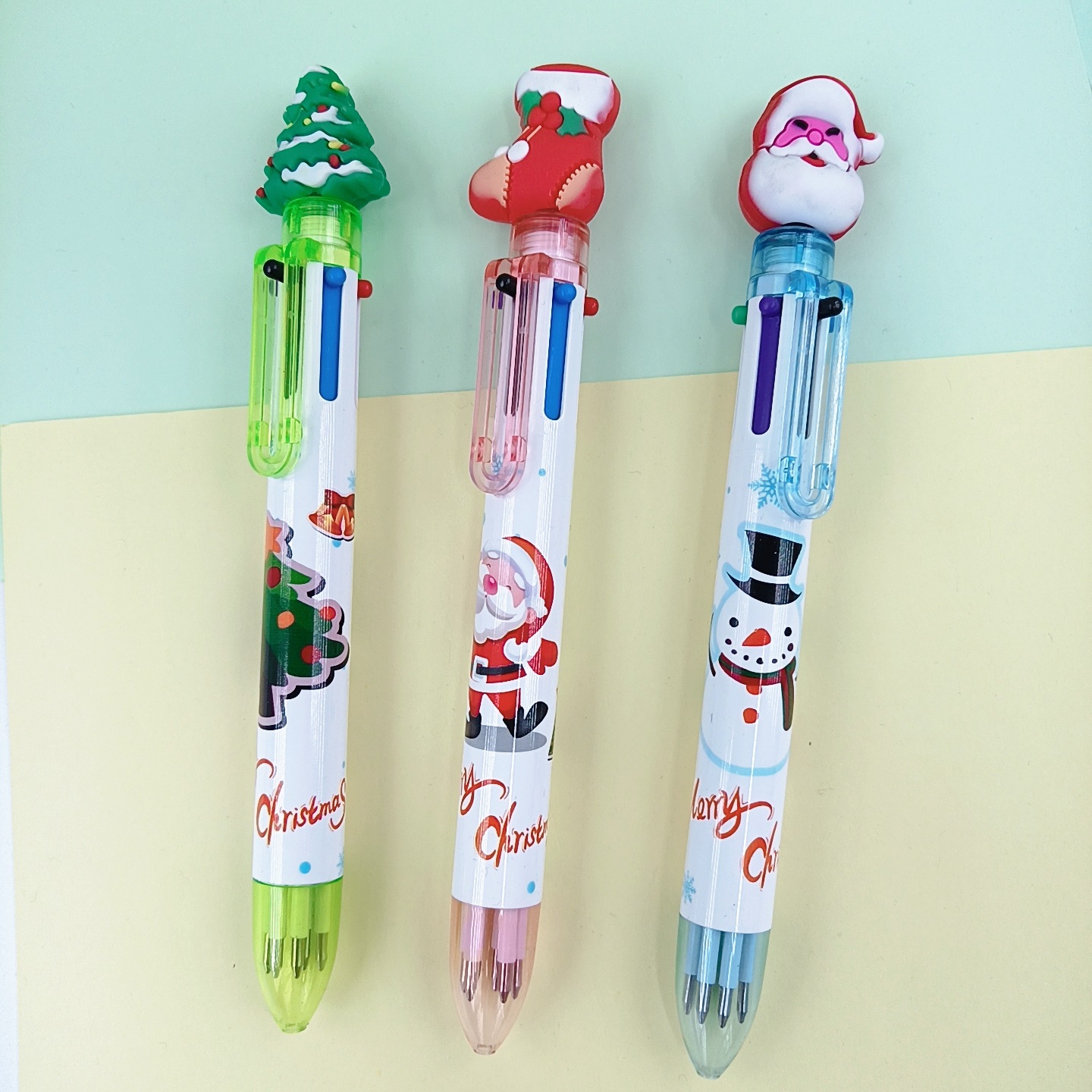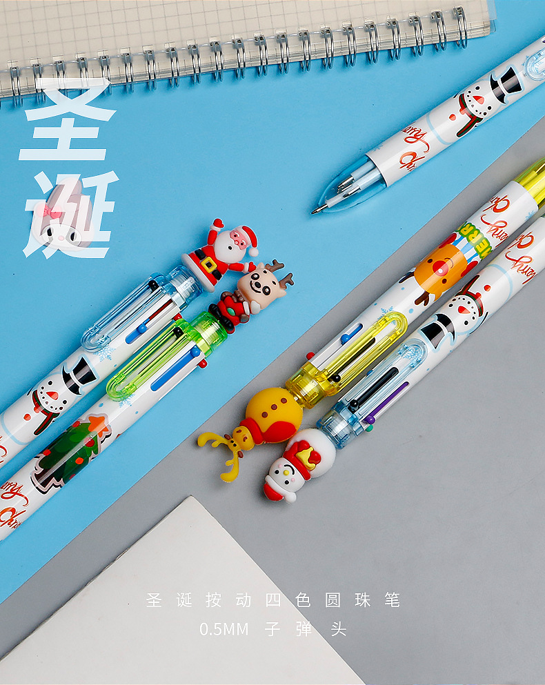 圣诞节日礼品六色笔圣诞笔 圣诞树驯鹿可爱卡通彩色按动圆珠笔