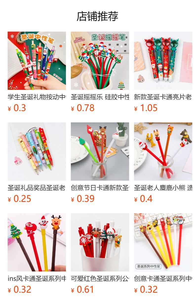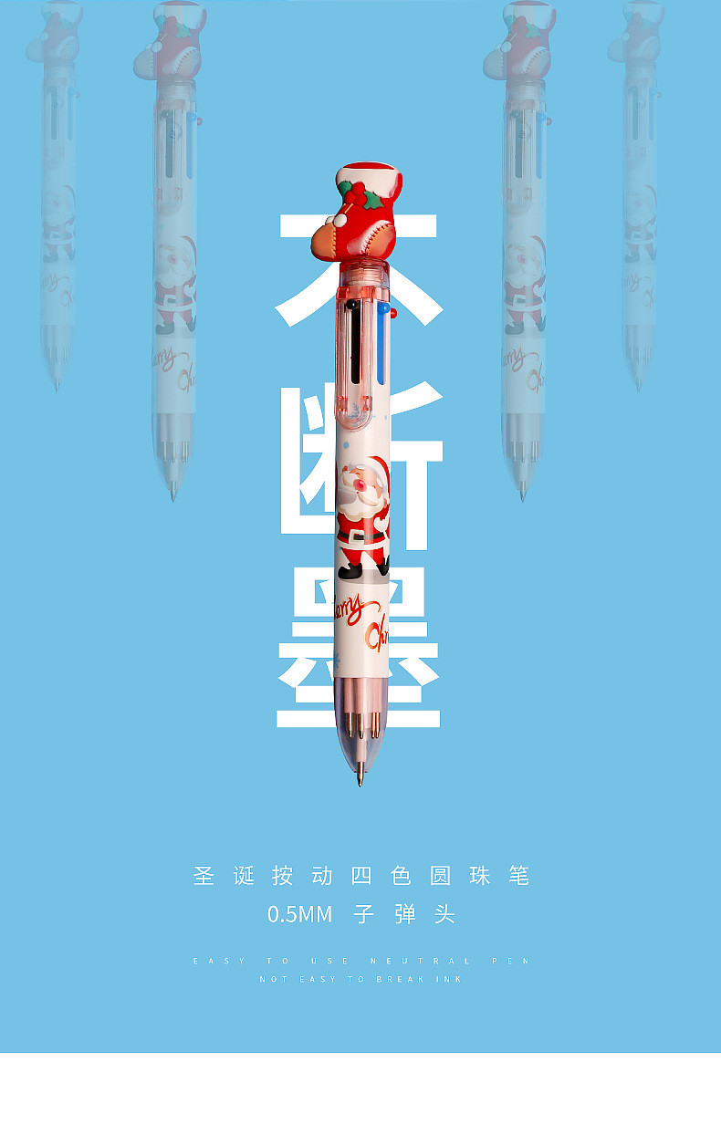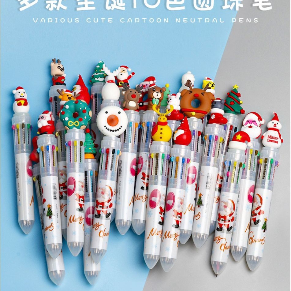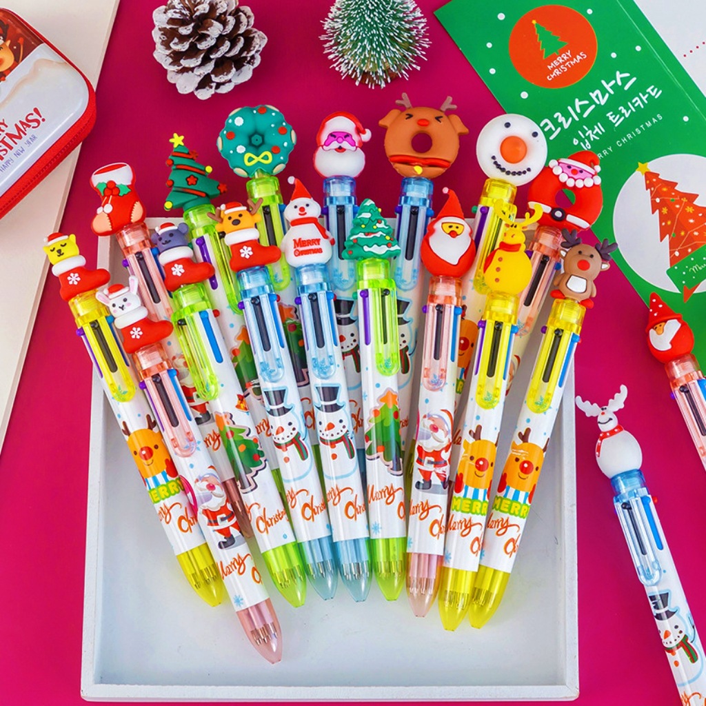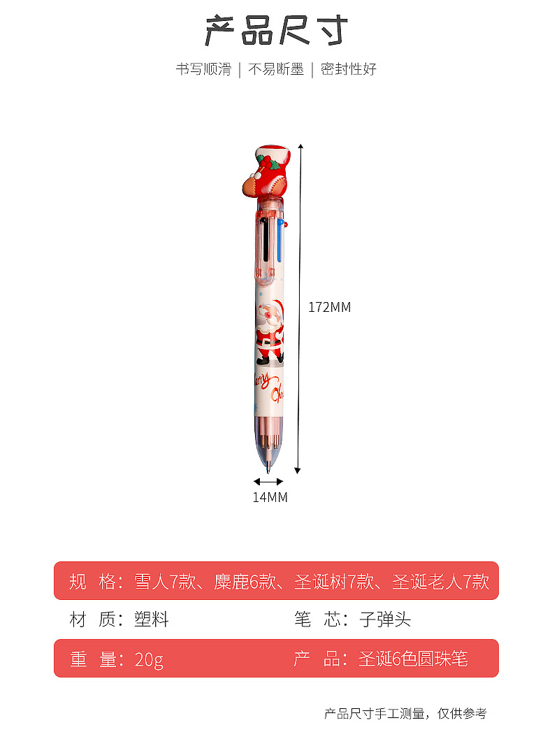 圣诞节日礼品六色笔圣诞笔 圣诞树驯鹿可爱卡通彩色按动圆珠笔