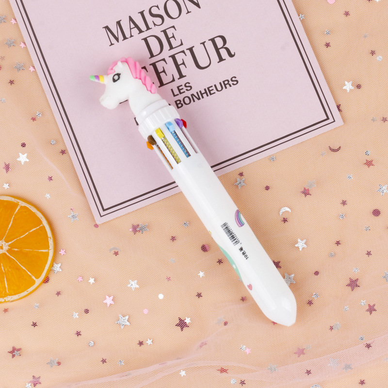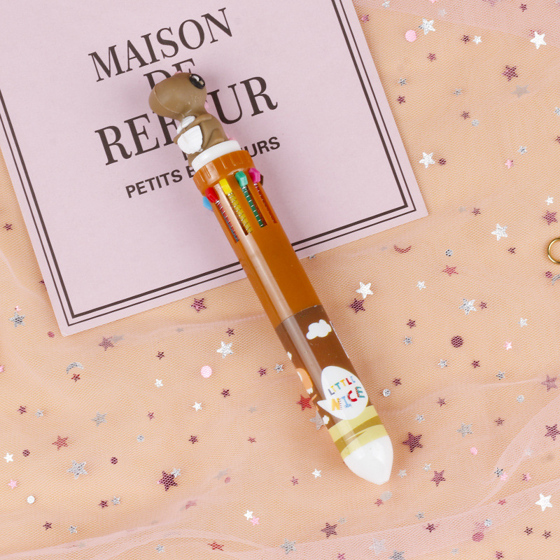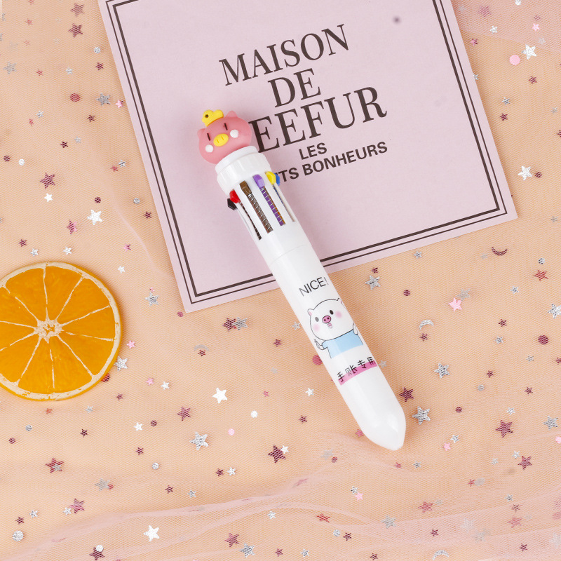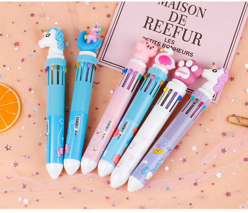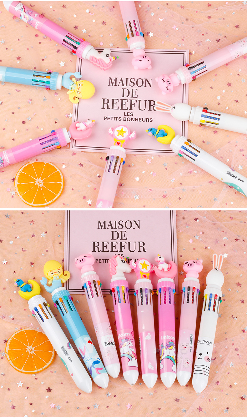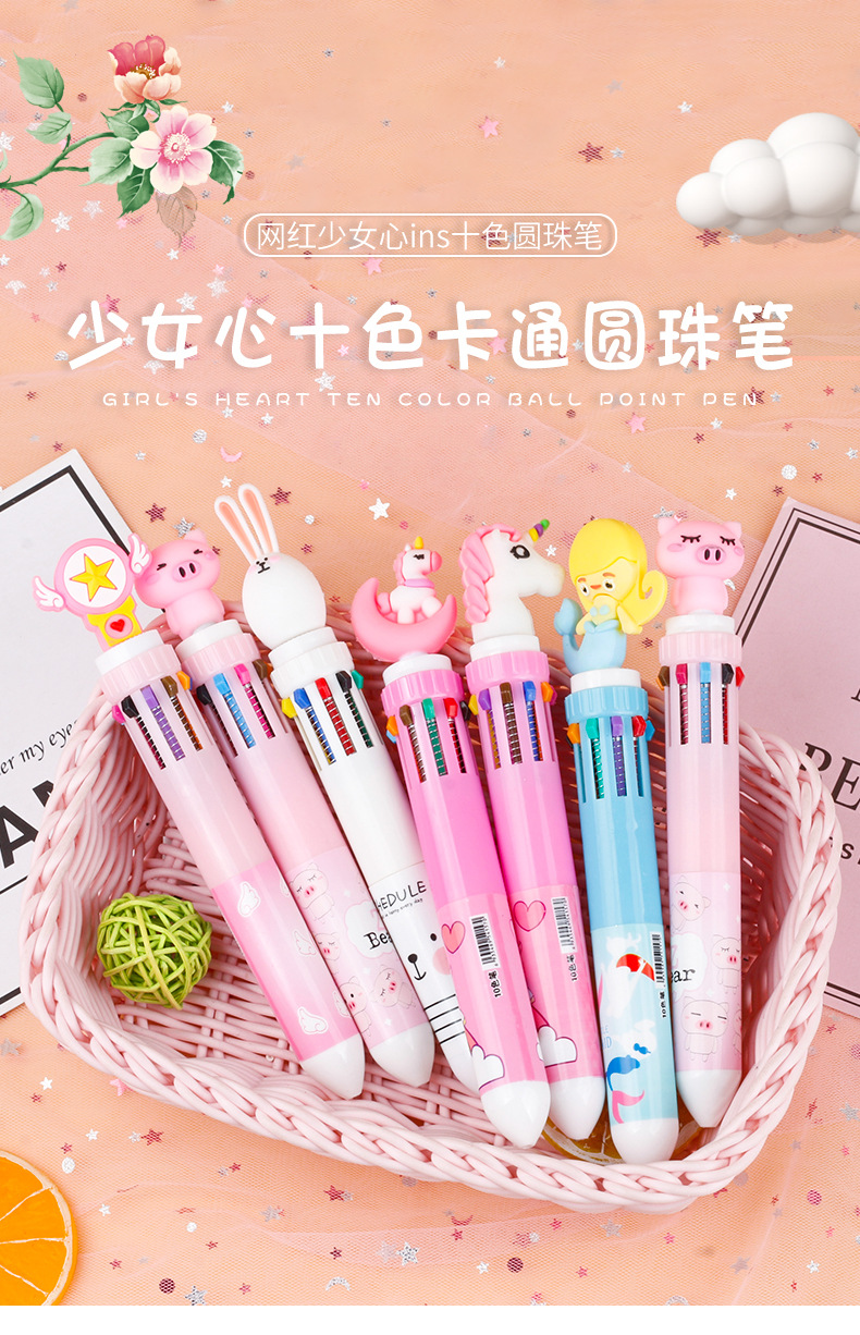 新款少女心创意卡通硅胶10色圆珠笔可爱按动十色圆珠笔学生多色笔