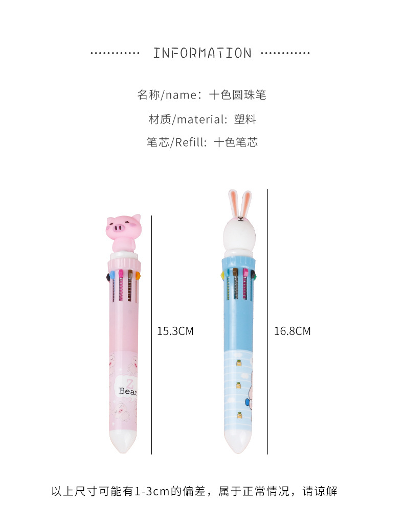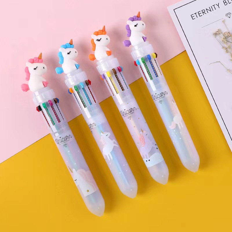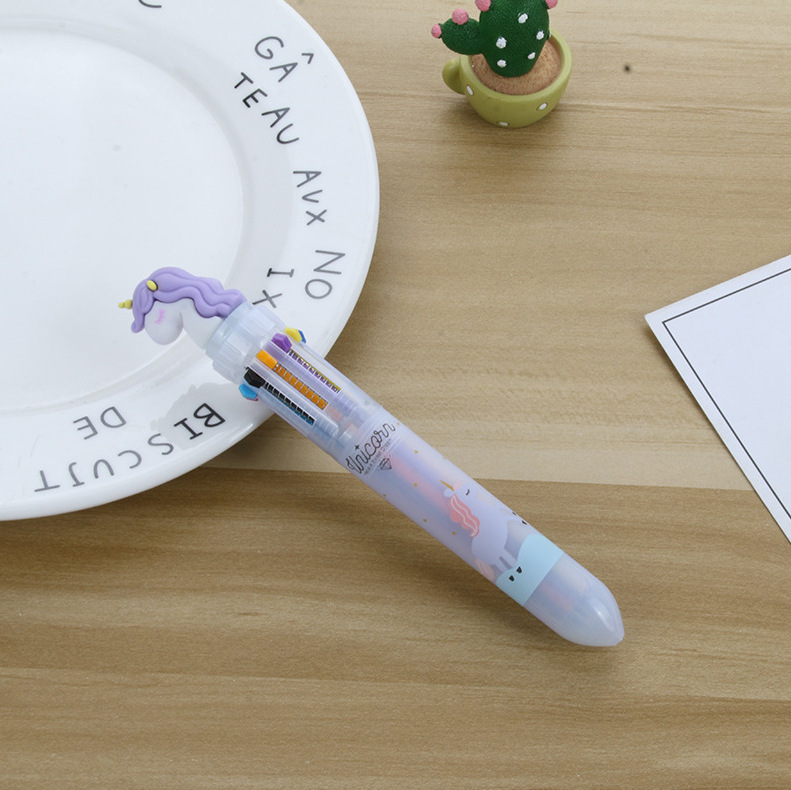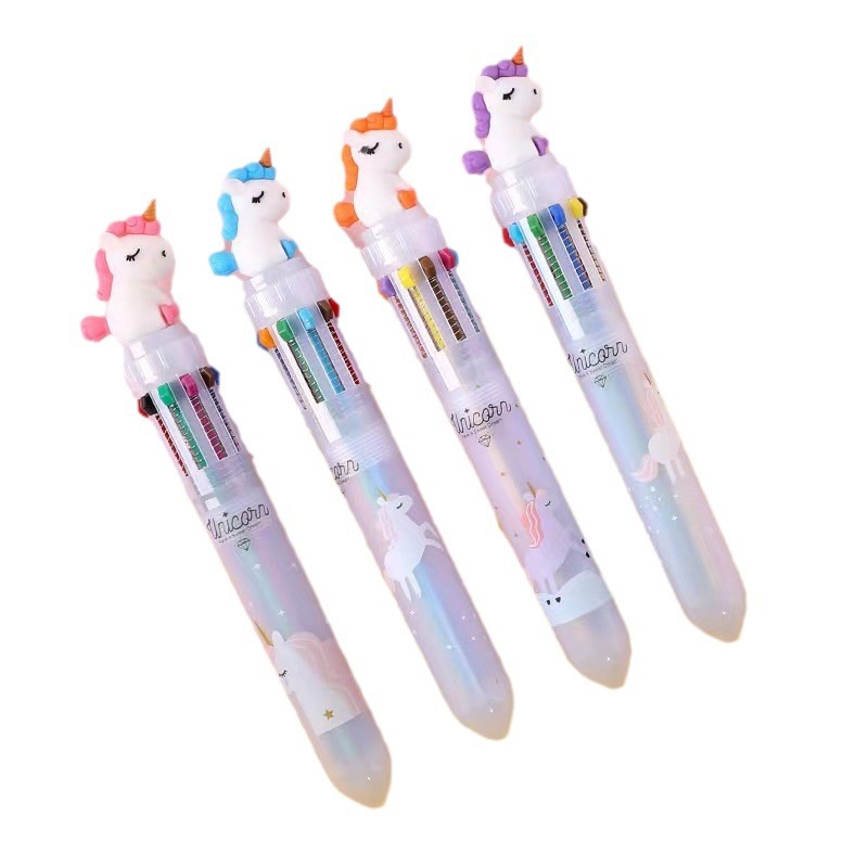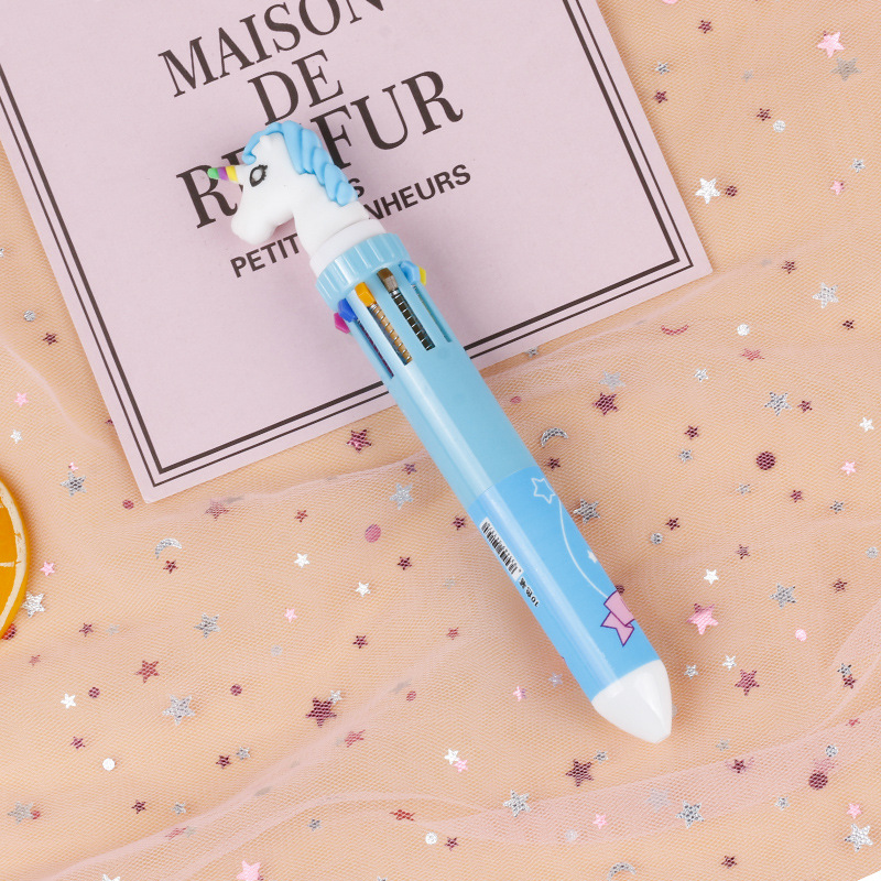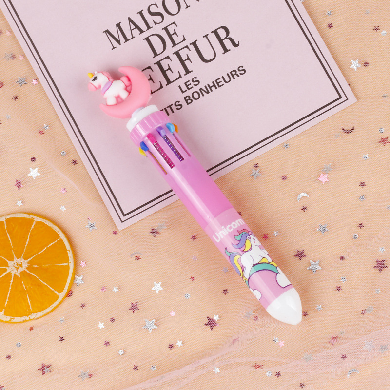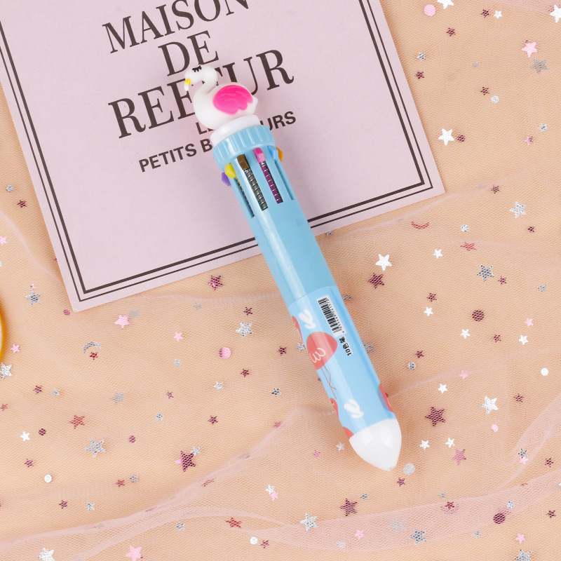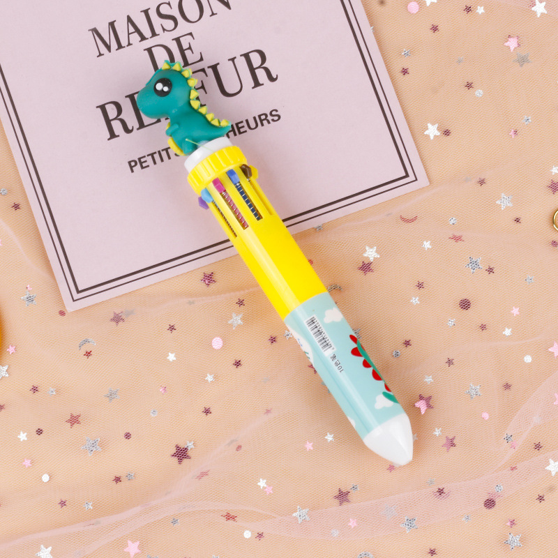 新款少女心创意卡通硅胶10色圆珠笔可爱按动十色圆珠笔学生多色笔