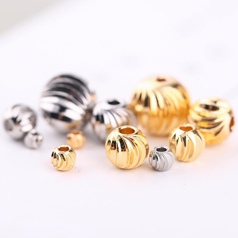 纯铜镀真金不褪色异形圆珠 大孔螺旋纹扭纹珠子散珠串珠隔珠批发