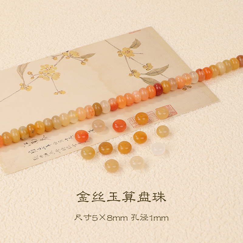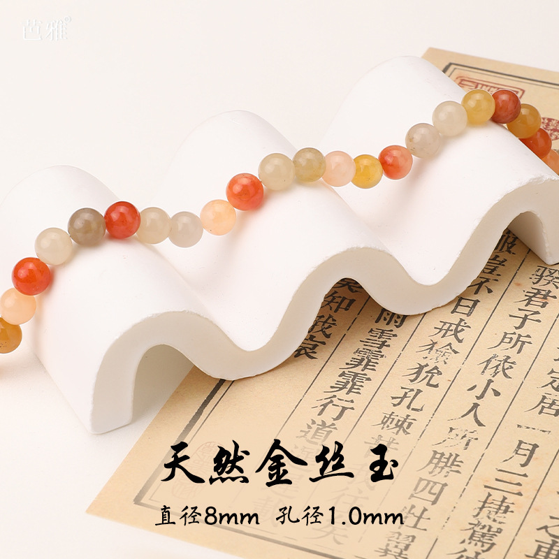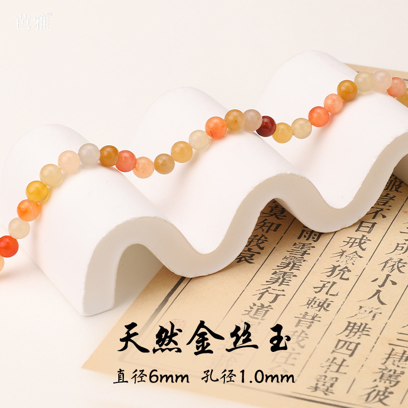 天然金丝玉散珠散批手工diy手链项链配饰玉石散珠子串珠材料批发