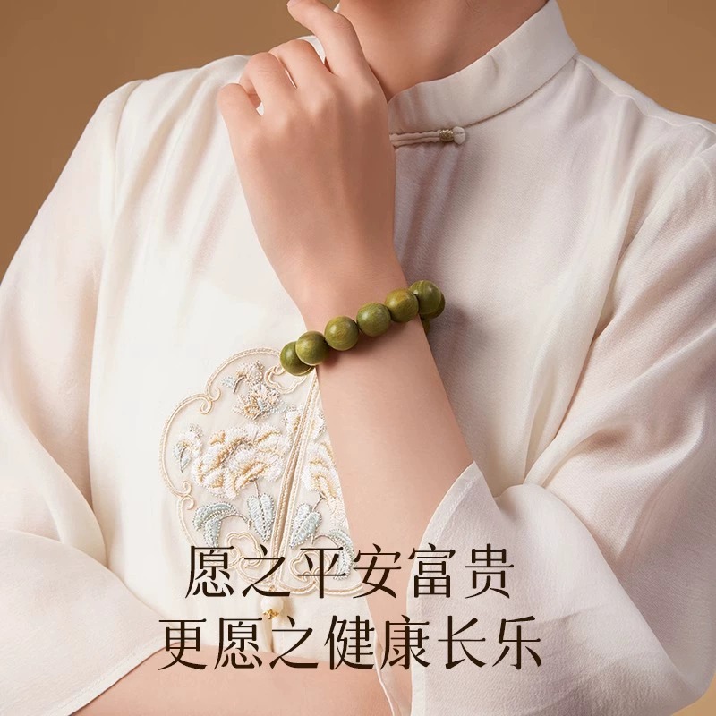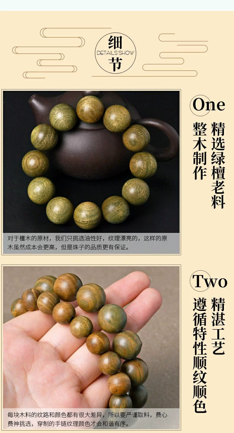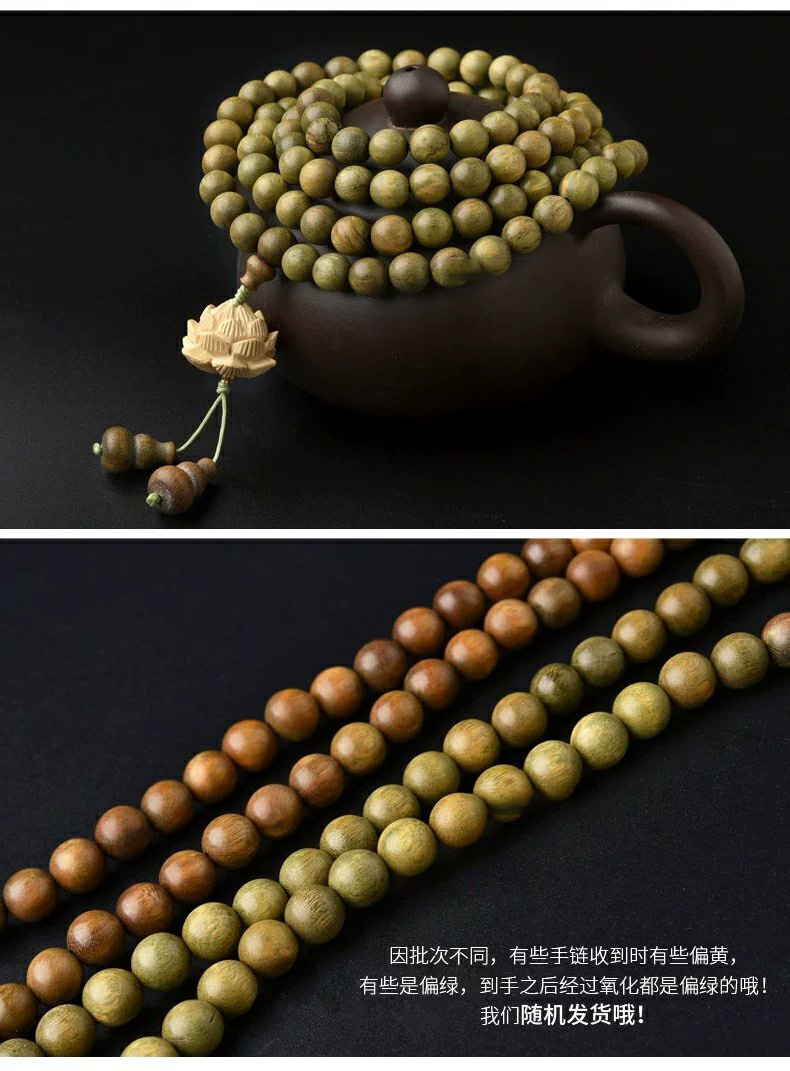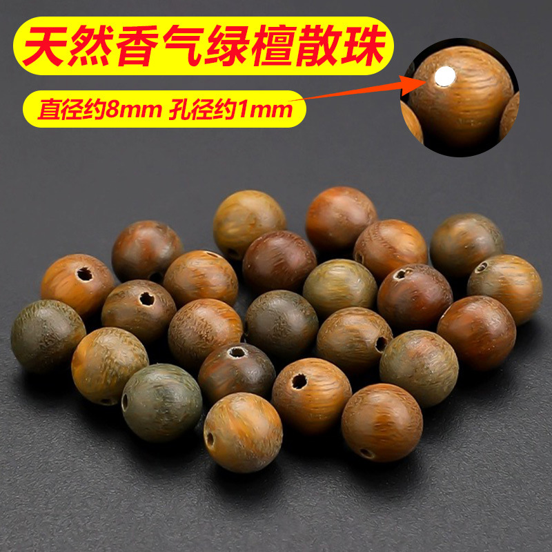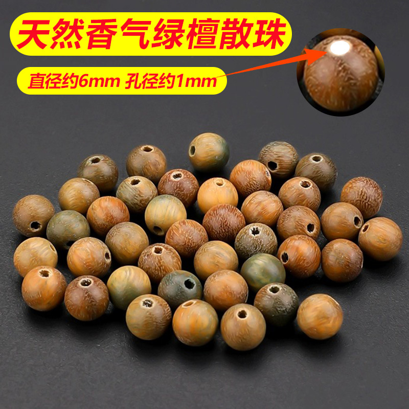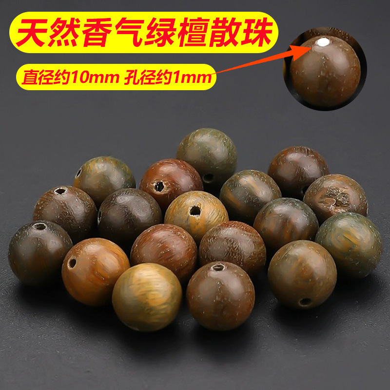 天然绿檀木散珠沉水级木质圆珠手工DIY配珠佛珠文玩檀木珠子批发