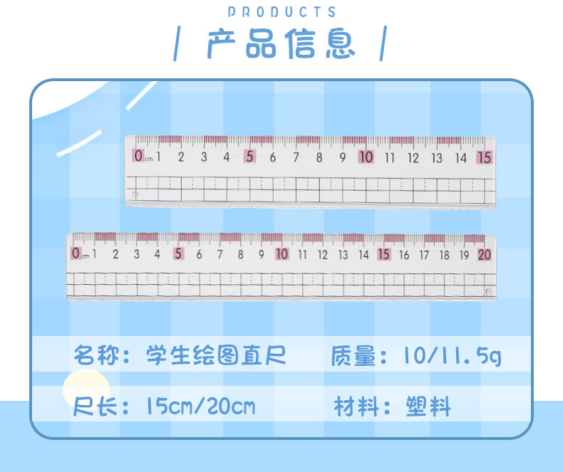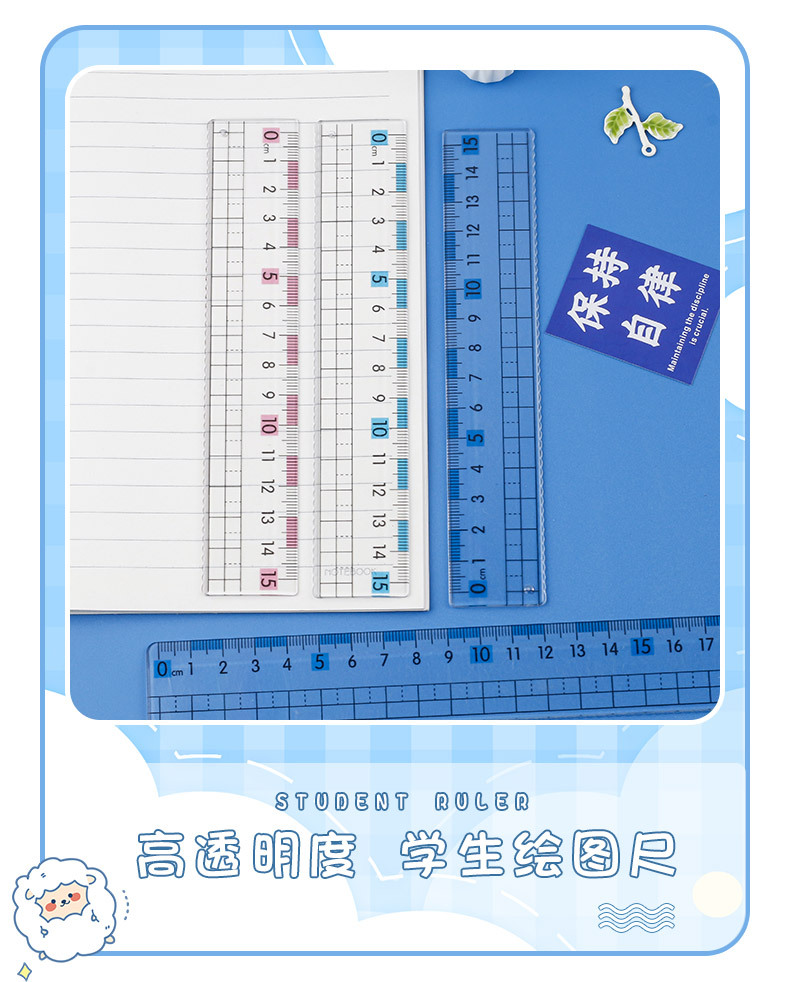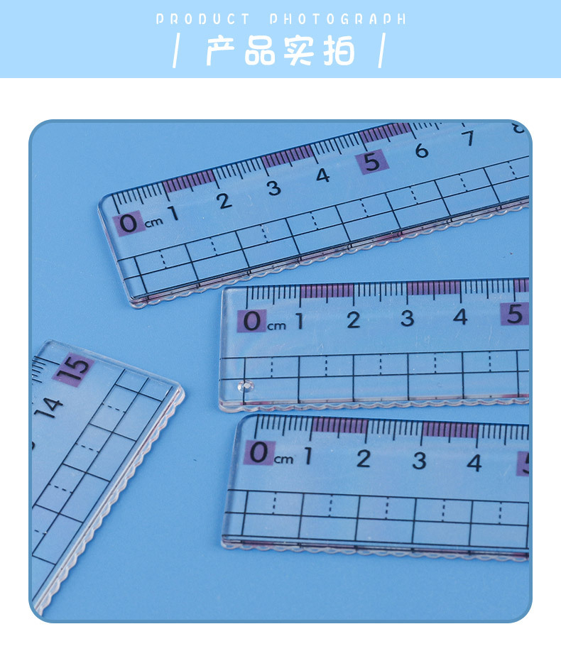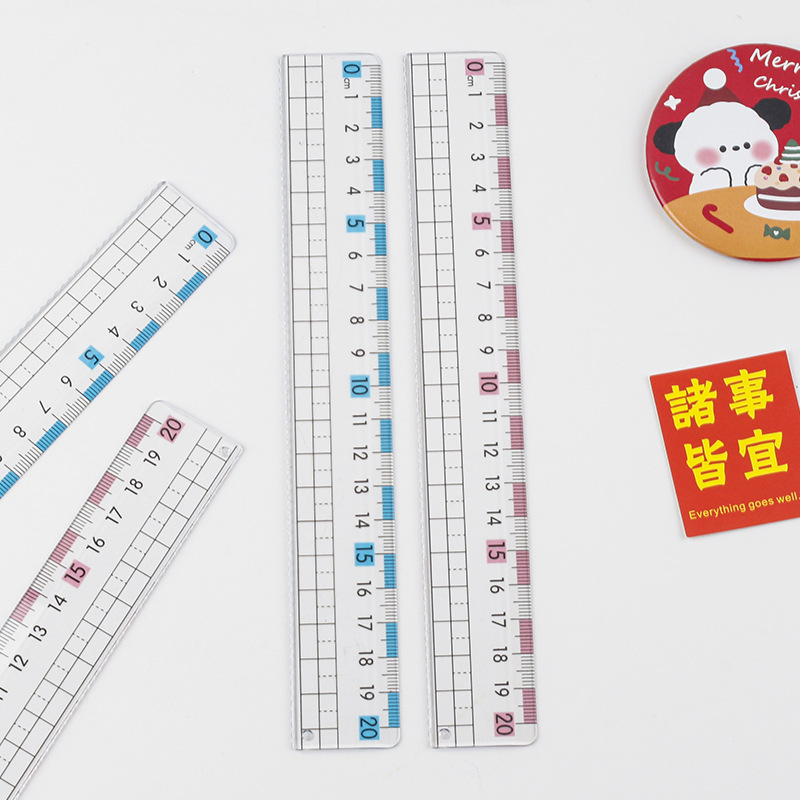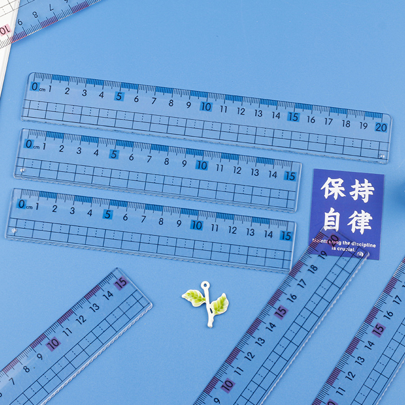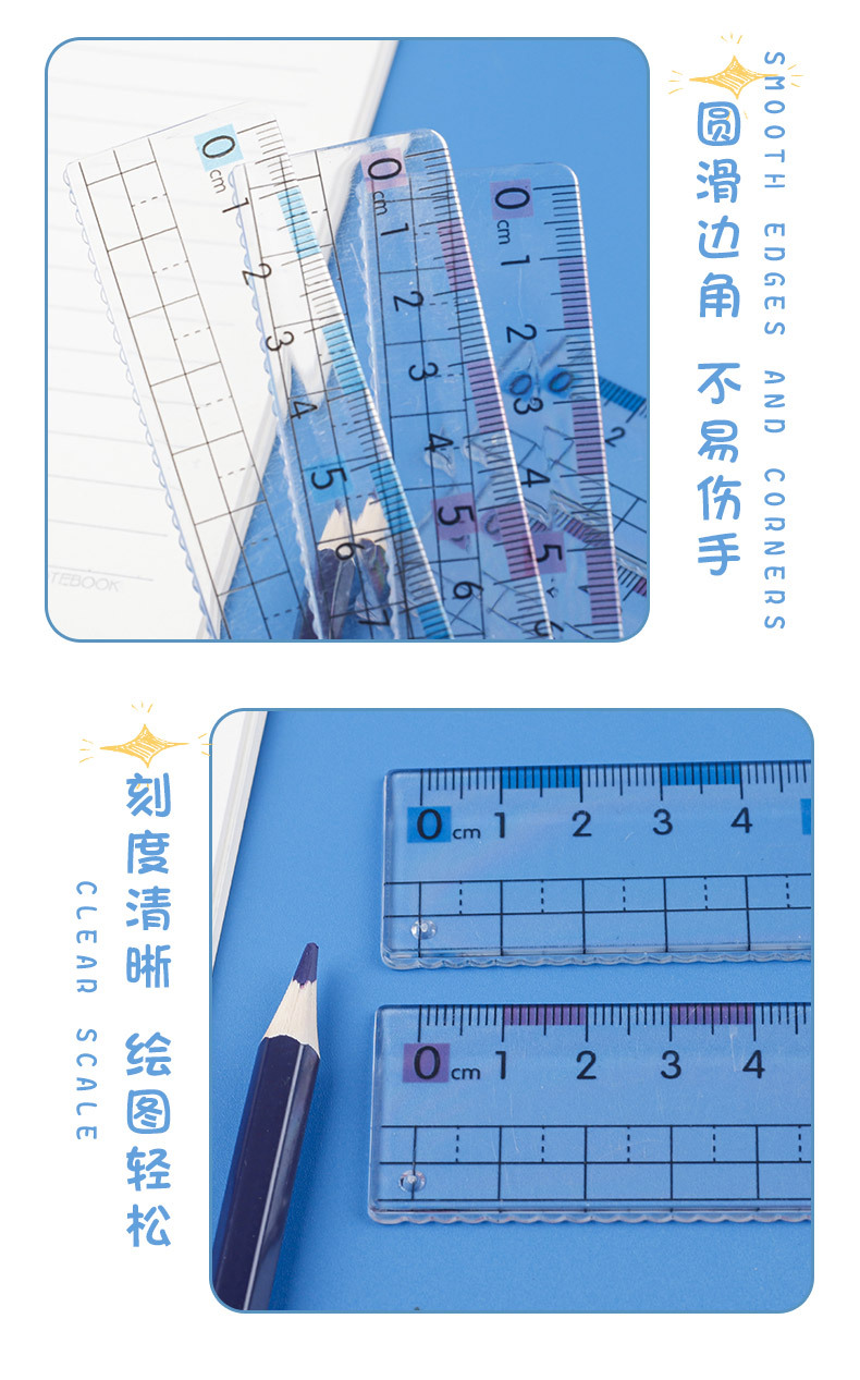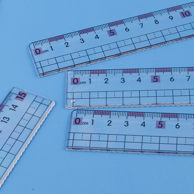 厂家热销尺子近视直尺带波浪线小学生20cm15cm大数字刻度透明格尺