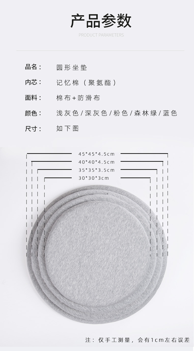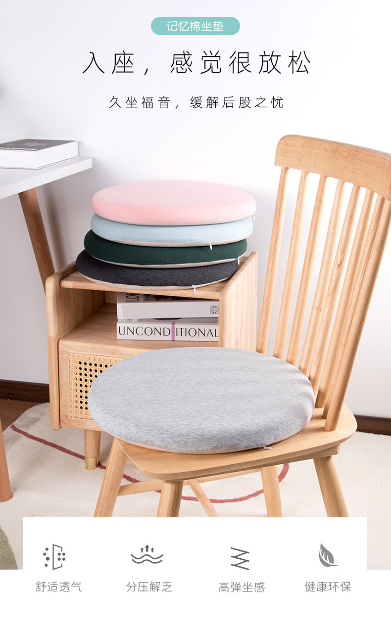 纯色记忆棉屁股垫圆形餐椅坐垫海绵大号椅垫日式座垫凳子久坐不累