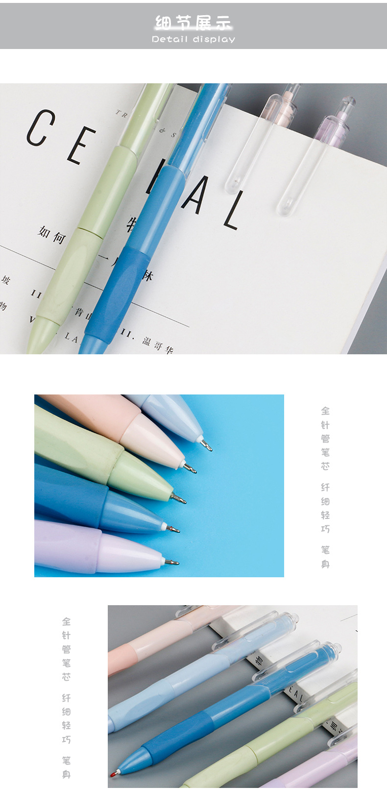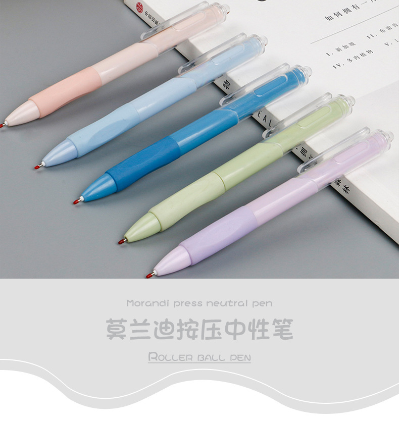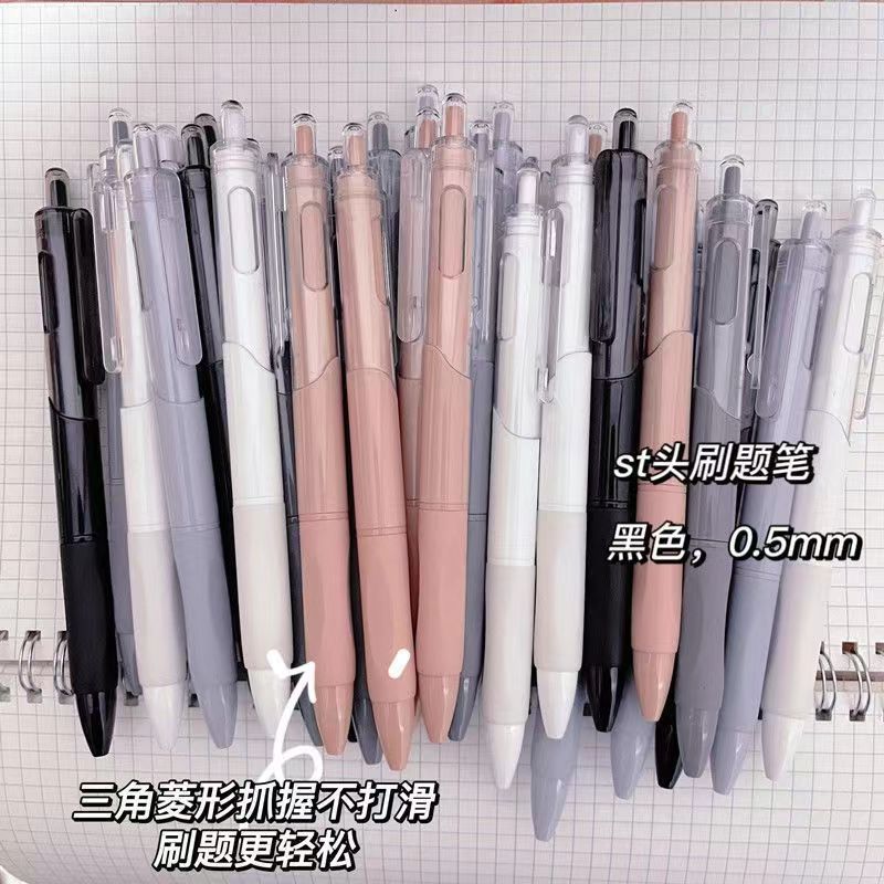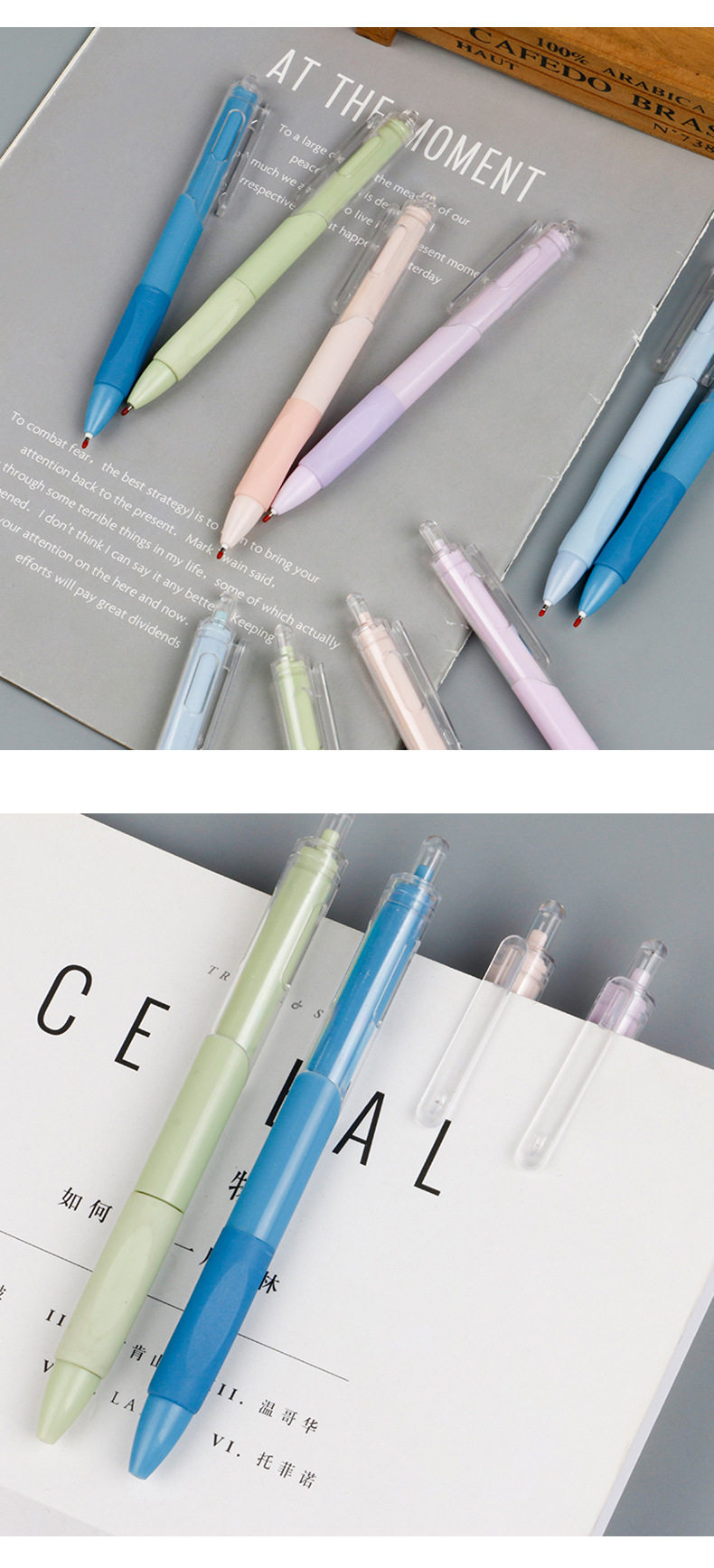 莫兰迪色系按动中性笔 简约糖果色护套按动黑色水笔高颜值刷题笔
