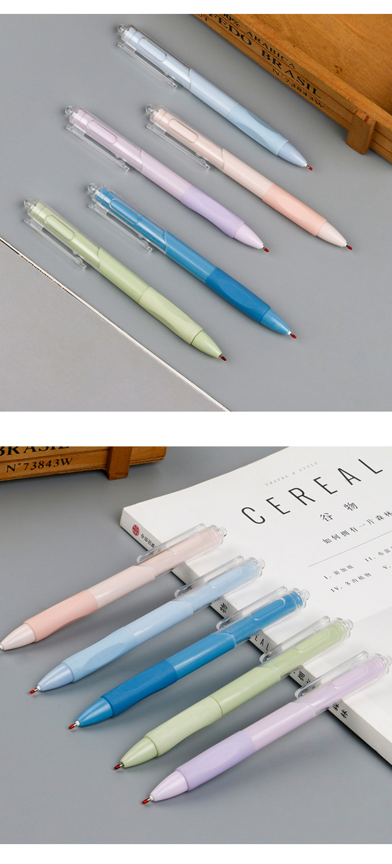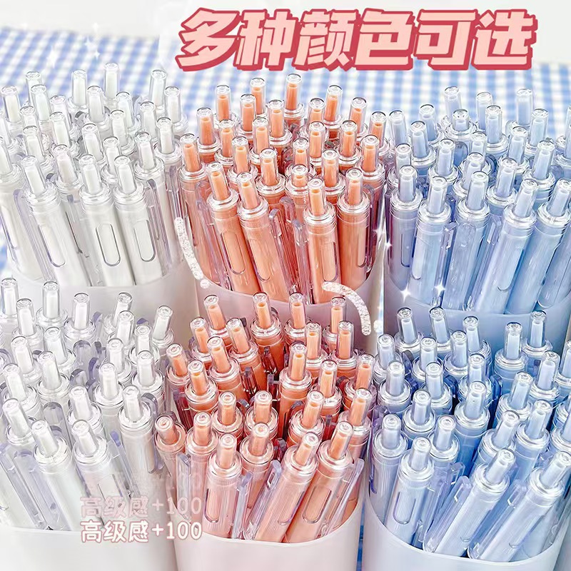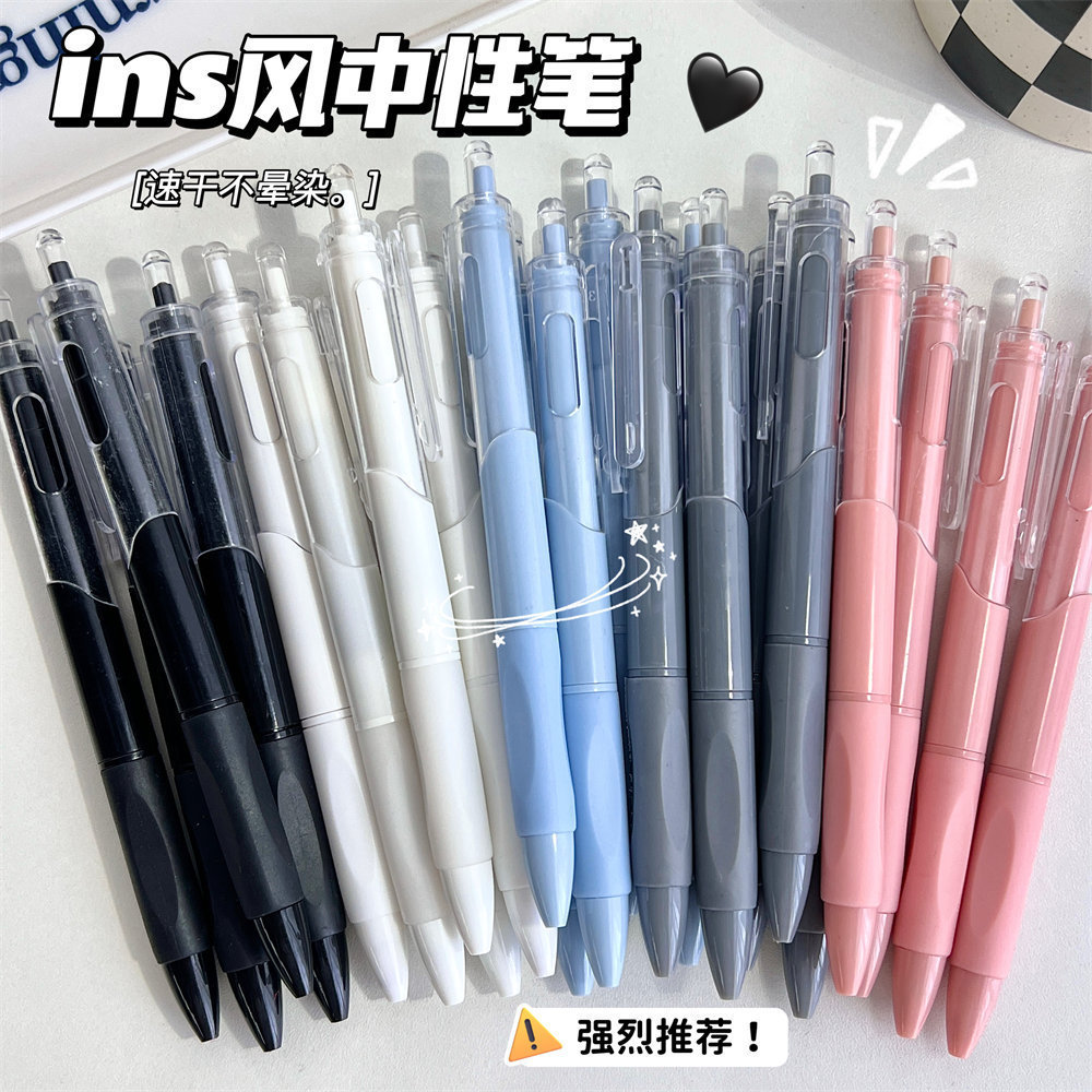莫兰迪色系按动中性笔 简约糖果色护套按动黑色水笔高颜值刷题笔