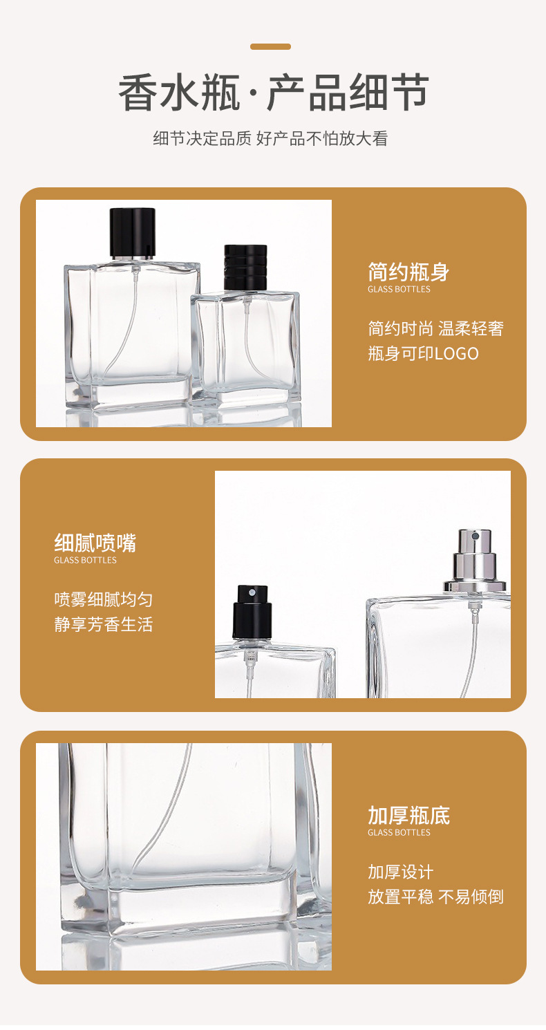 工厂现货50ML高级感时尚透明香水玻璃分装瓶空瓶便携按压喷雾瓶