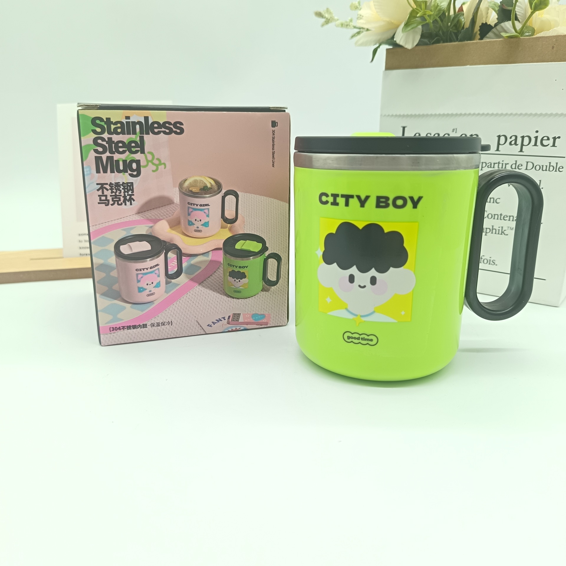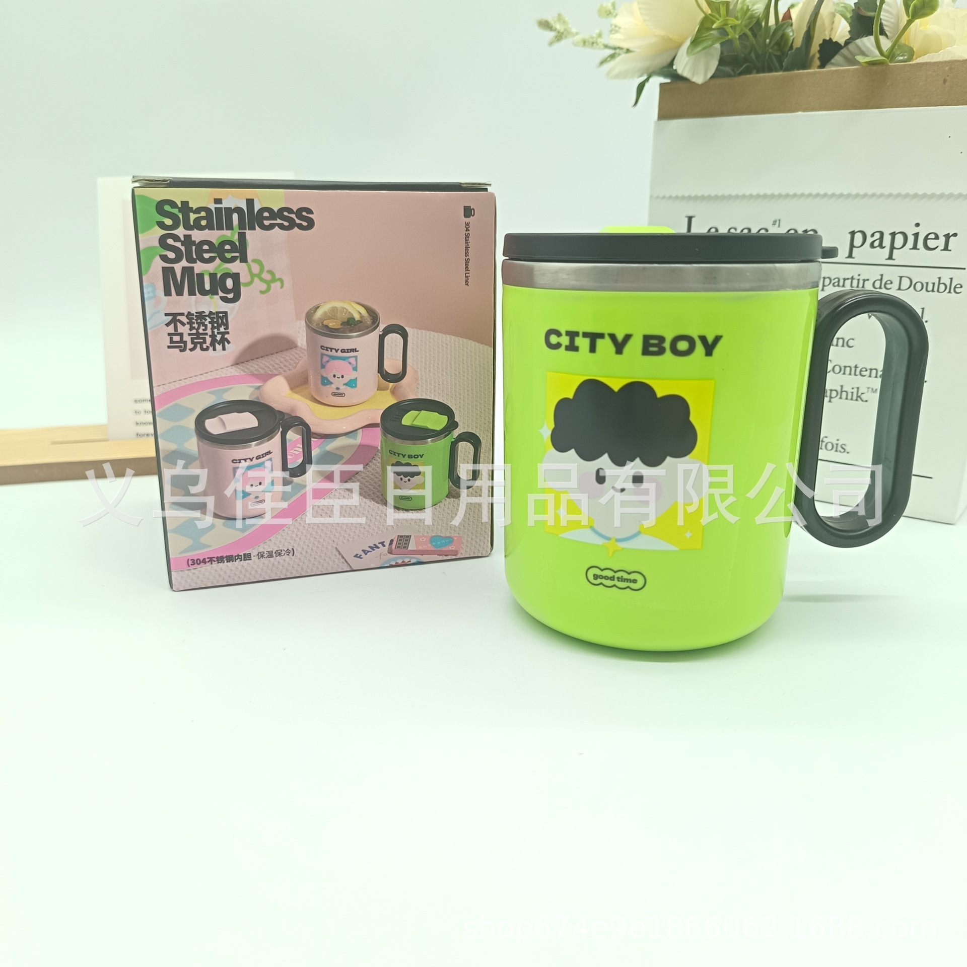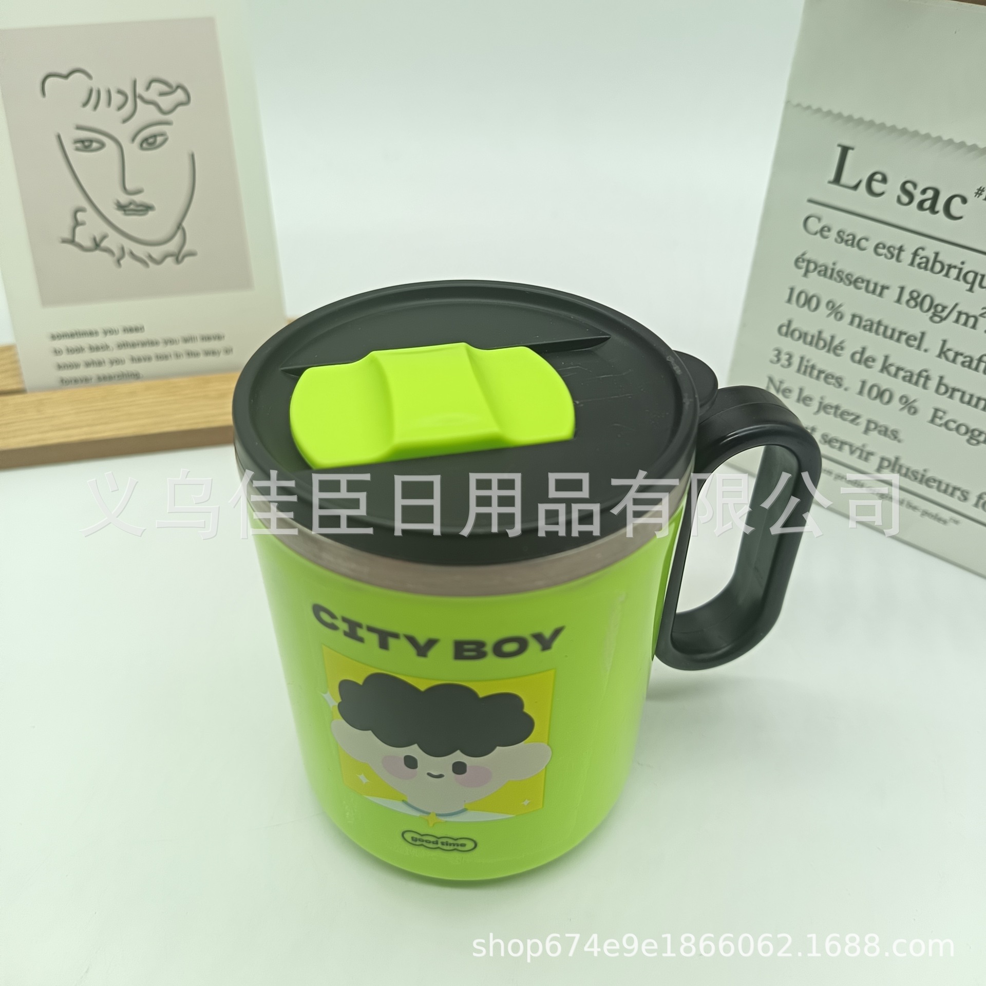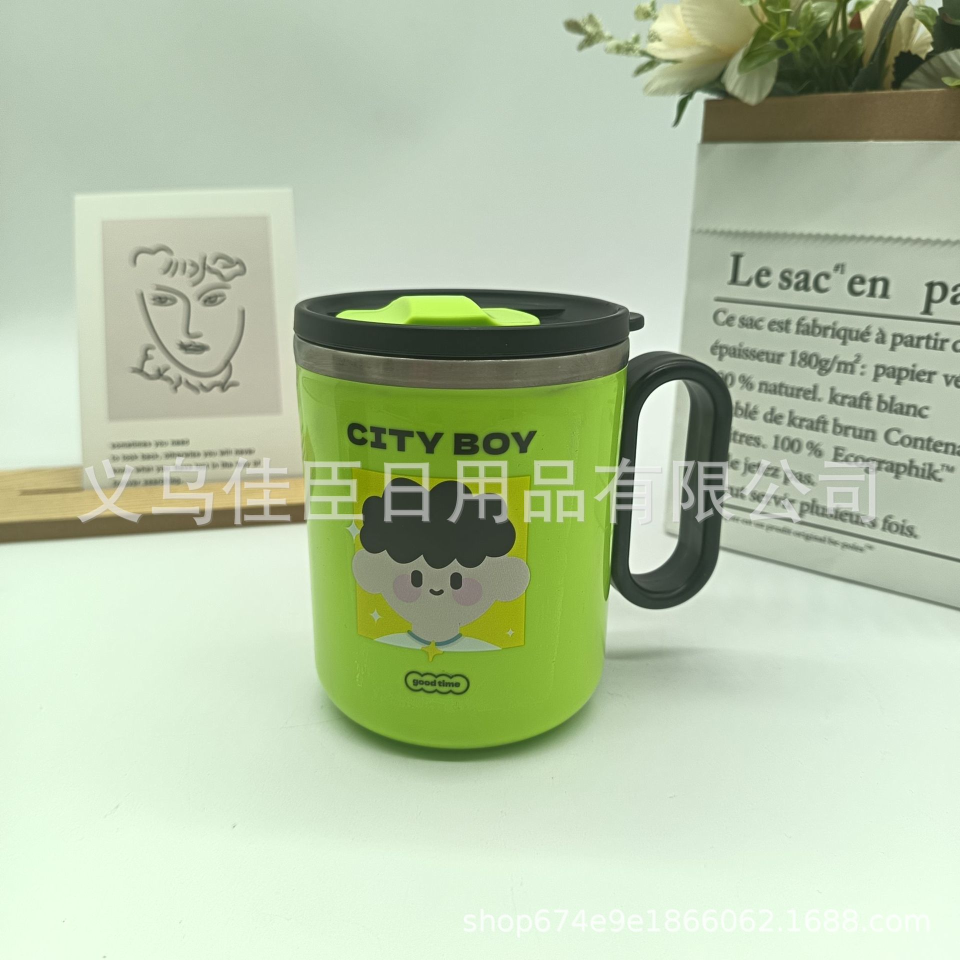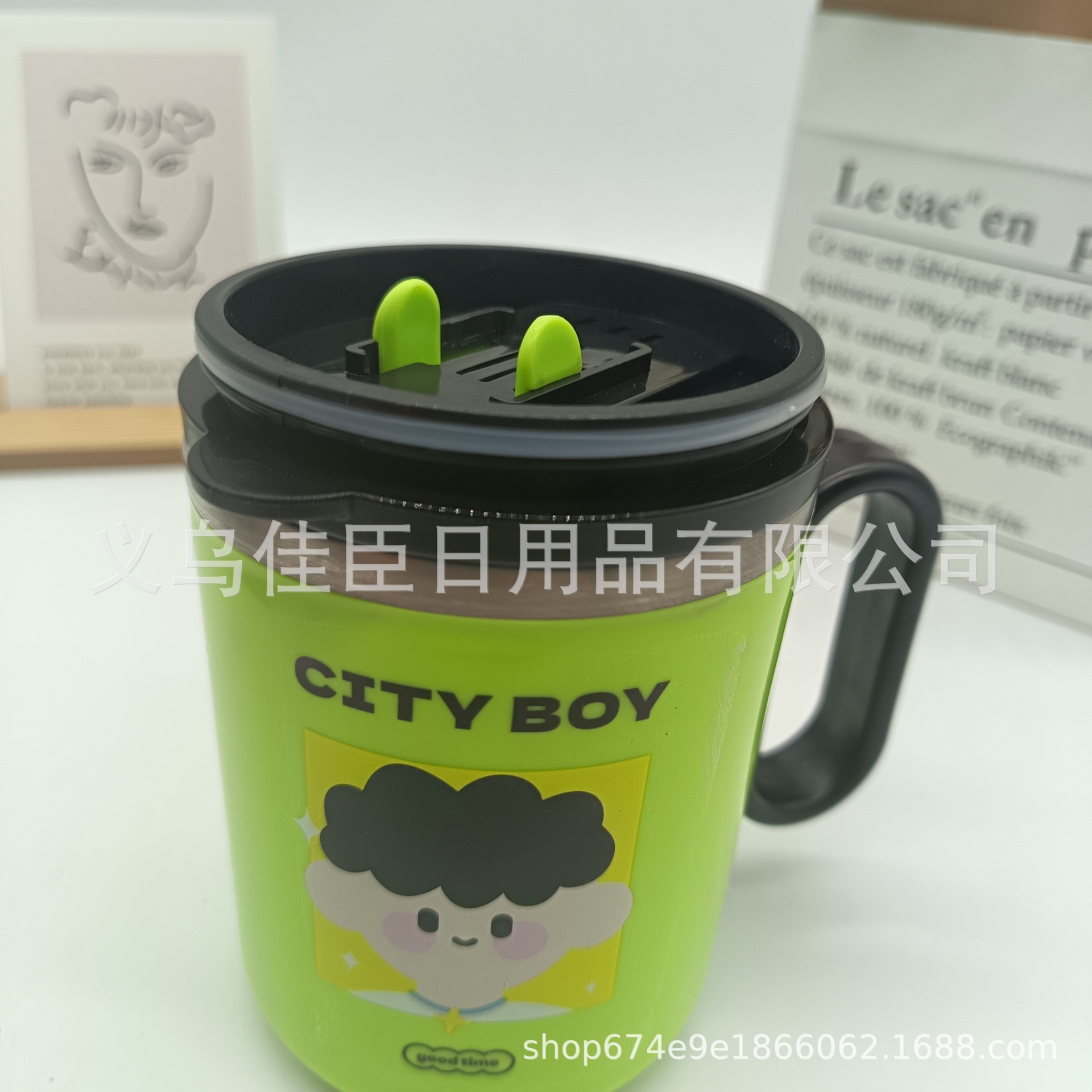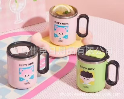 跨境热销可爱漱口杯男孩女孩图案马克杯牛奶杯带盖高颜值简单时尚