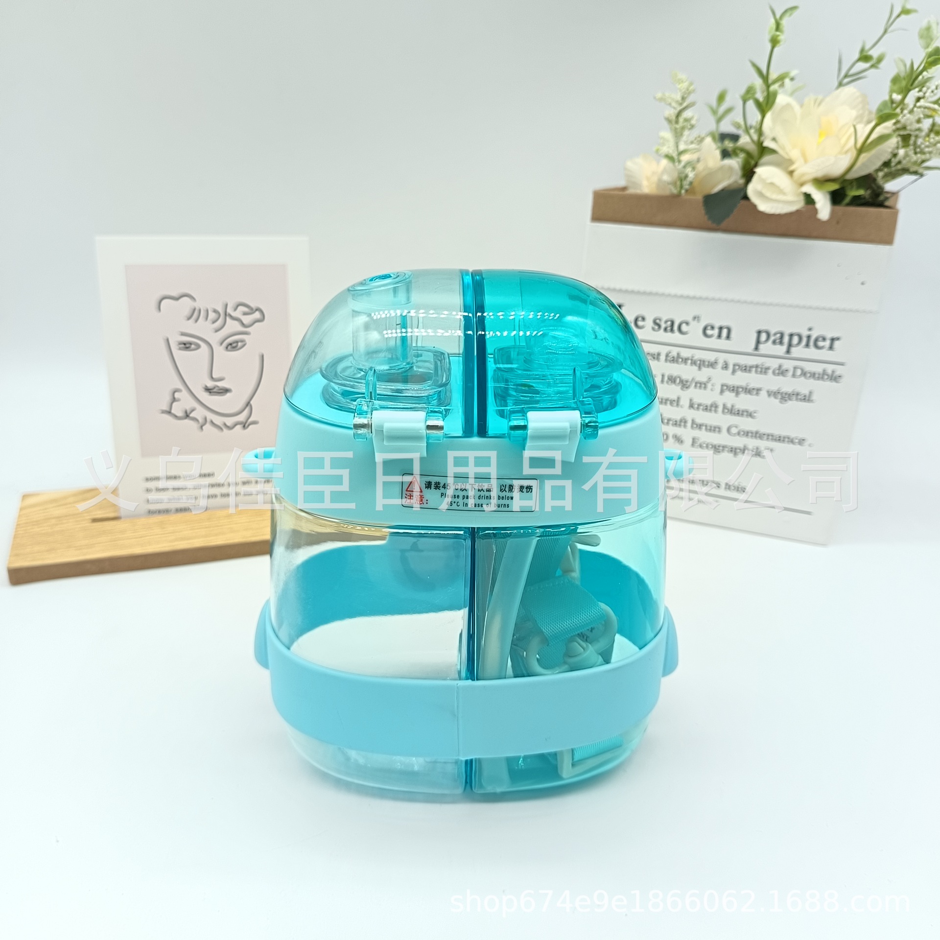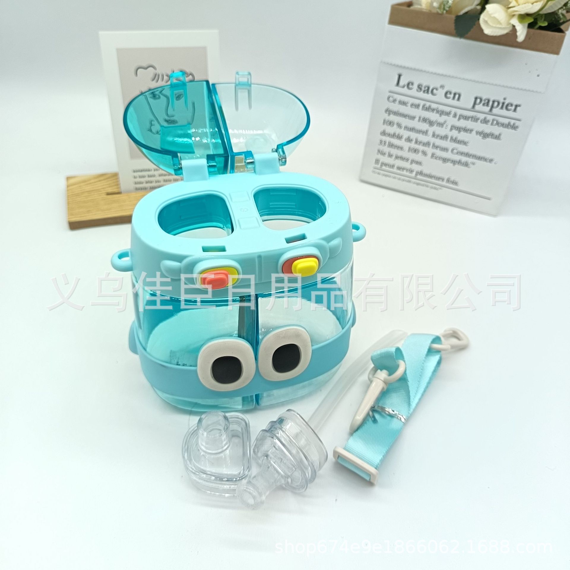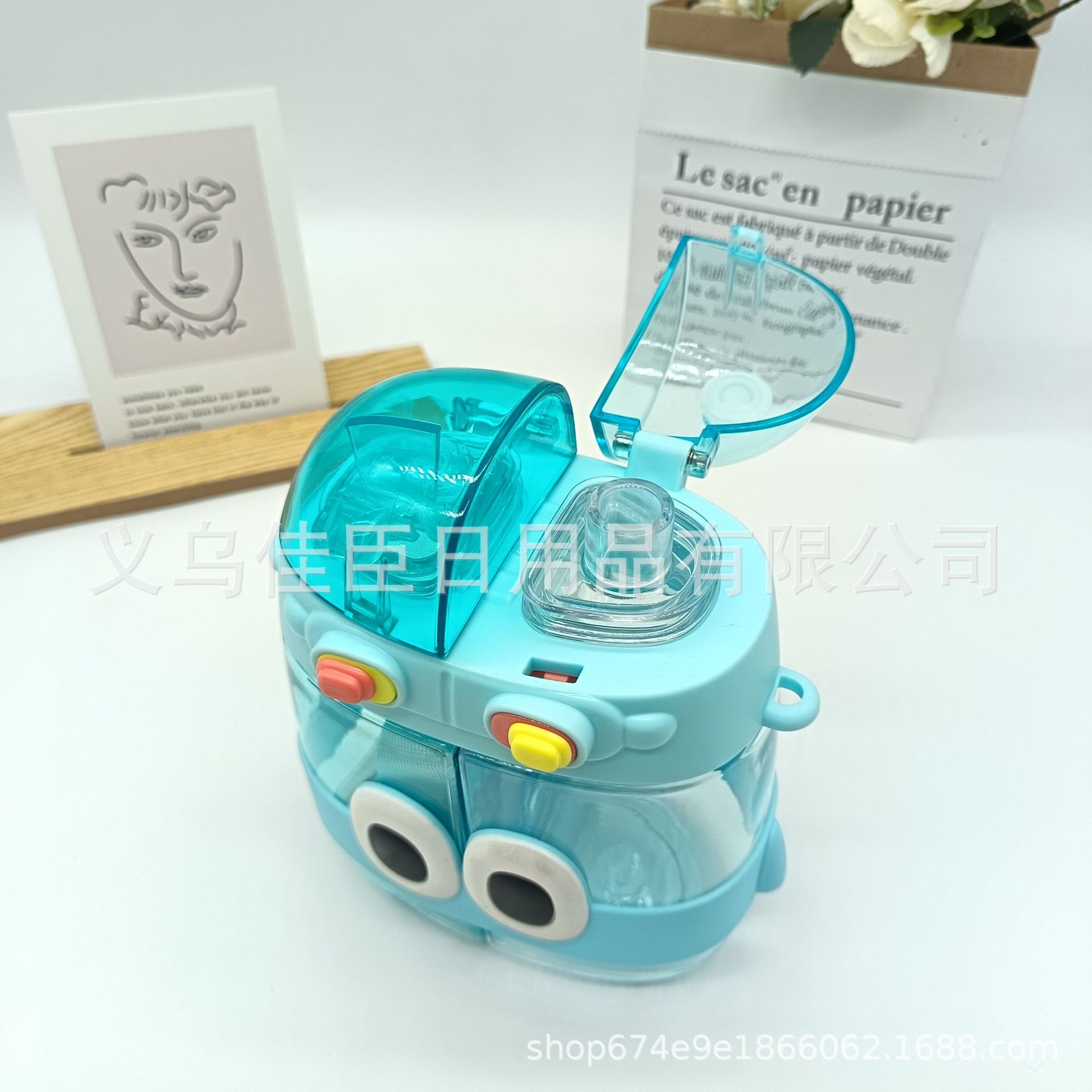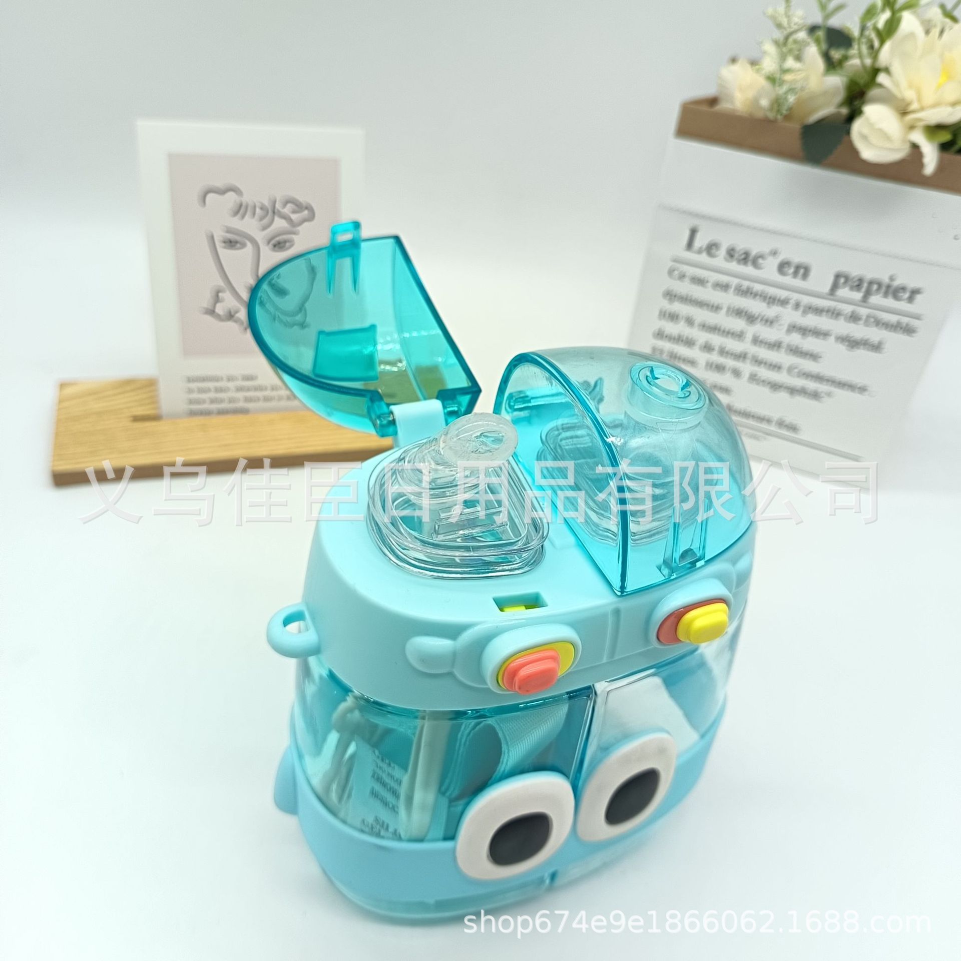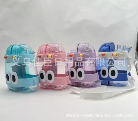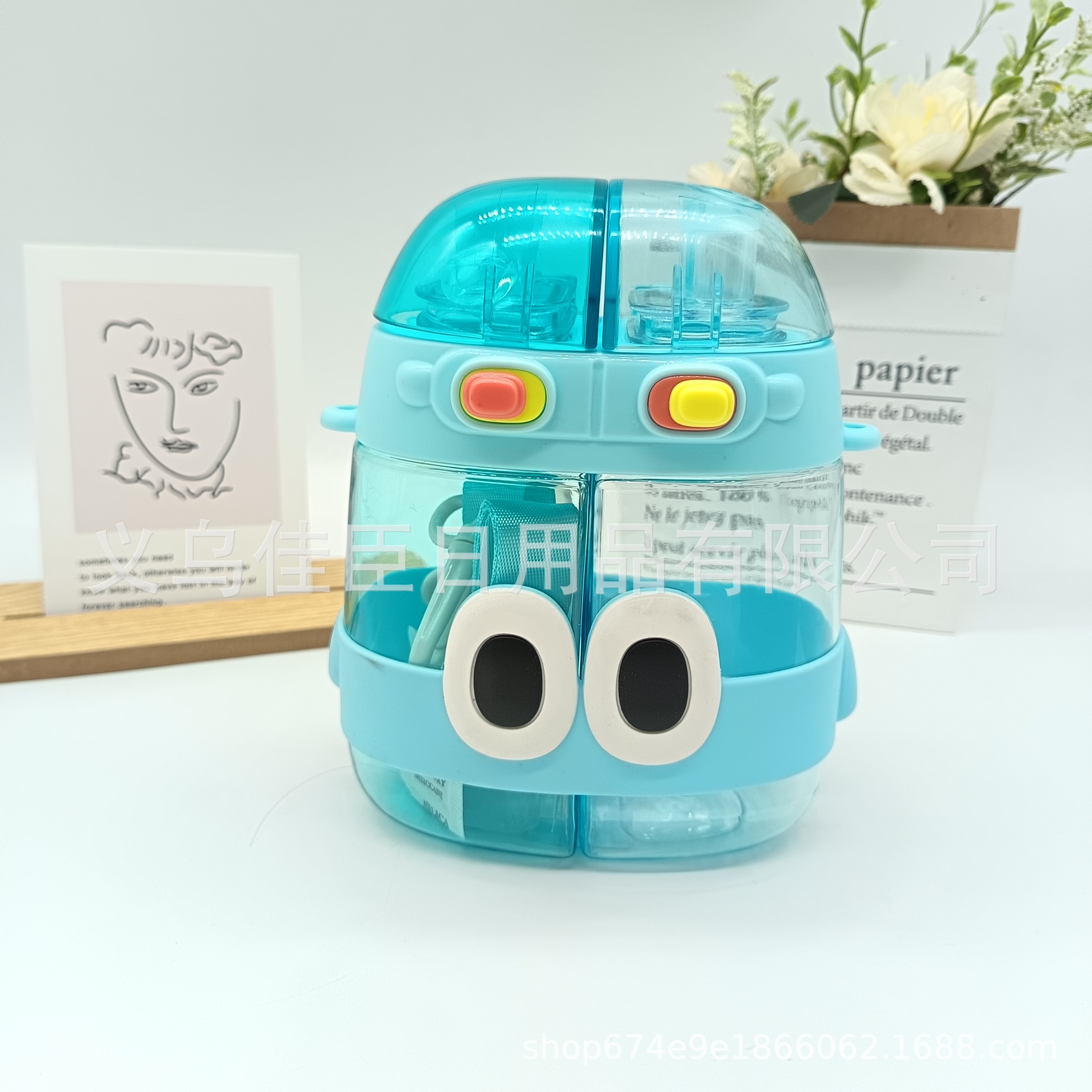 跨境新款大眼萌塑料随手杯可爱双饮杯 高颜值吸管杯 学生便携水杯
