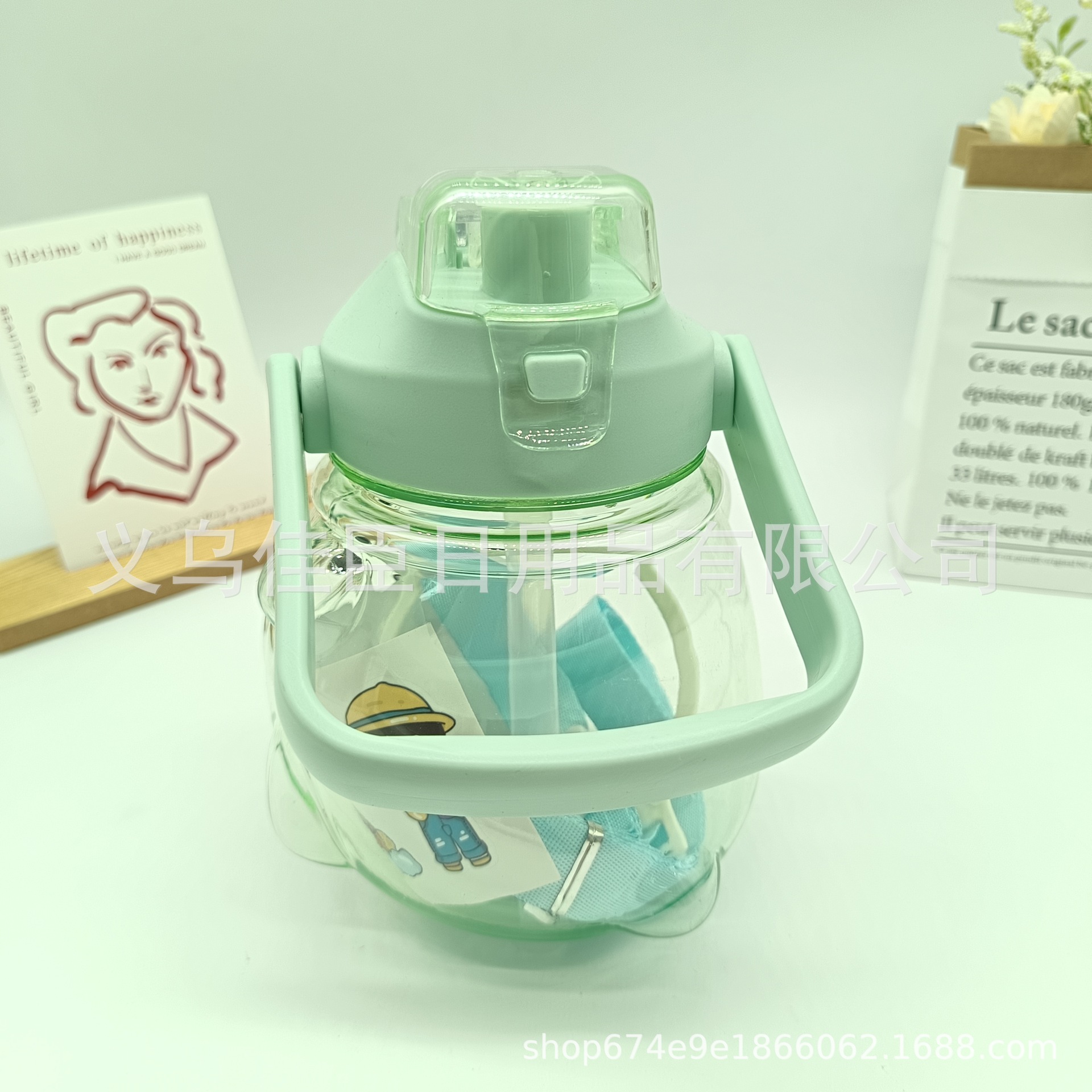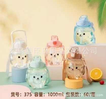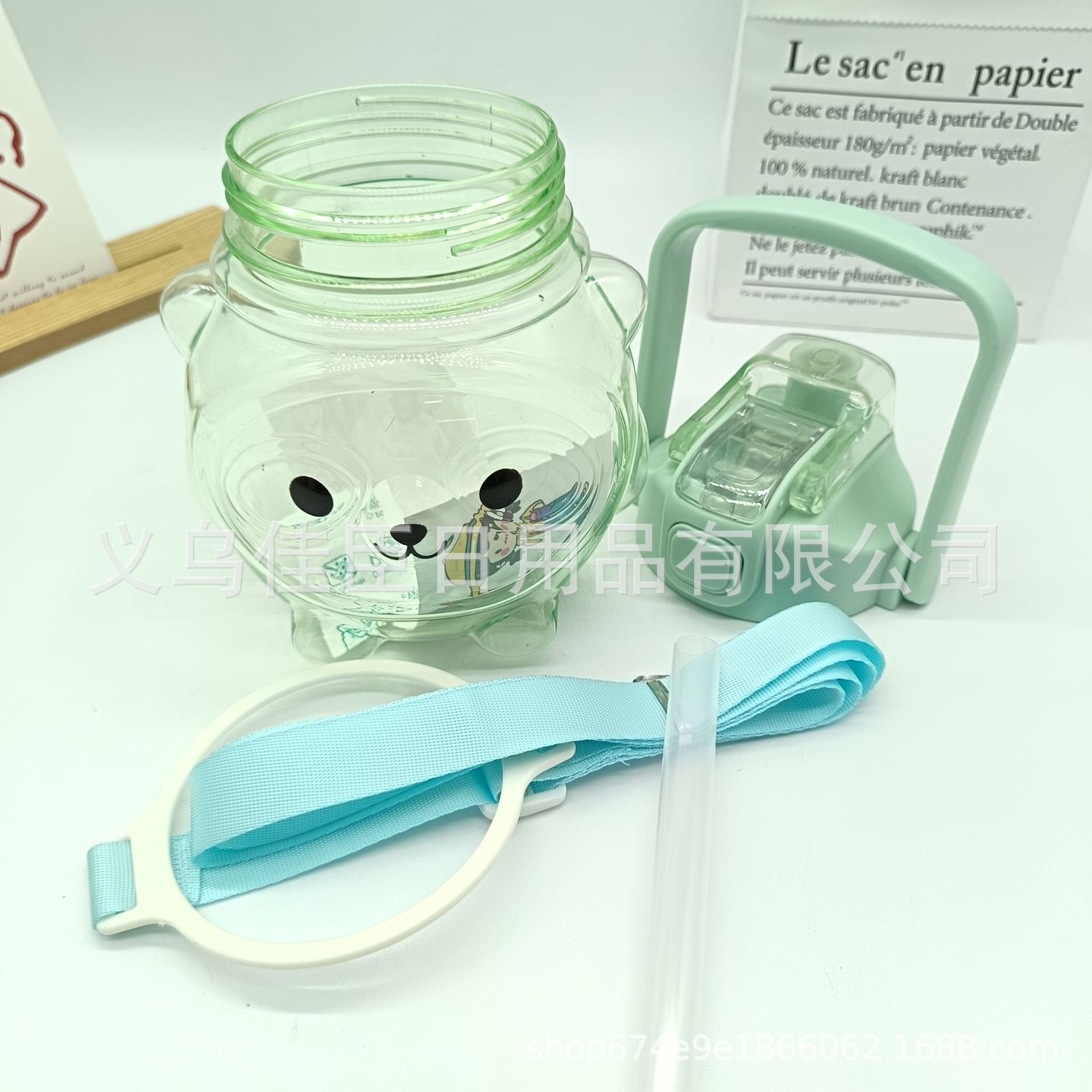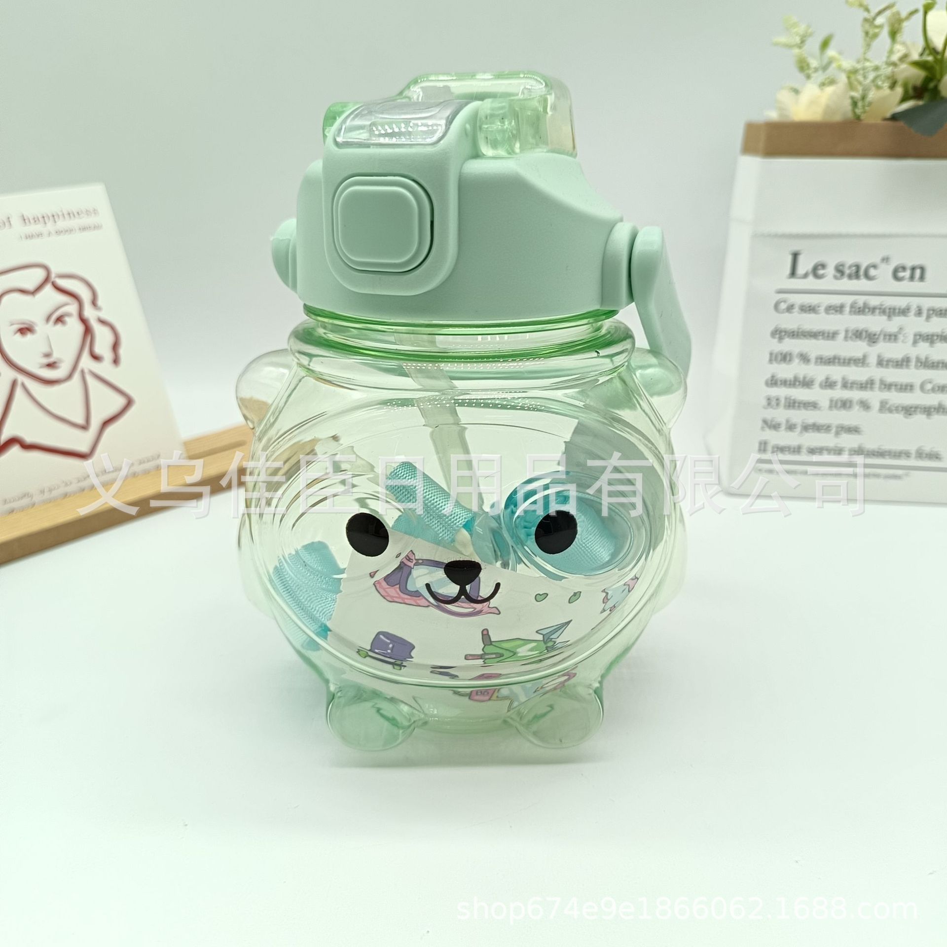 吨吨杯网红卡通熊猫弹跳盖高颜值大容量手提斜跨吸管杯学生塑料杯