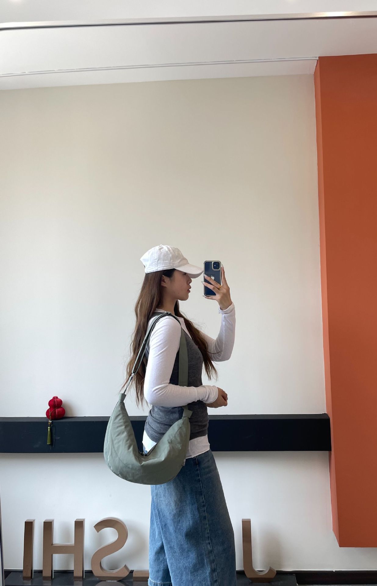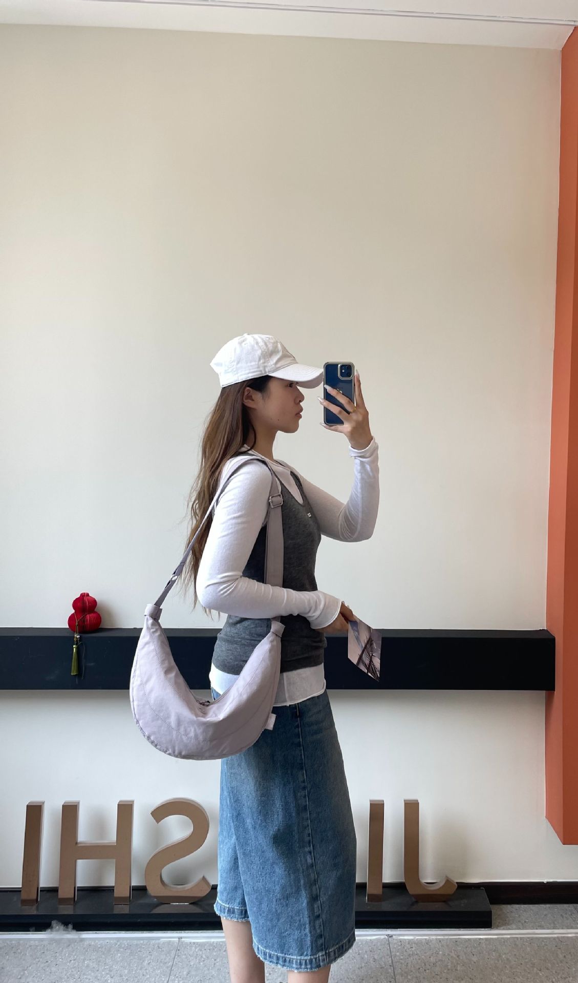 时尚轻便多层斜挎包2025新款简约百搭尼龙布包女士洋气单肩包