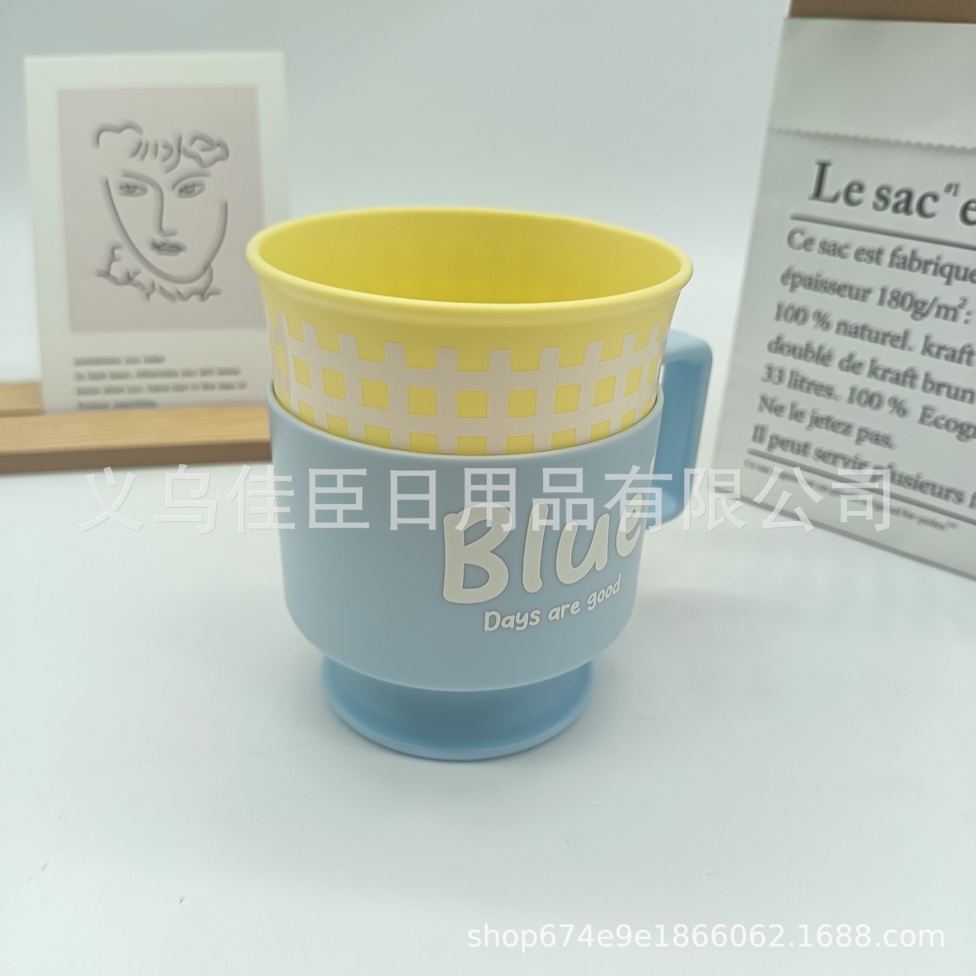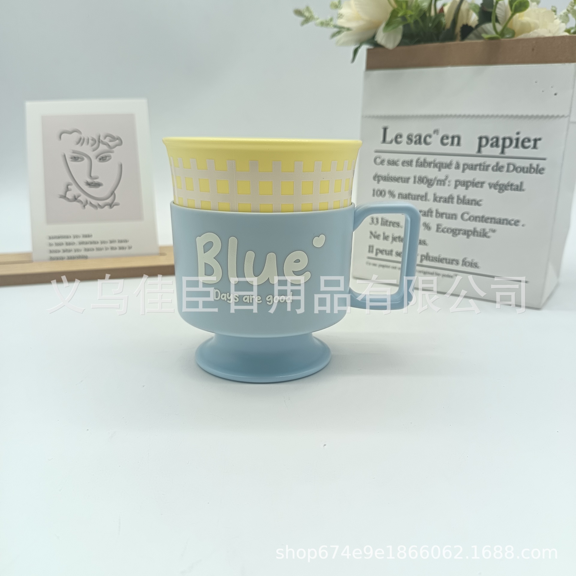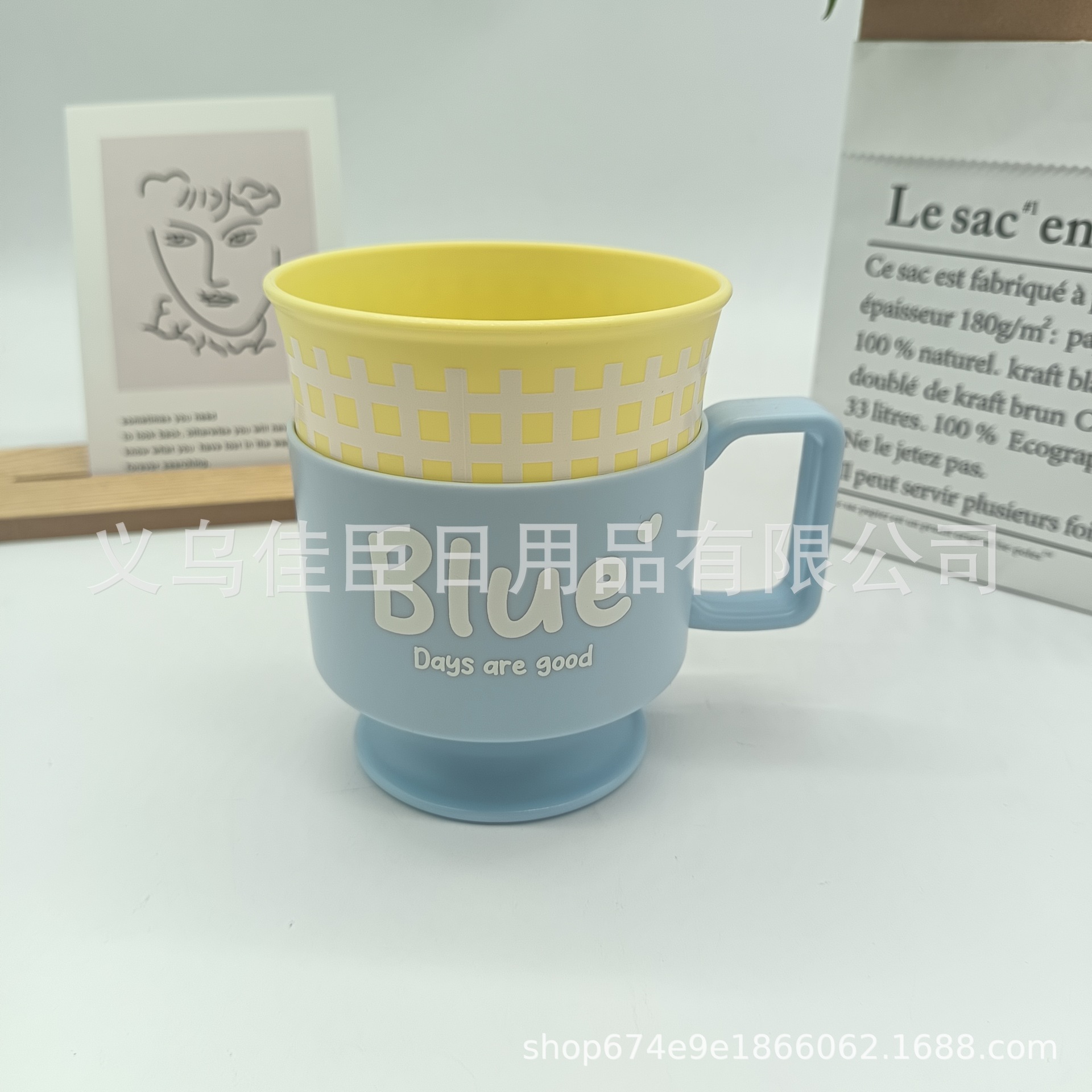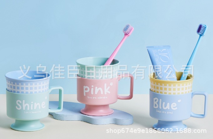 跨境热销可爱漱口杯双层拼色高颜值多巴胺配色学生儿童漱口杯批发